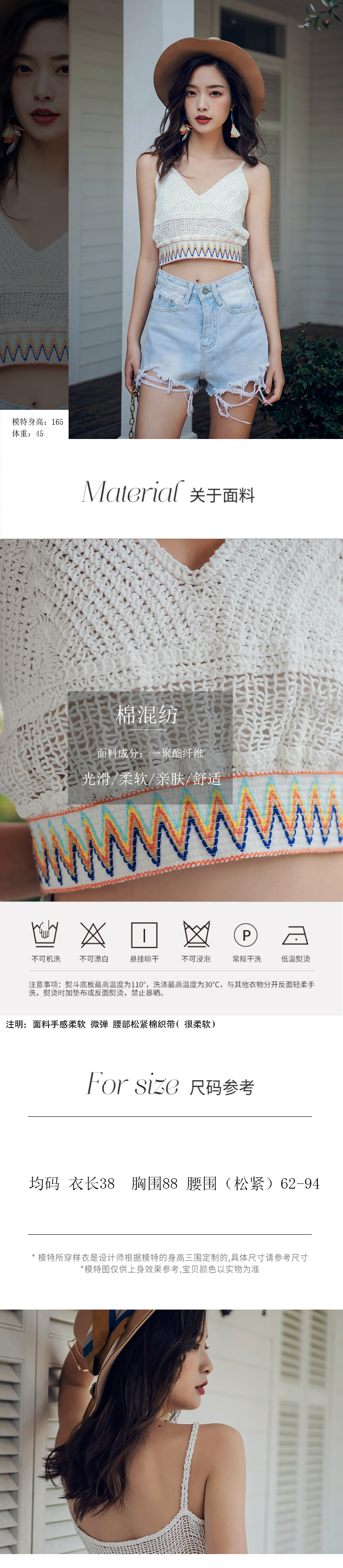 Original real shot V-neck small sling seaside vacation Bohemian short embroidered top ethnic style short vest