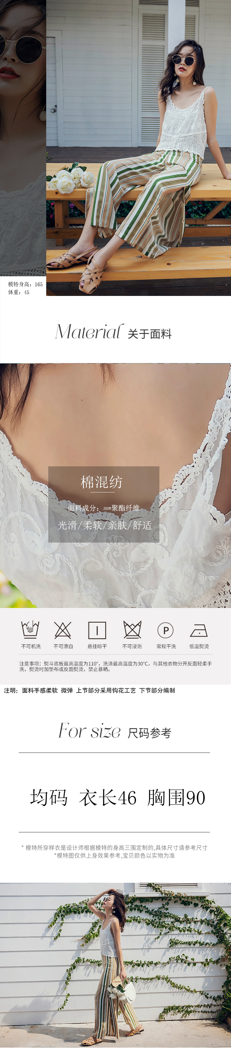 Original real shot of seaside vacation sling embroidery white knitted white small top Bohemian top