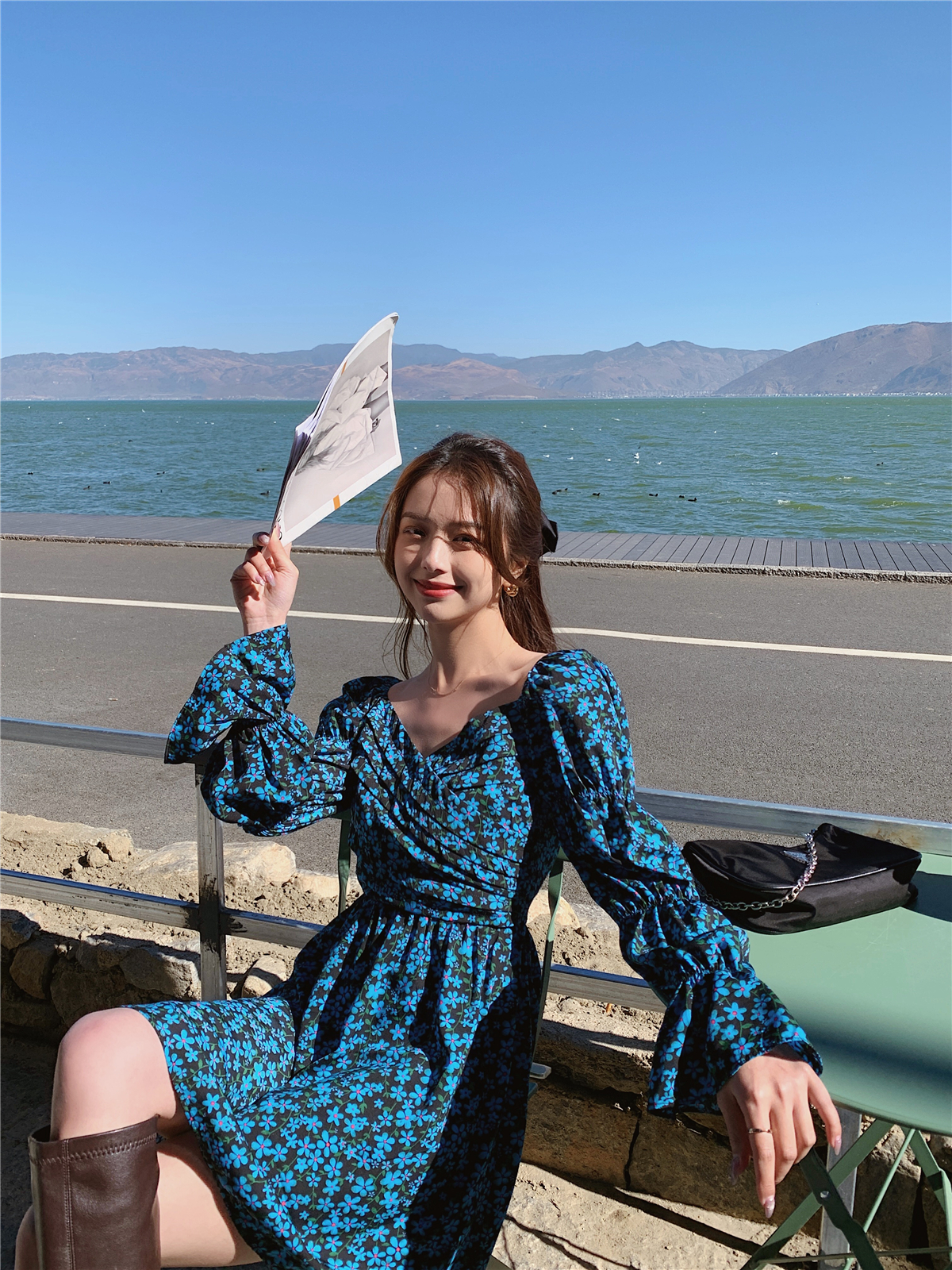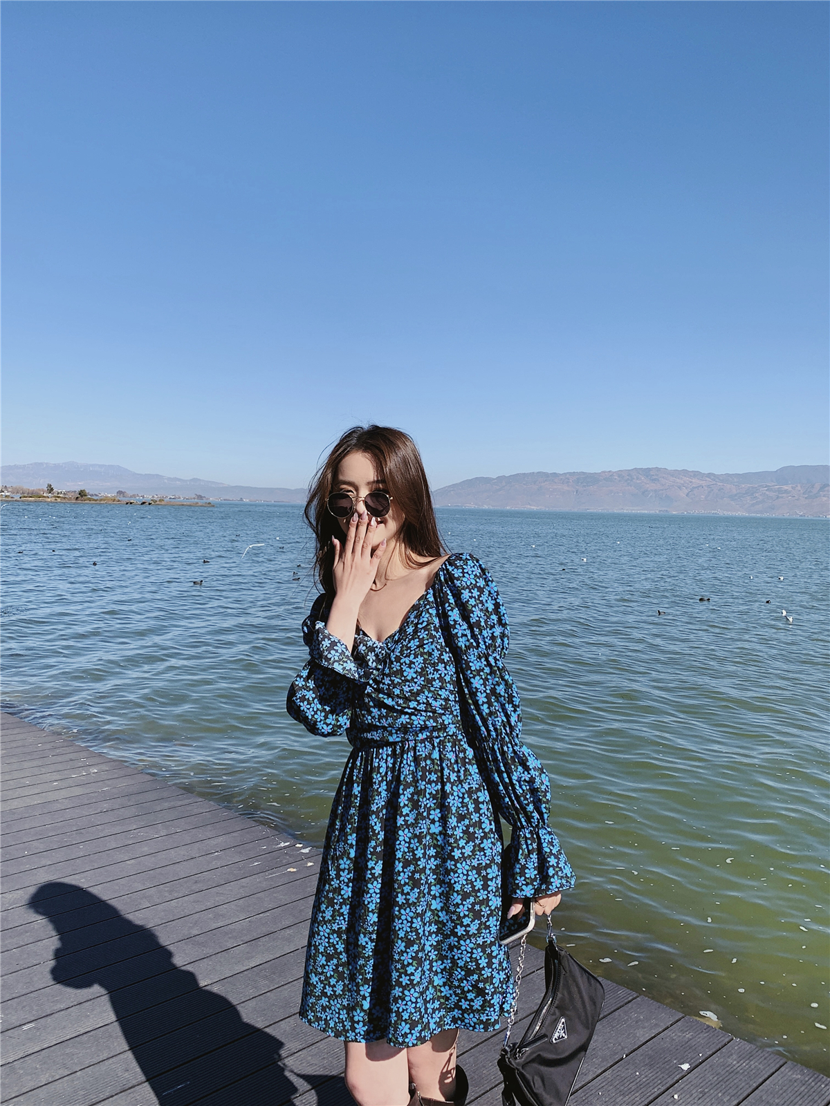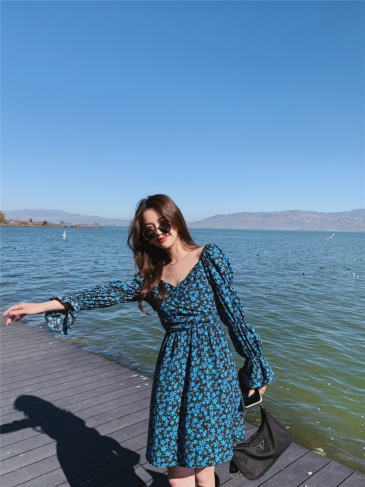 2021 New Original French Palace Style Puff Sleeve Spring Long Sleeve Dress One Shoulder Dress