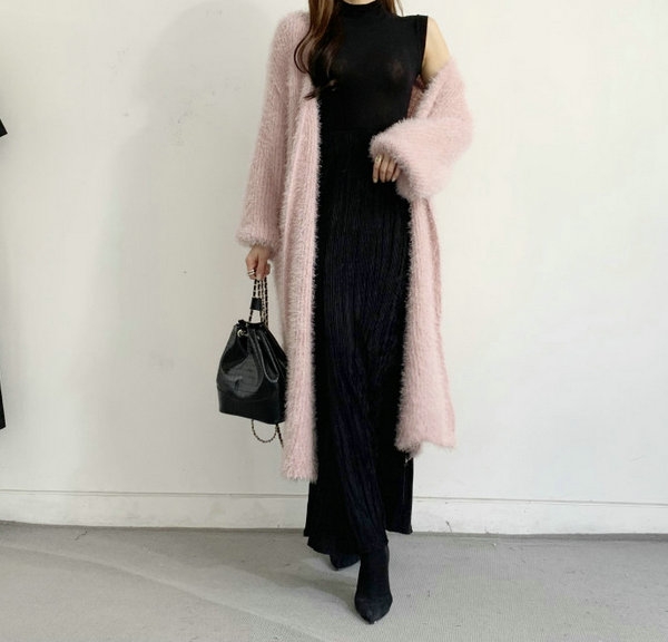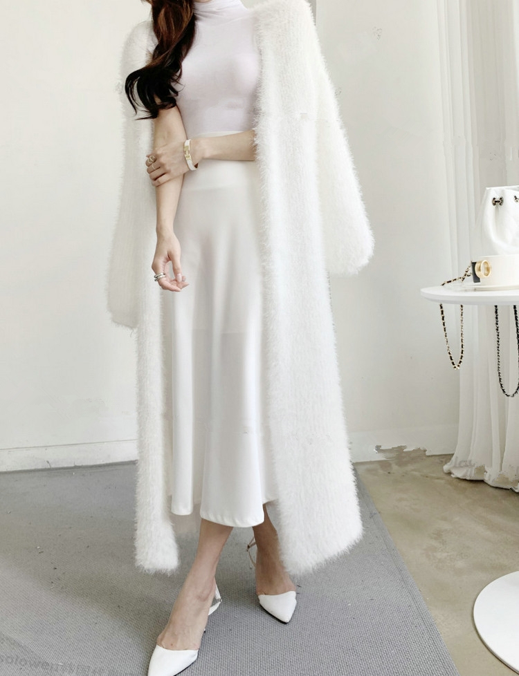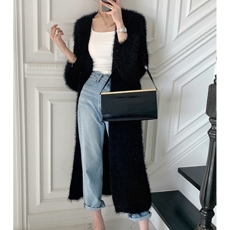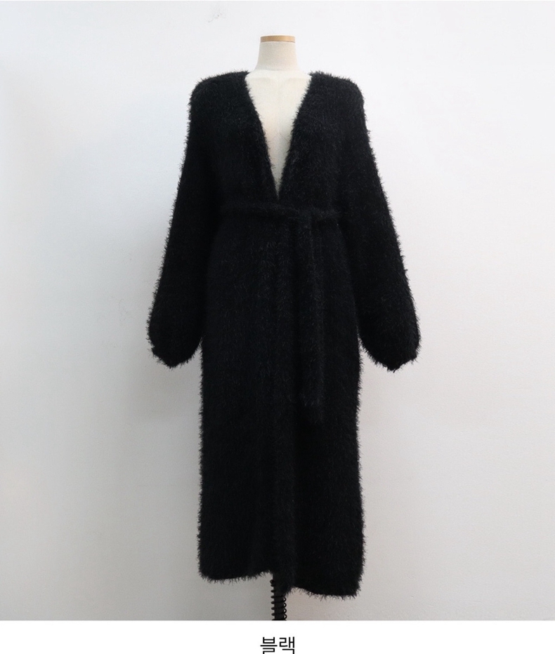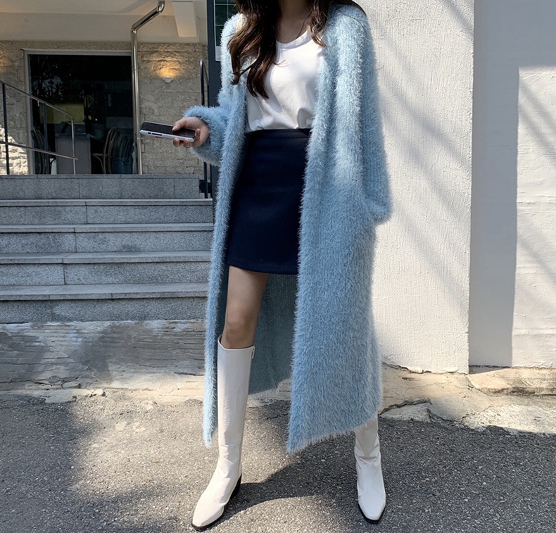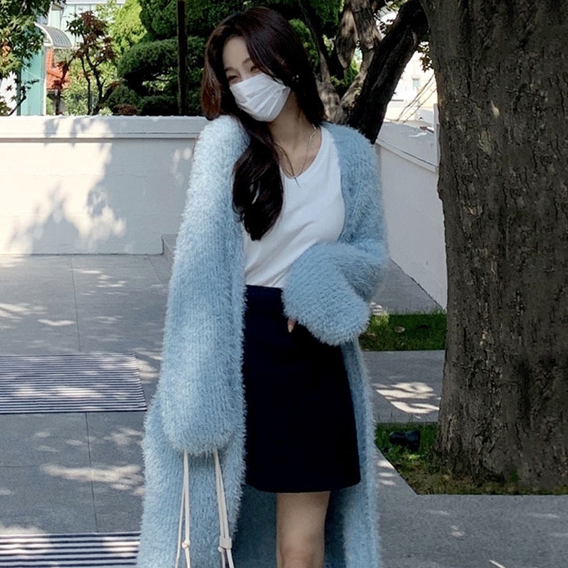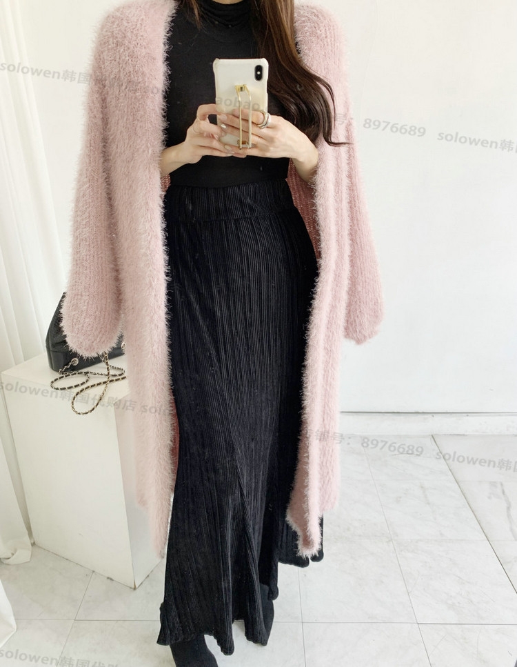 Korean autumn and winter elegant temperament long straps fluffy solid color knitted sweater coat