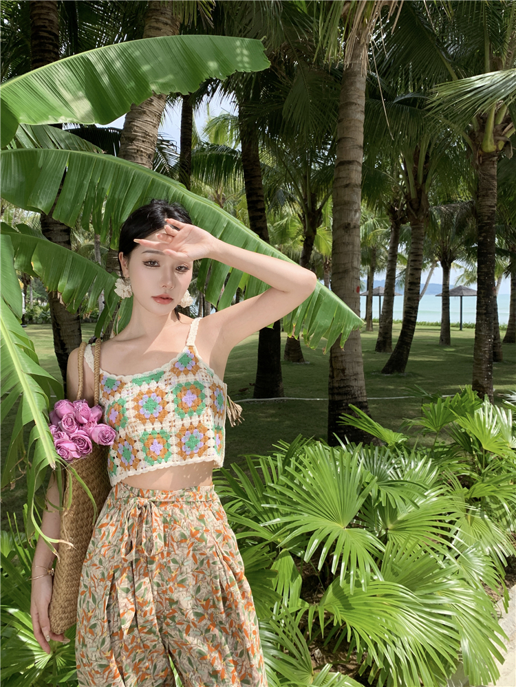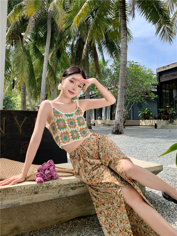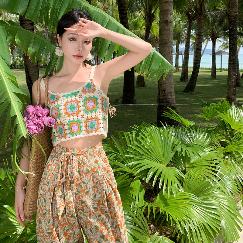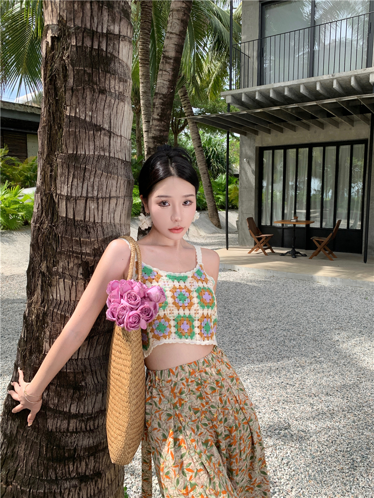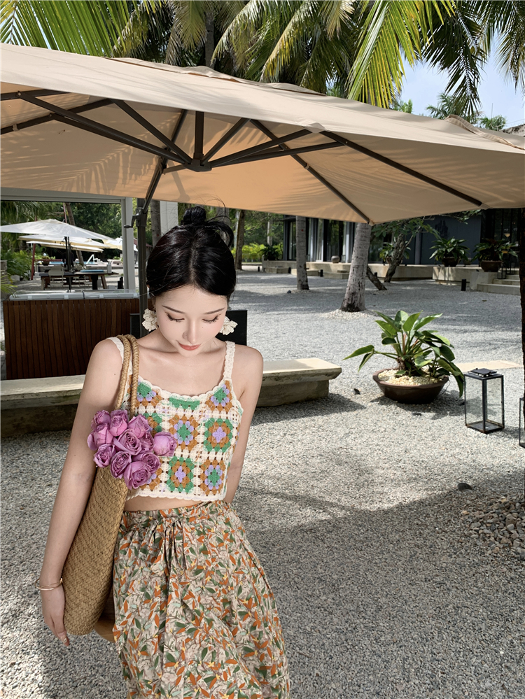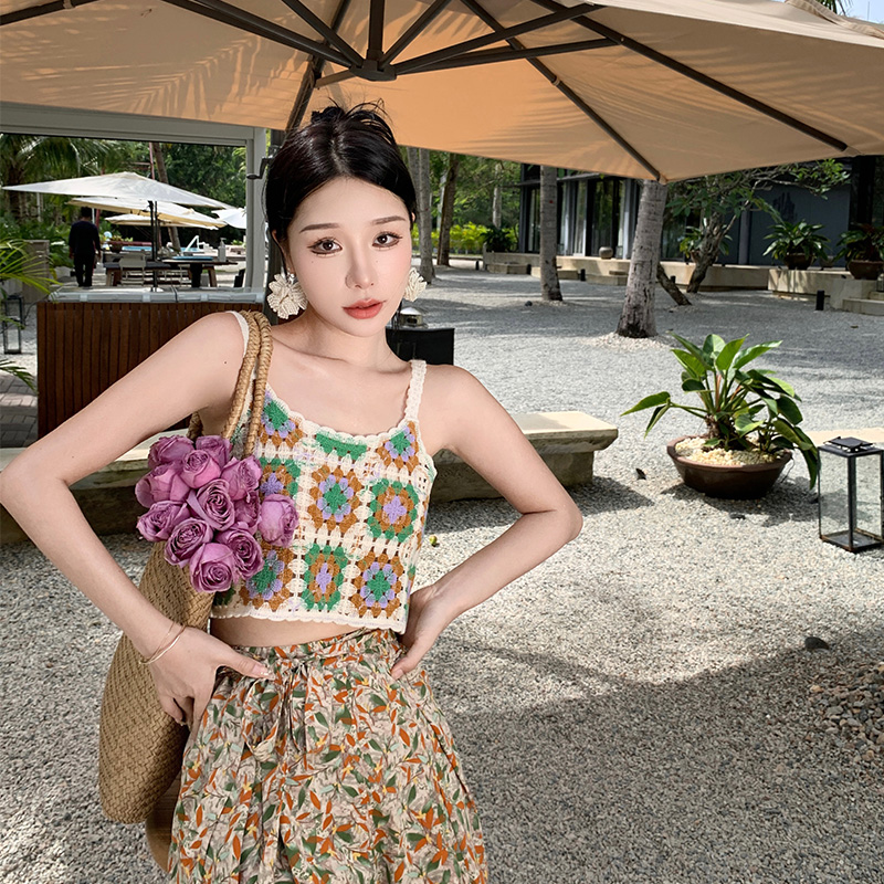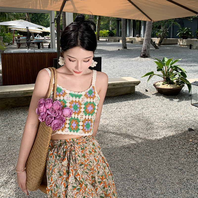 Hand-crocheted top knitted small top holiday seaside versatile vest