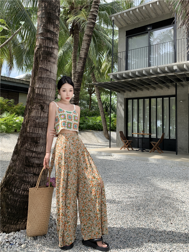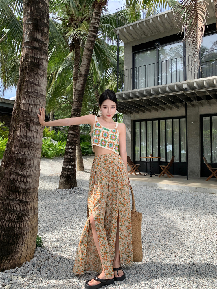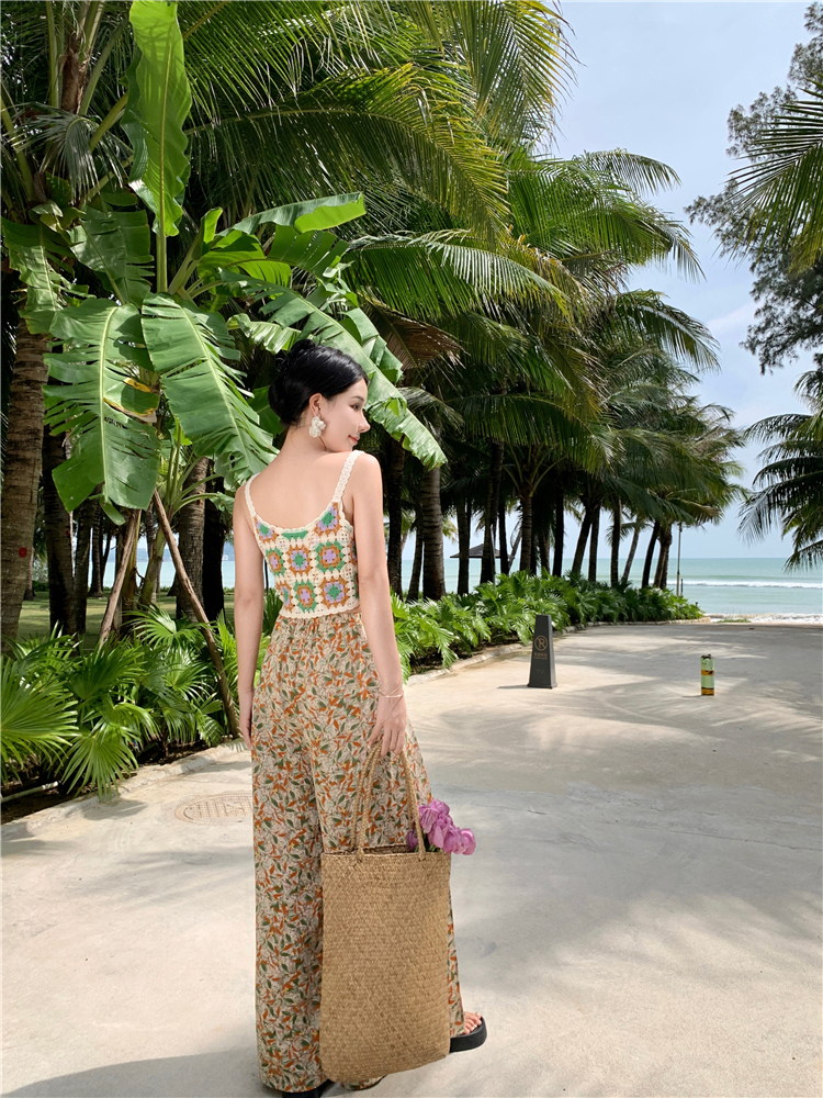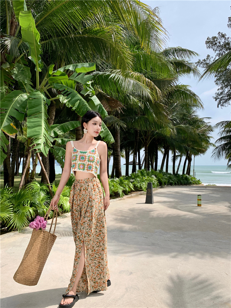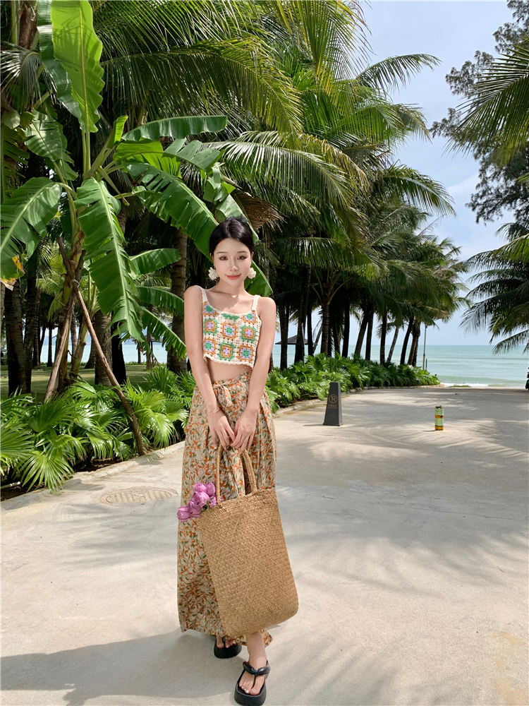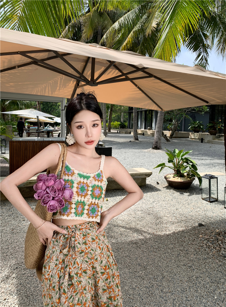 Hand-crocheted top knitted small top holiday seaside versatile vest