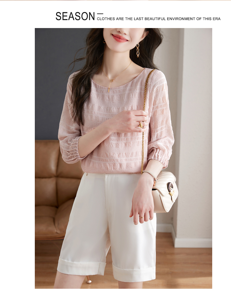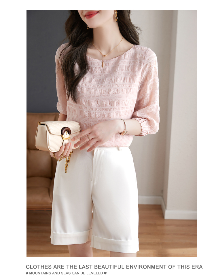 实拍◆◆2023雪纺衫甜系女士白色小衫夏季新款遮肚子上衣