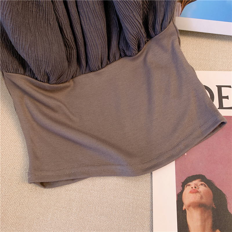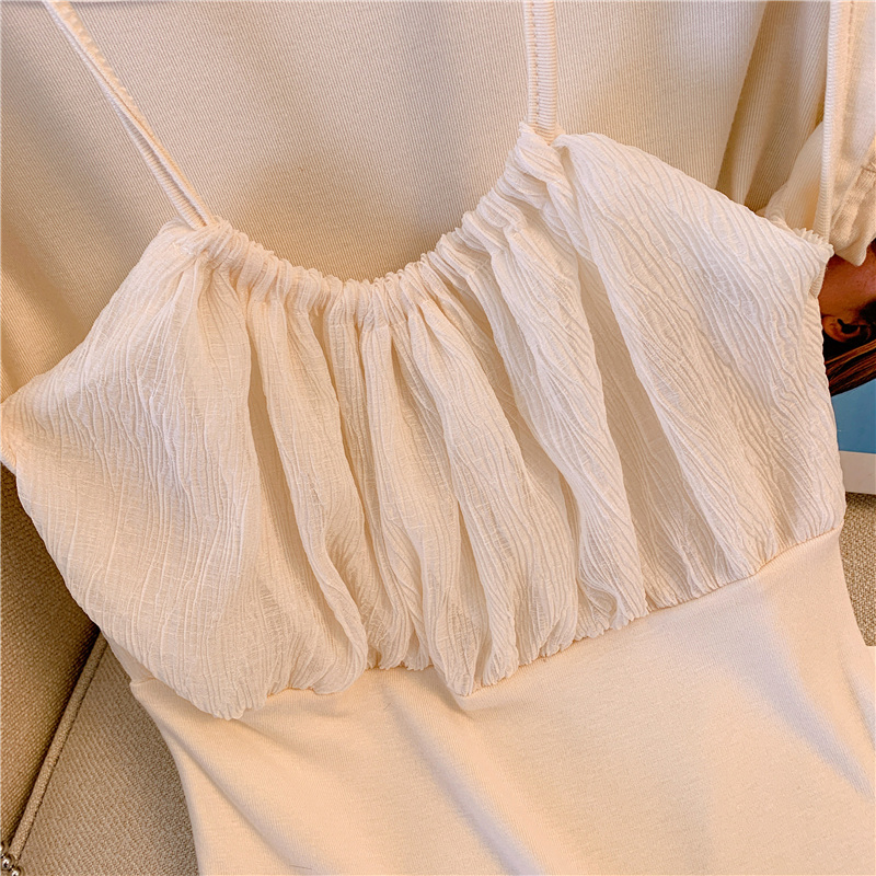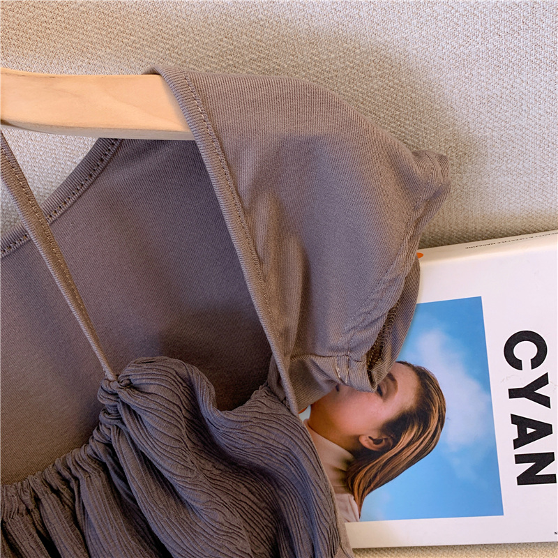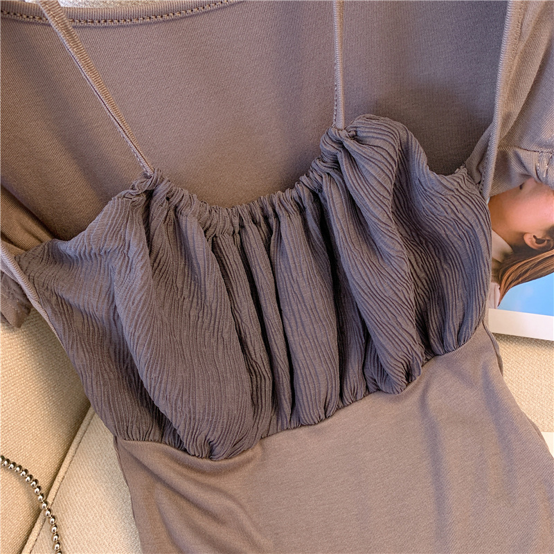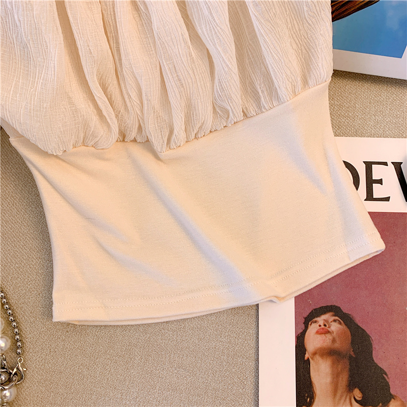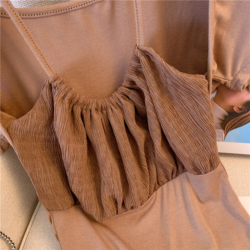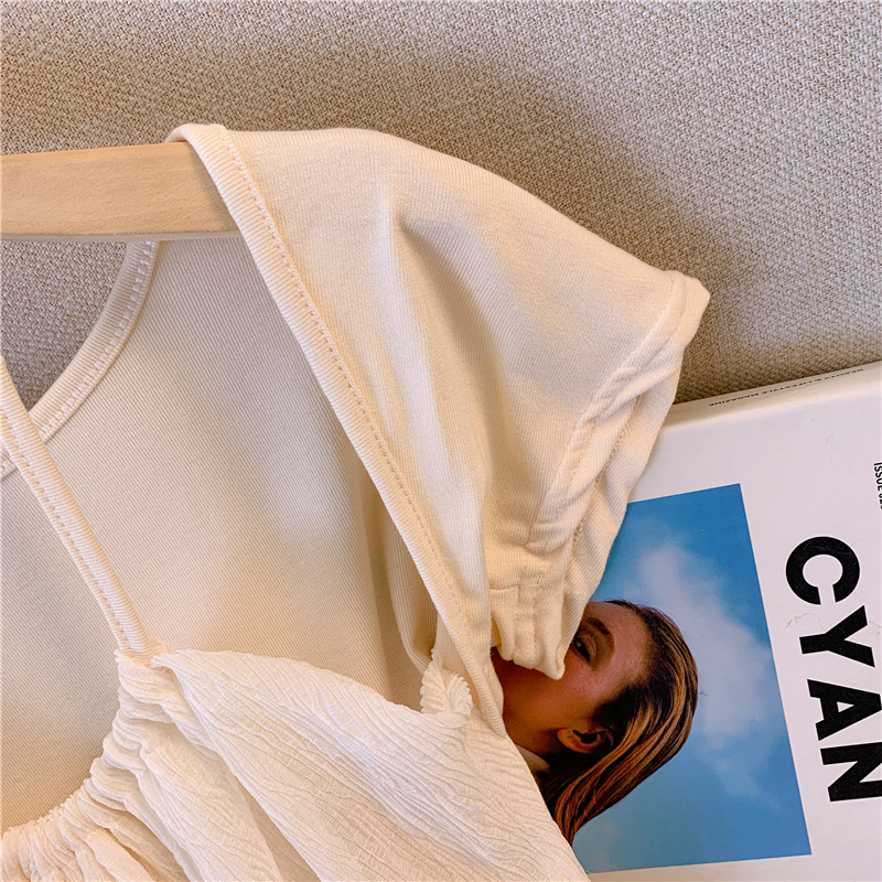 实拍纯欲短袖T恤女2023夏季修身显瘦挂脖吊带小众拼接辣妹上衣潮