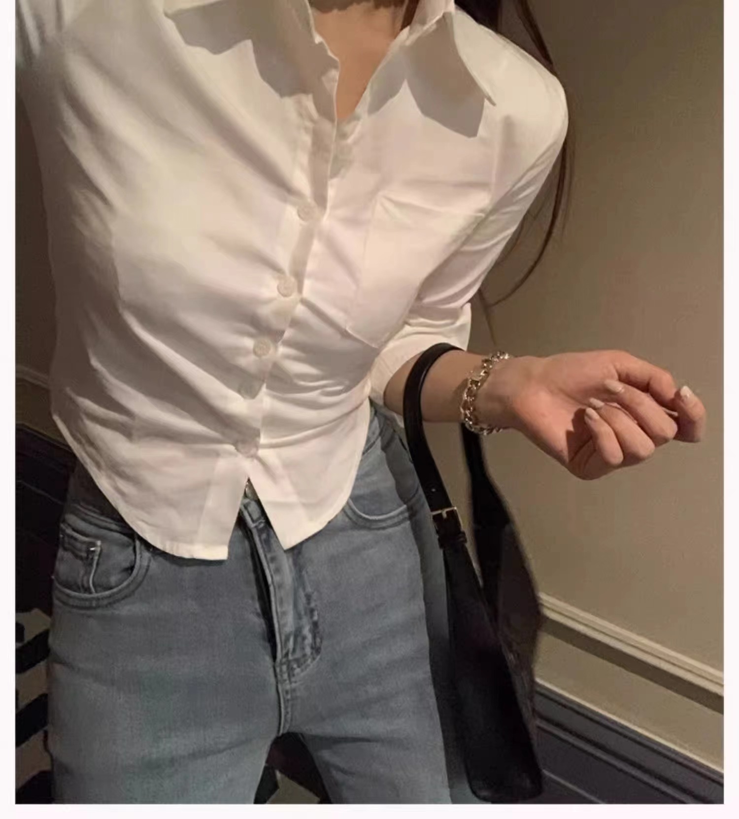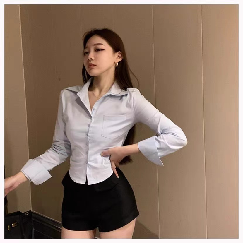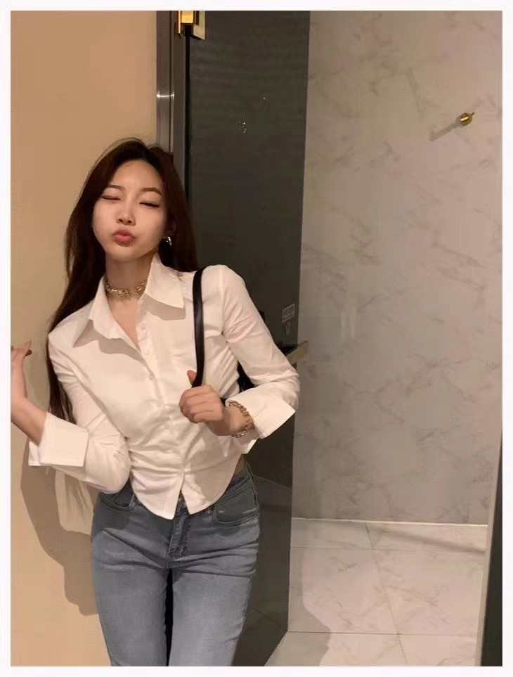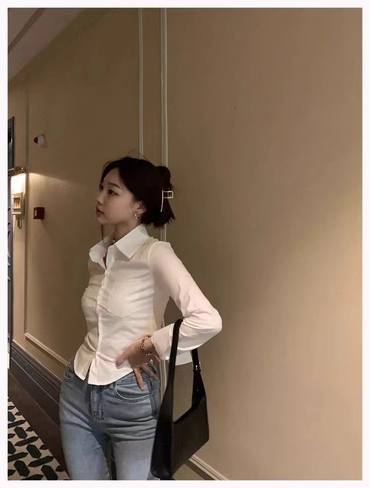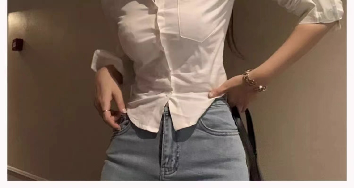 白色衬衫女2024新款春装收腰外穿衬衣修身小个子短款法式掐腰上衣