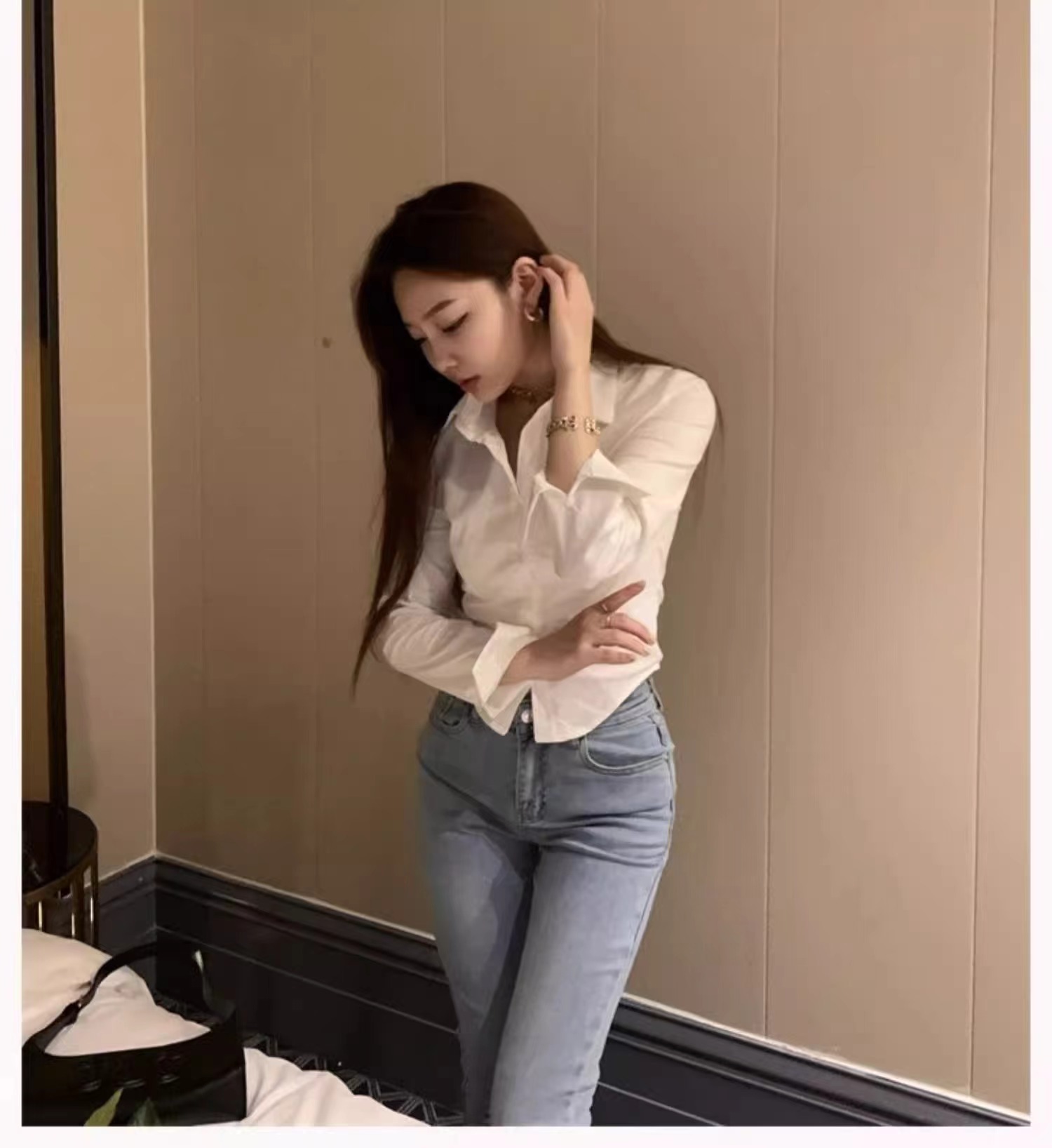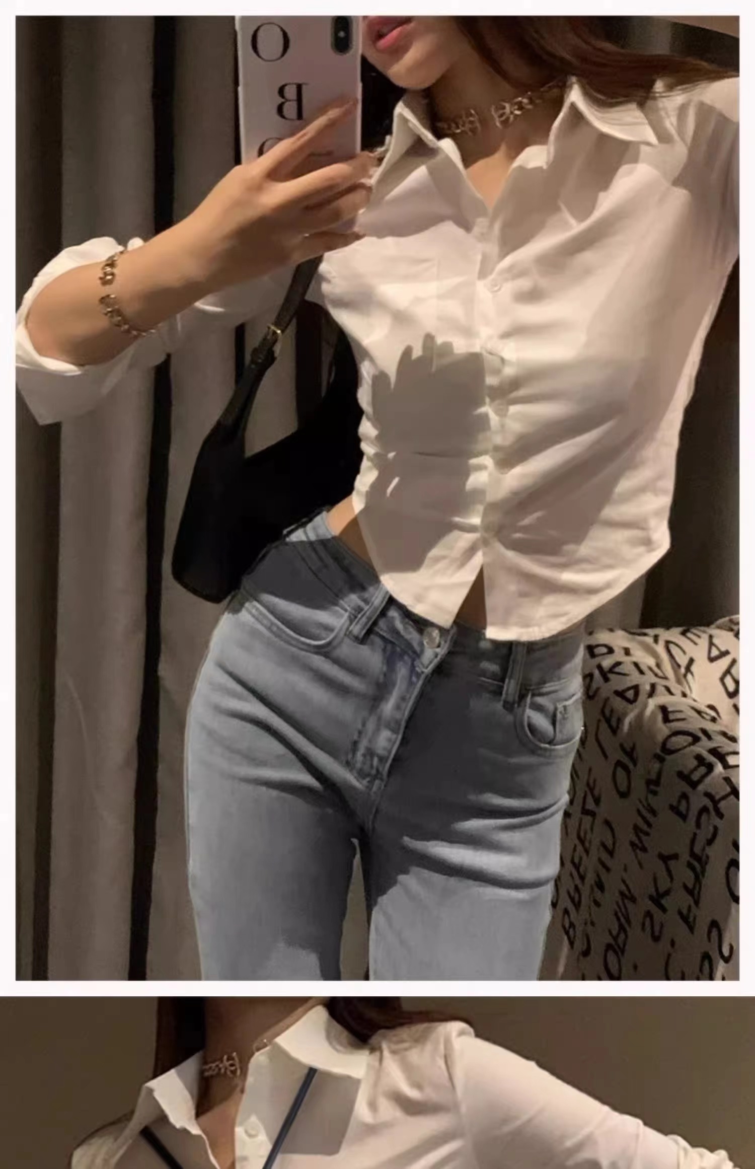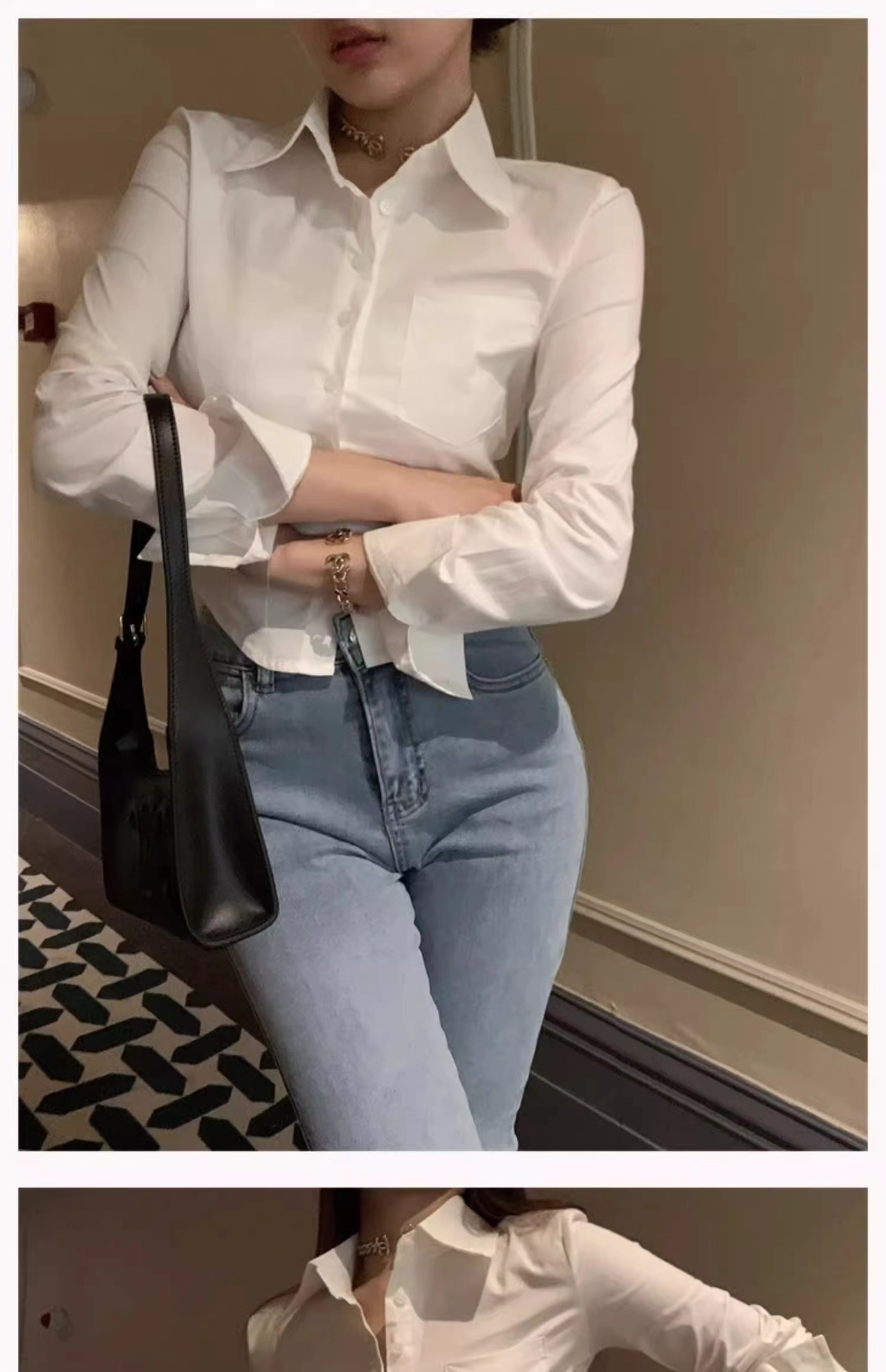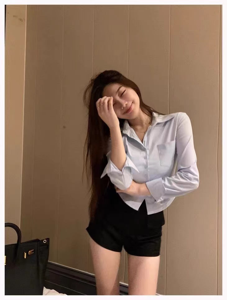 白色衬衫女2024新款春装收腰外穿衬衣修身小个子短款法式掐腰上衣