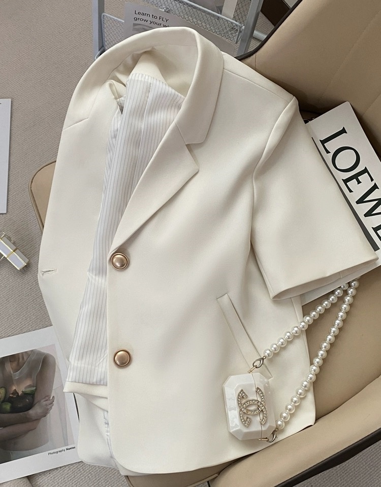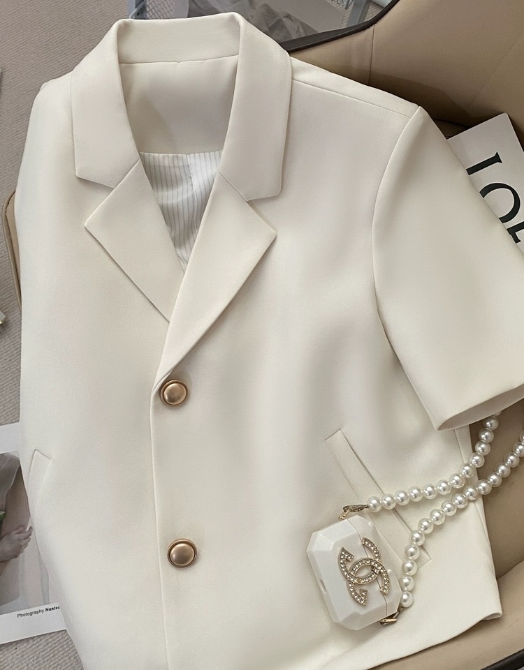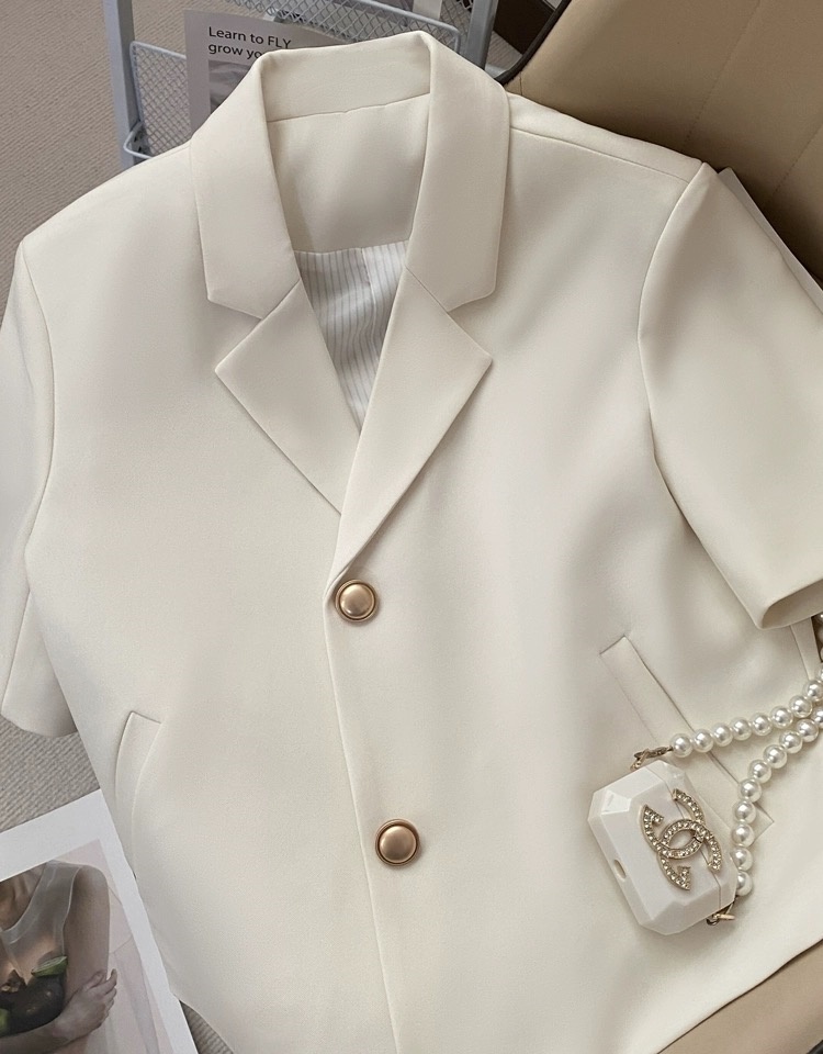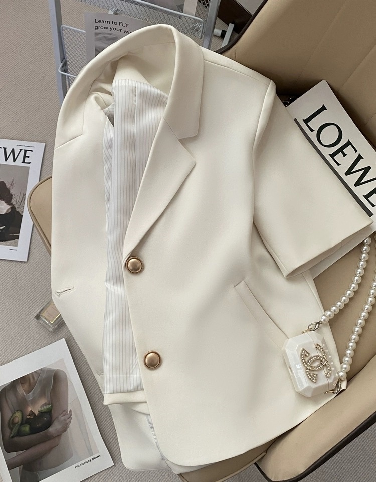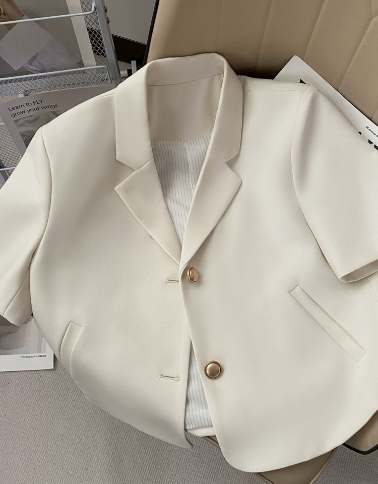 Off-white short-sleeved suit jacket for women 2025 summer new style internet celebrity commuter small short suit