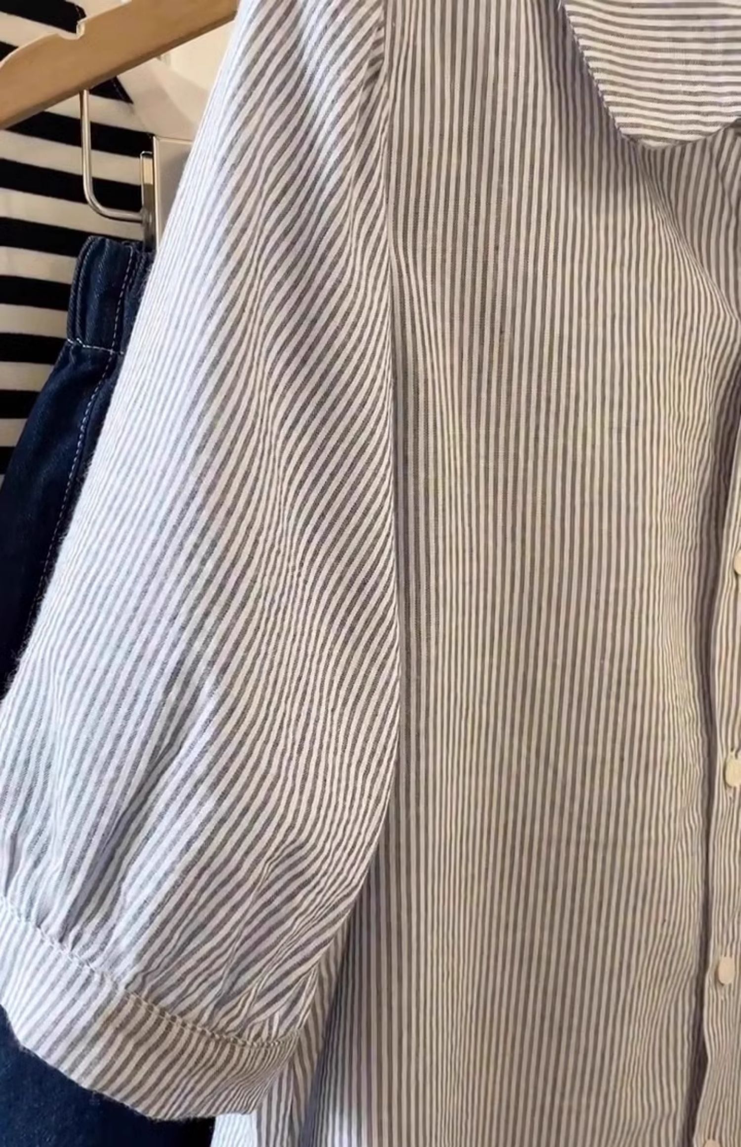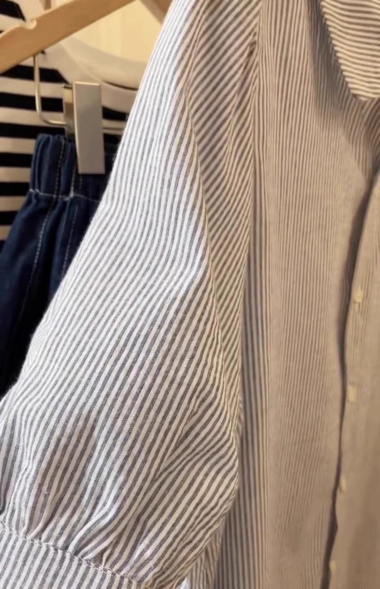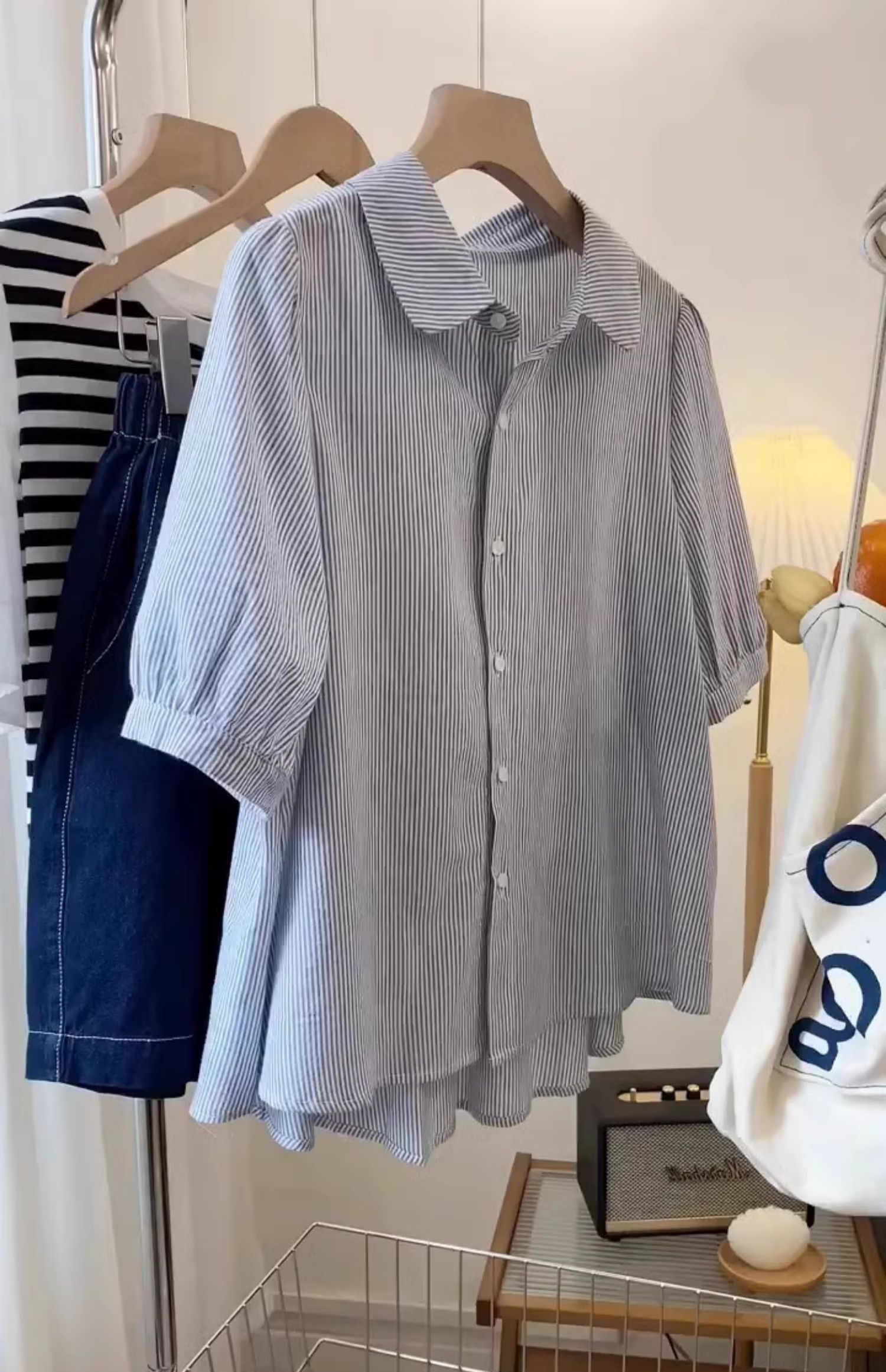 2025 new light mature French style niche foreign style age-reducing baby shirt top blue striped short-sleeved shirt female summer style