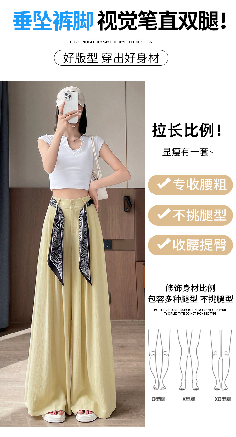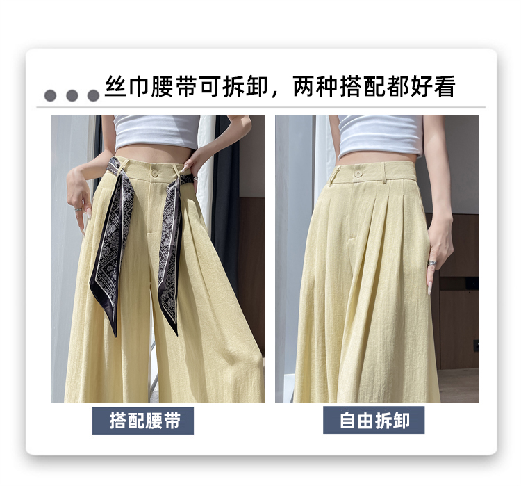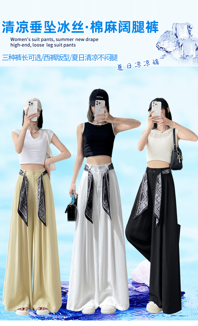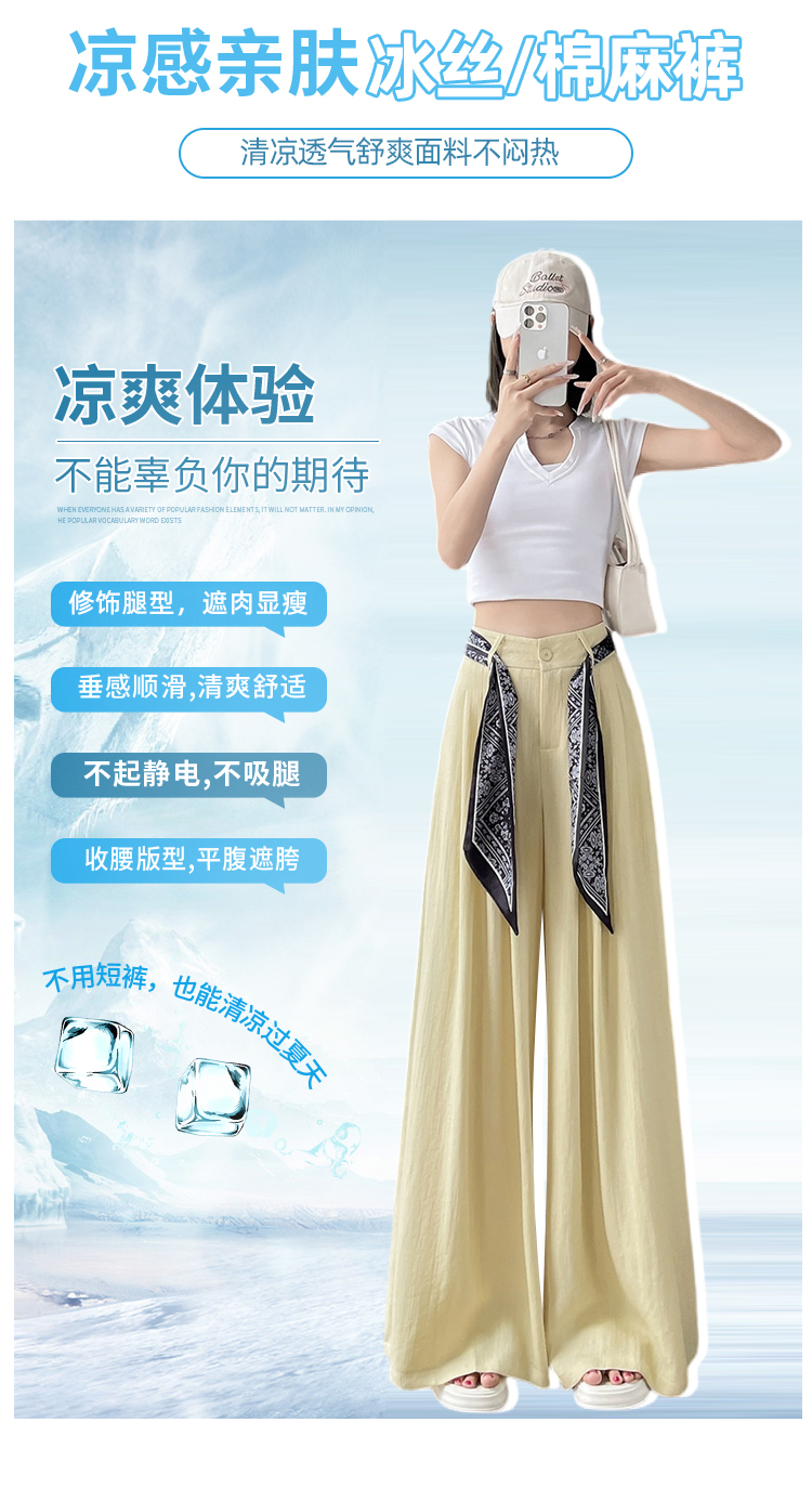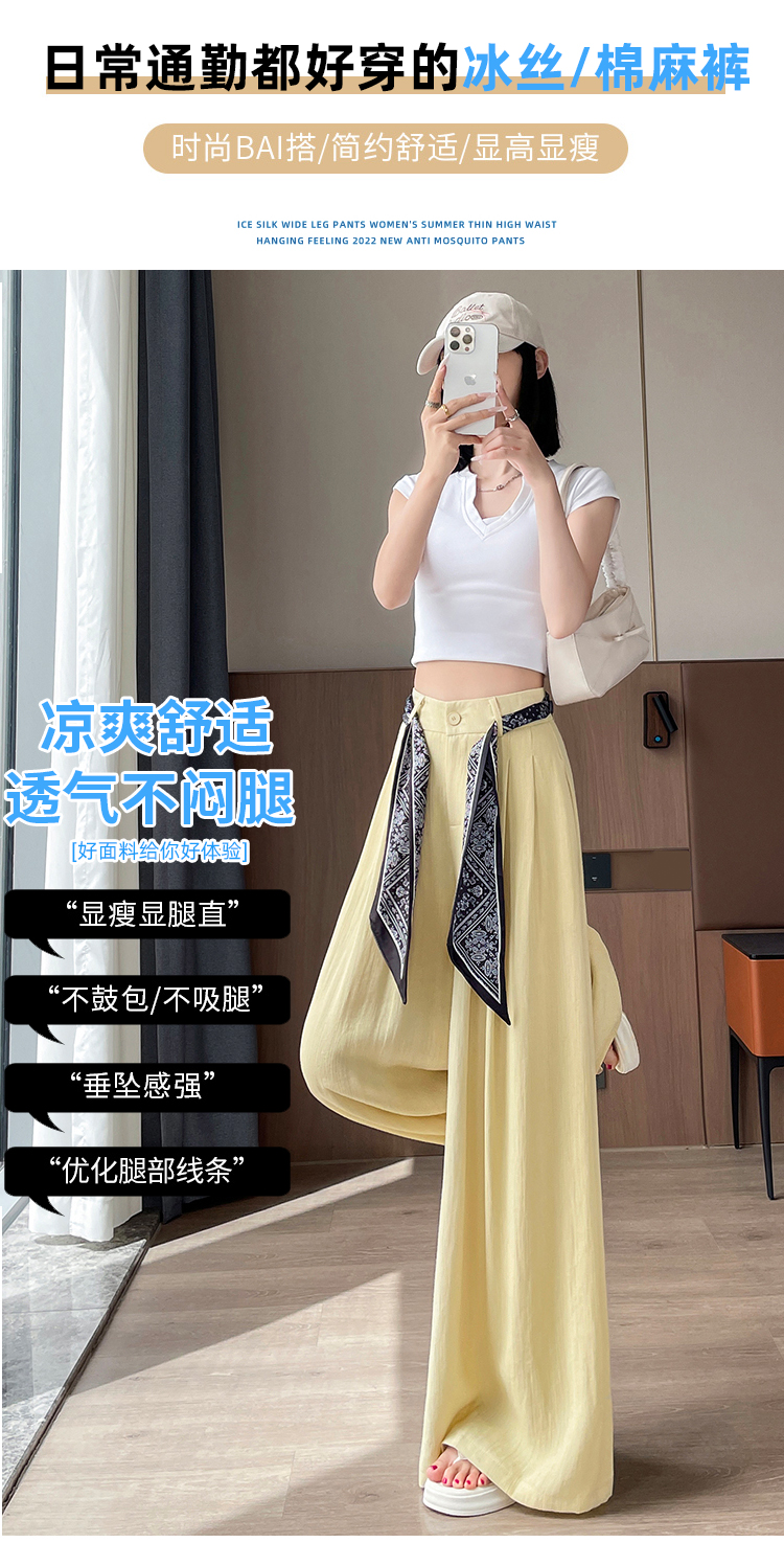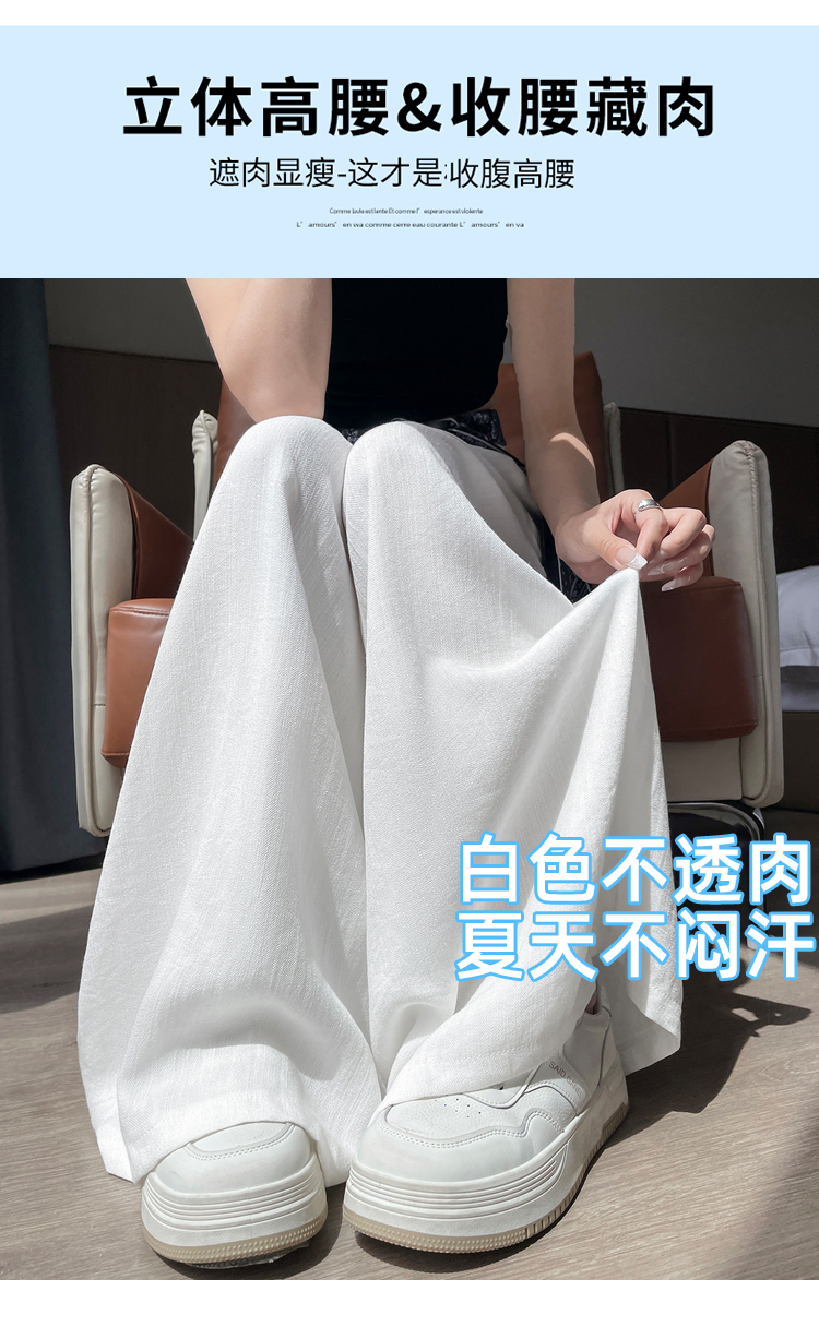 Real shot of ice silk cotton and linen suit wide-leg pants for women 2025 summer high waist loose large trousers casual straight mopping pants