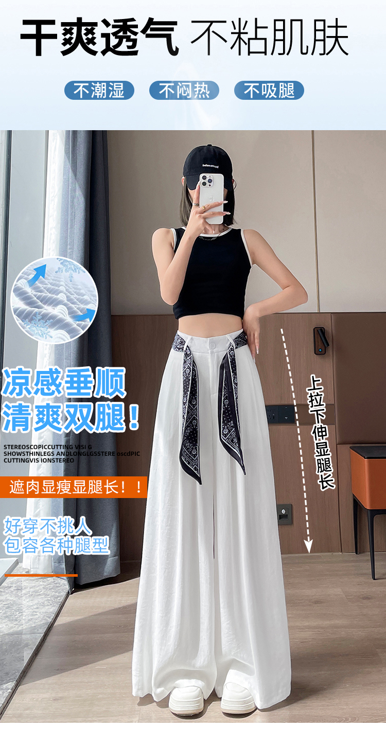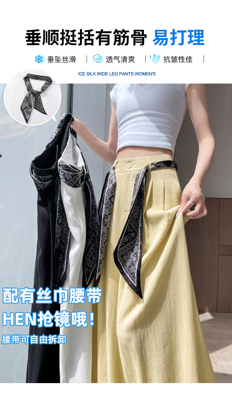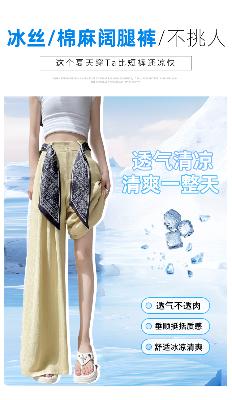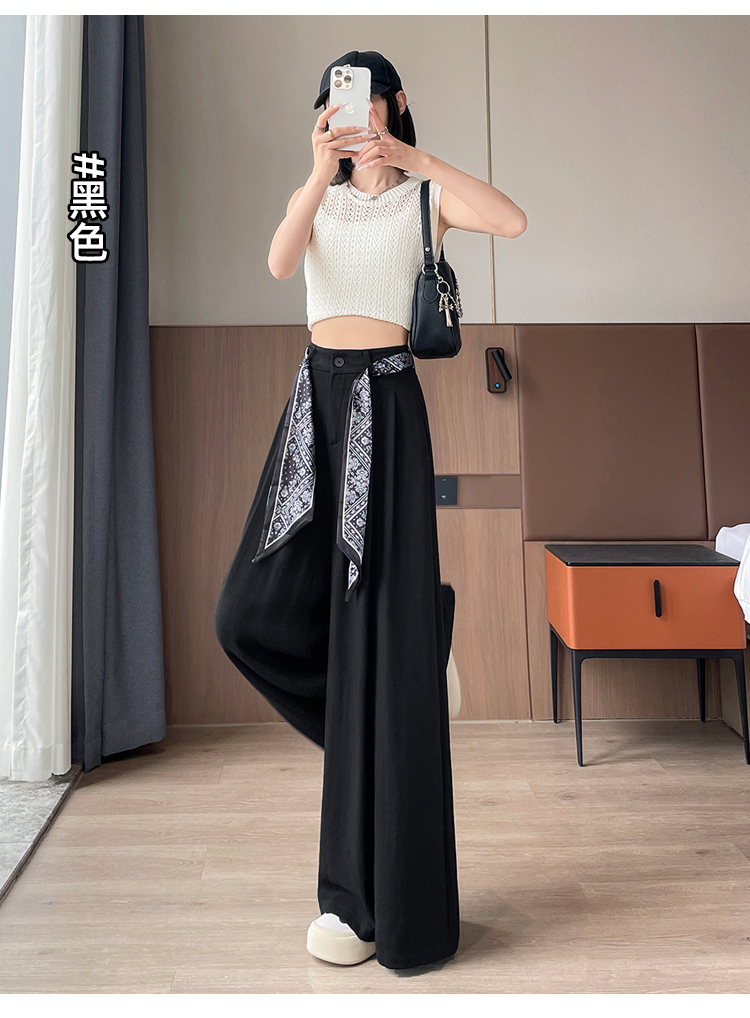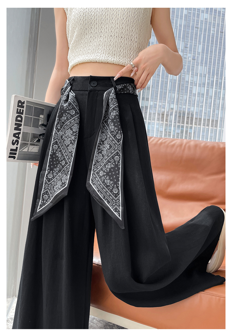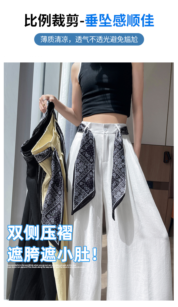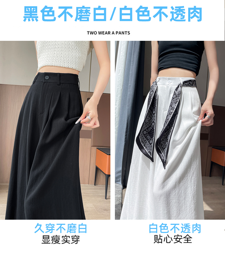 Real shot of ice silk cotton and linen suit wide-leg pants for women 2025 summer high waist loose large trousers casual straight mopping pants