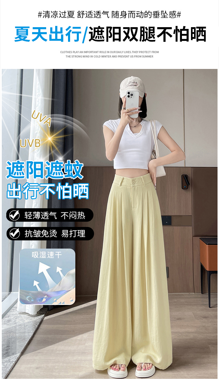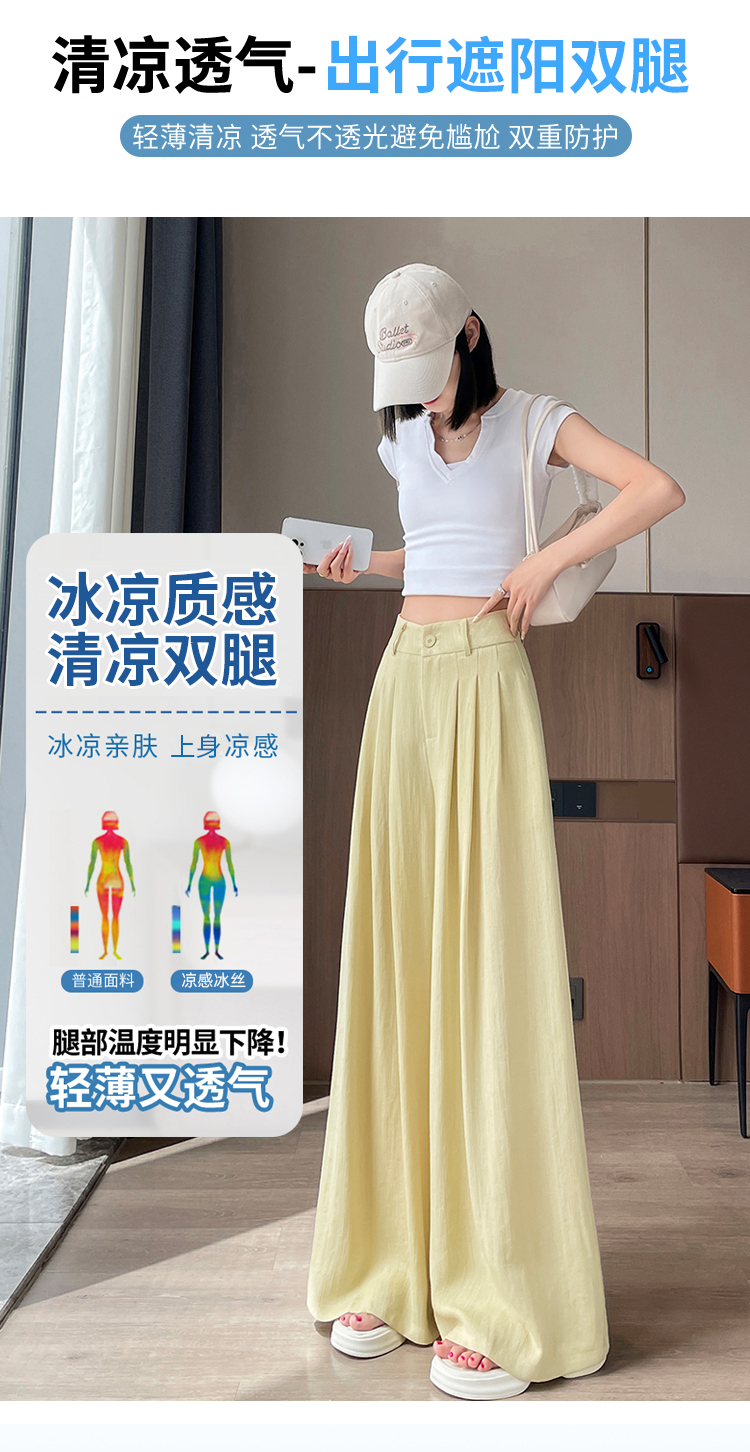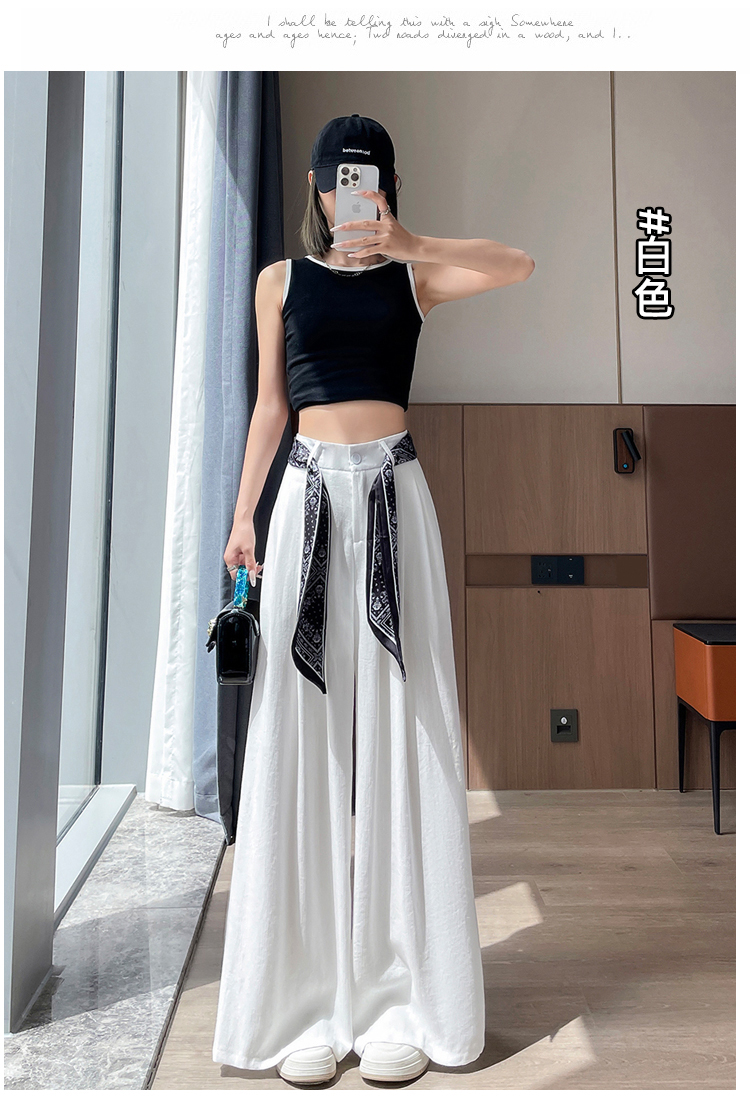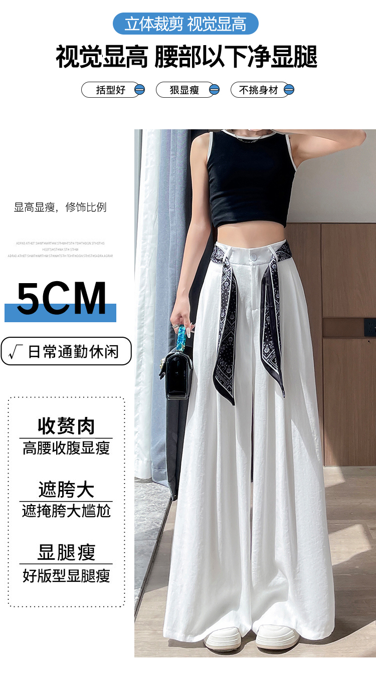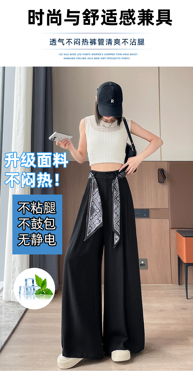 Real shot of ice silk cotton and linen suit wide-leg pants for women 2025 summer high waist loose large trousers casual straight mopping pants