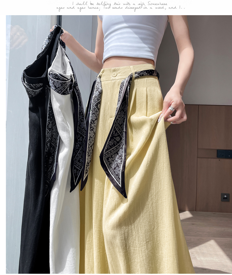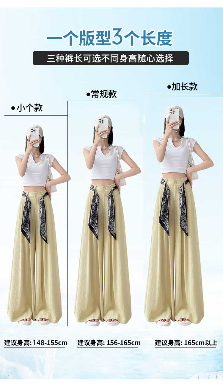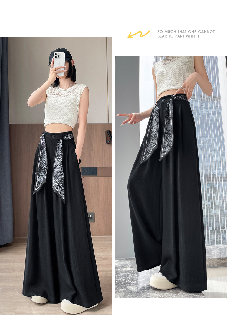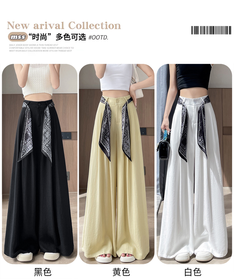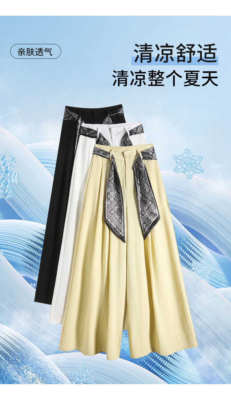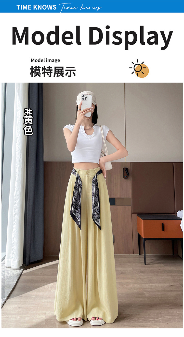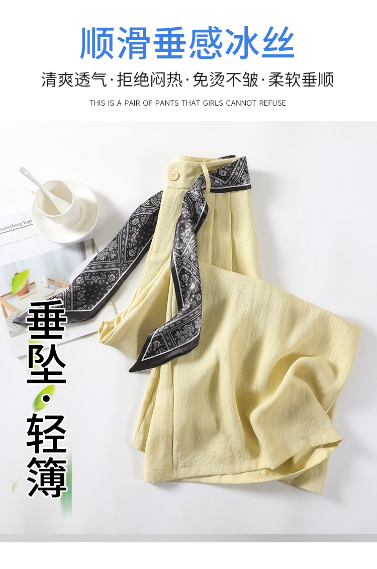 Real shot of ice silk cotton and linen suit wide-leg pants for women 2025 summer high waist loose large trousers casual straight mopping pants