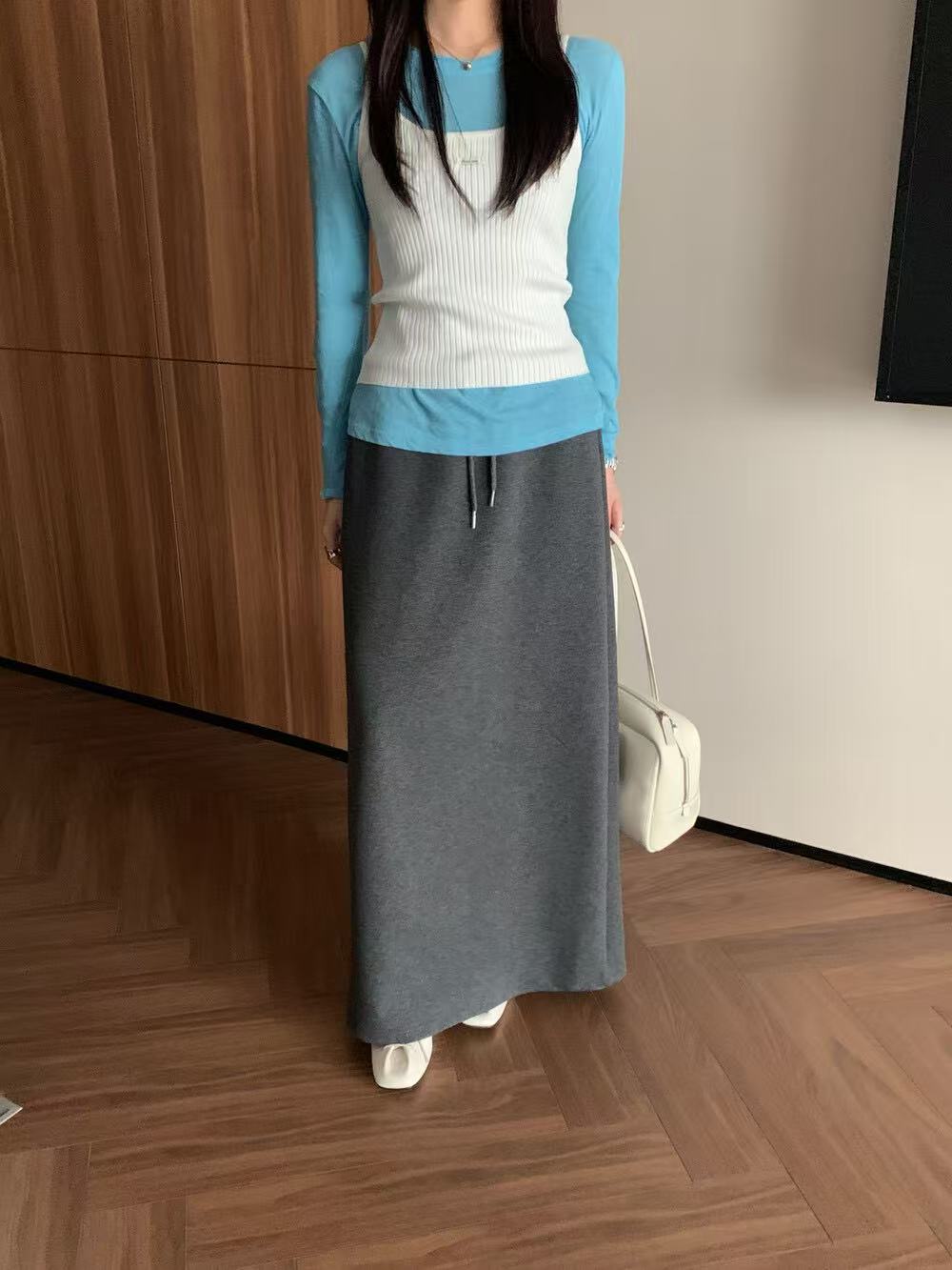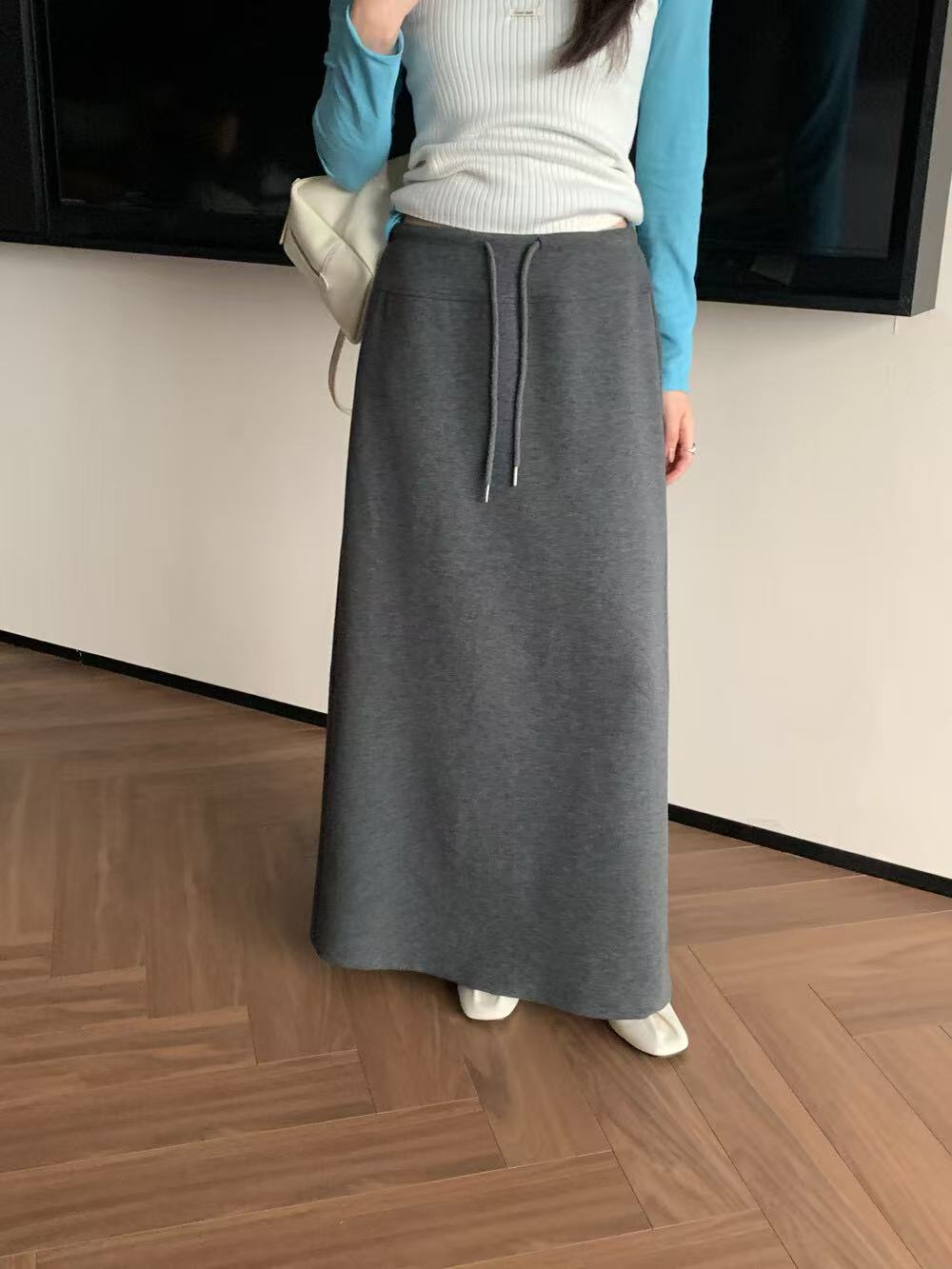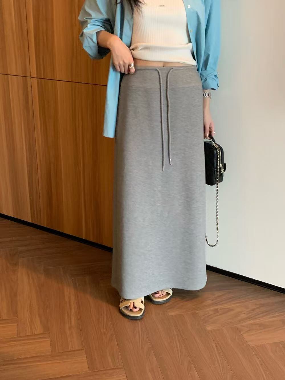 爆TE好穿好搭松弛感显瘦针织半身裙配腰绳