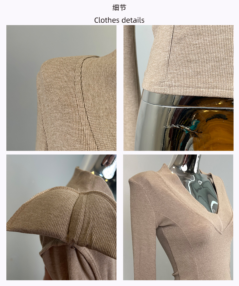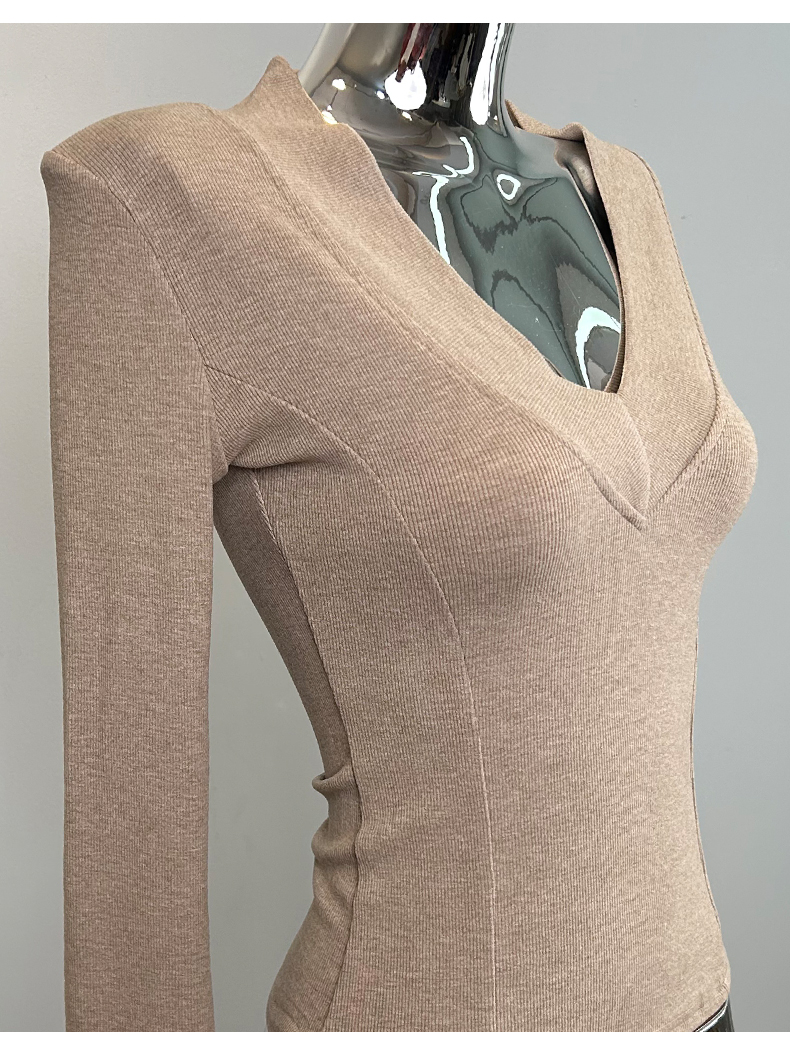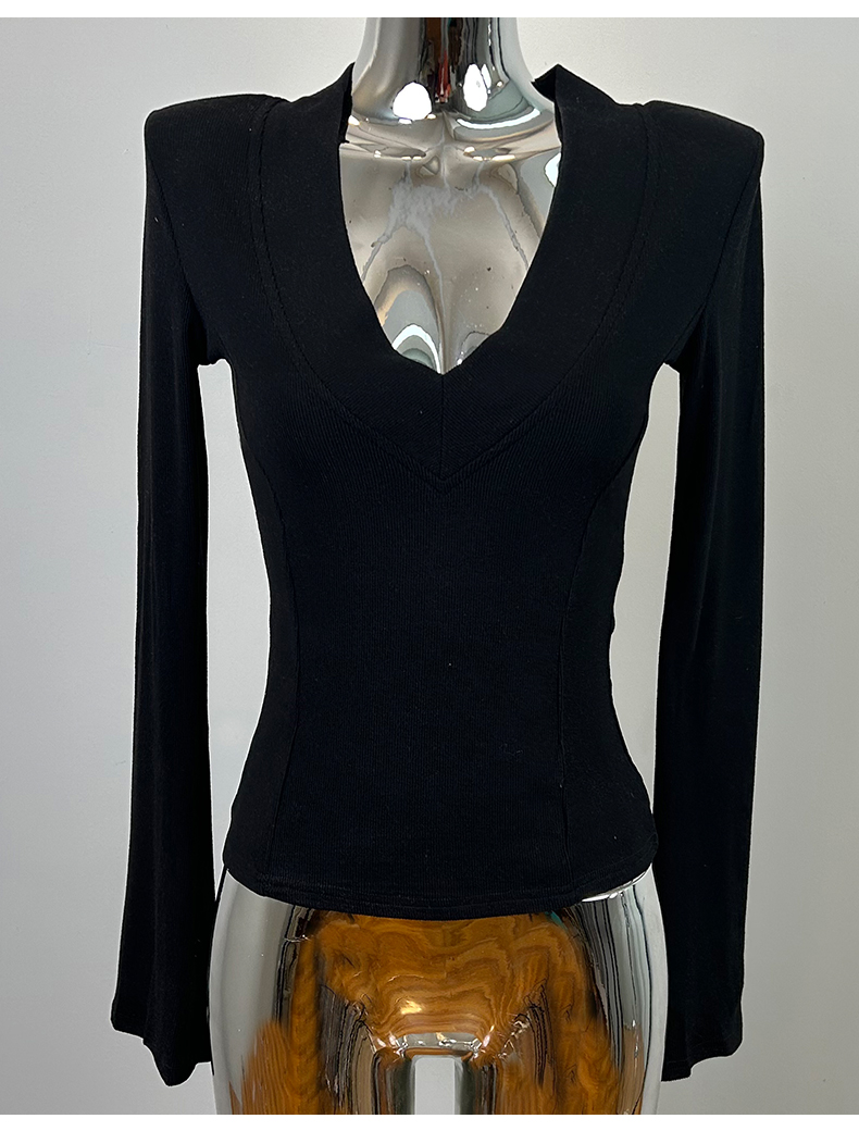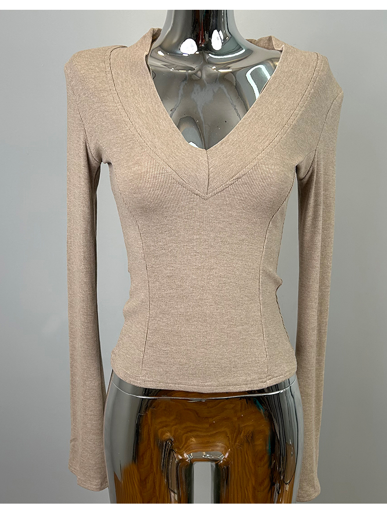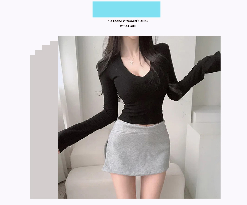 韩国东大门新品 性感显身材 辣妹女人味V领紧身打底衫T恤