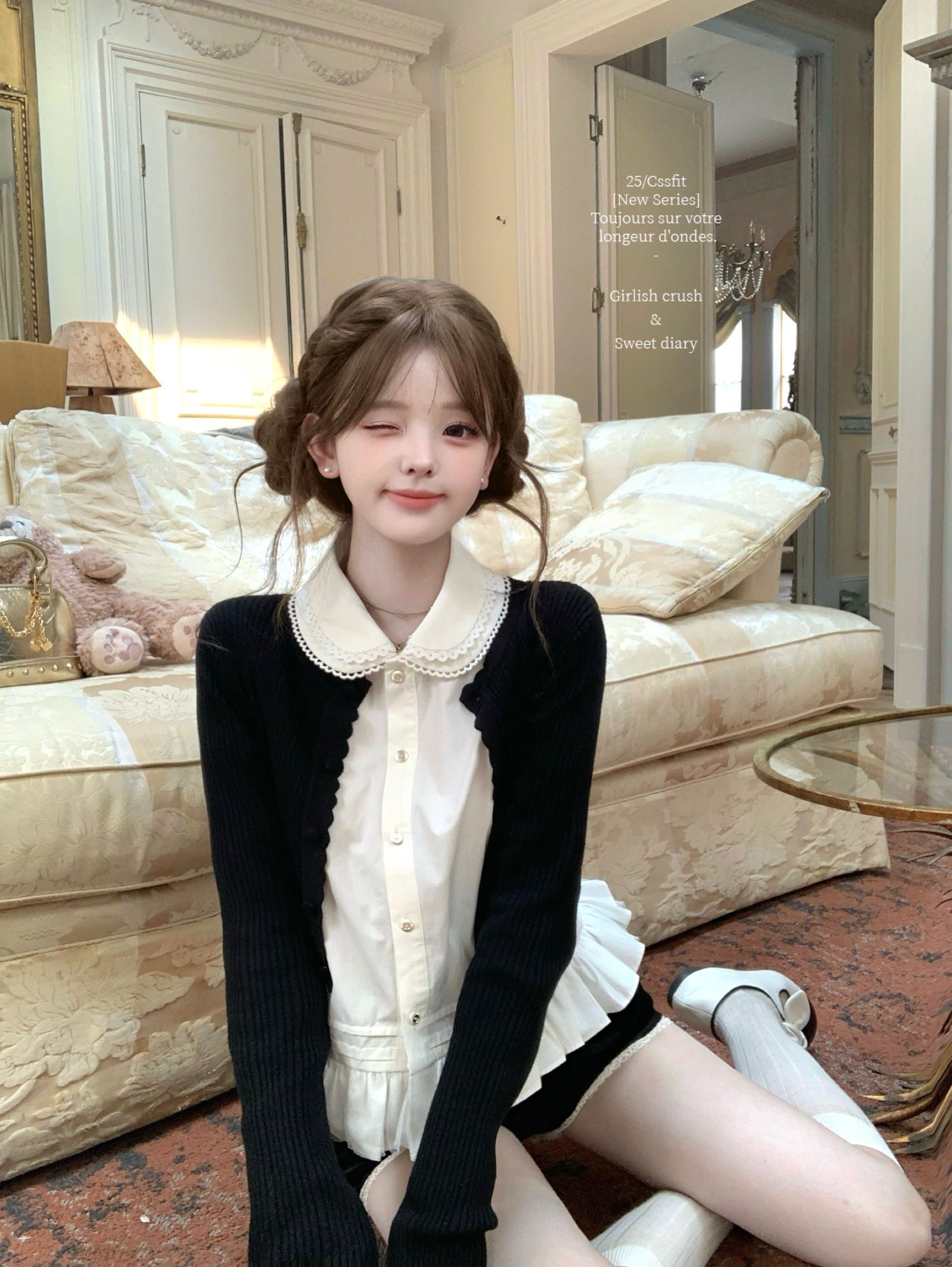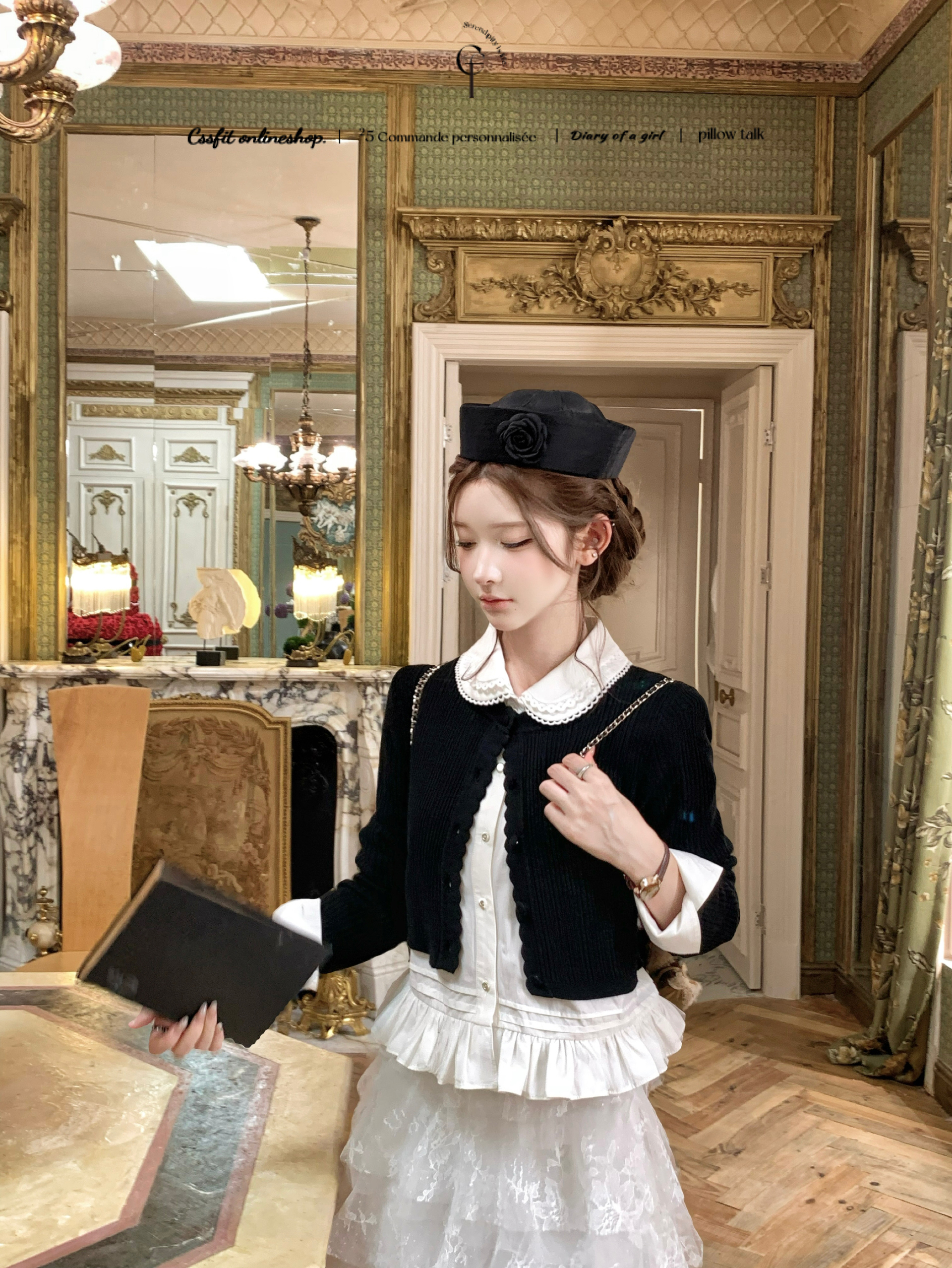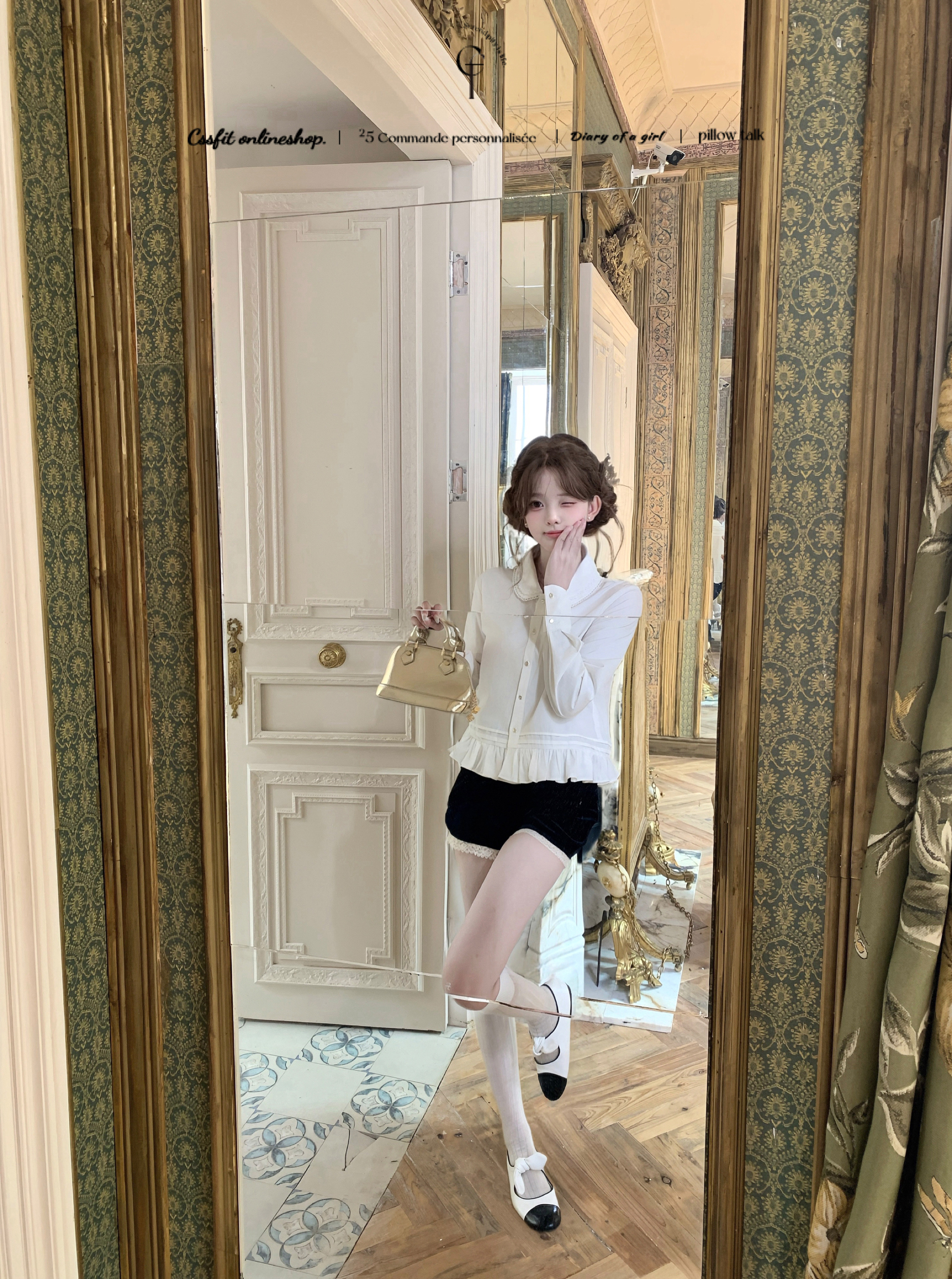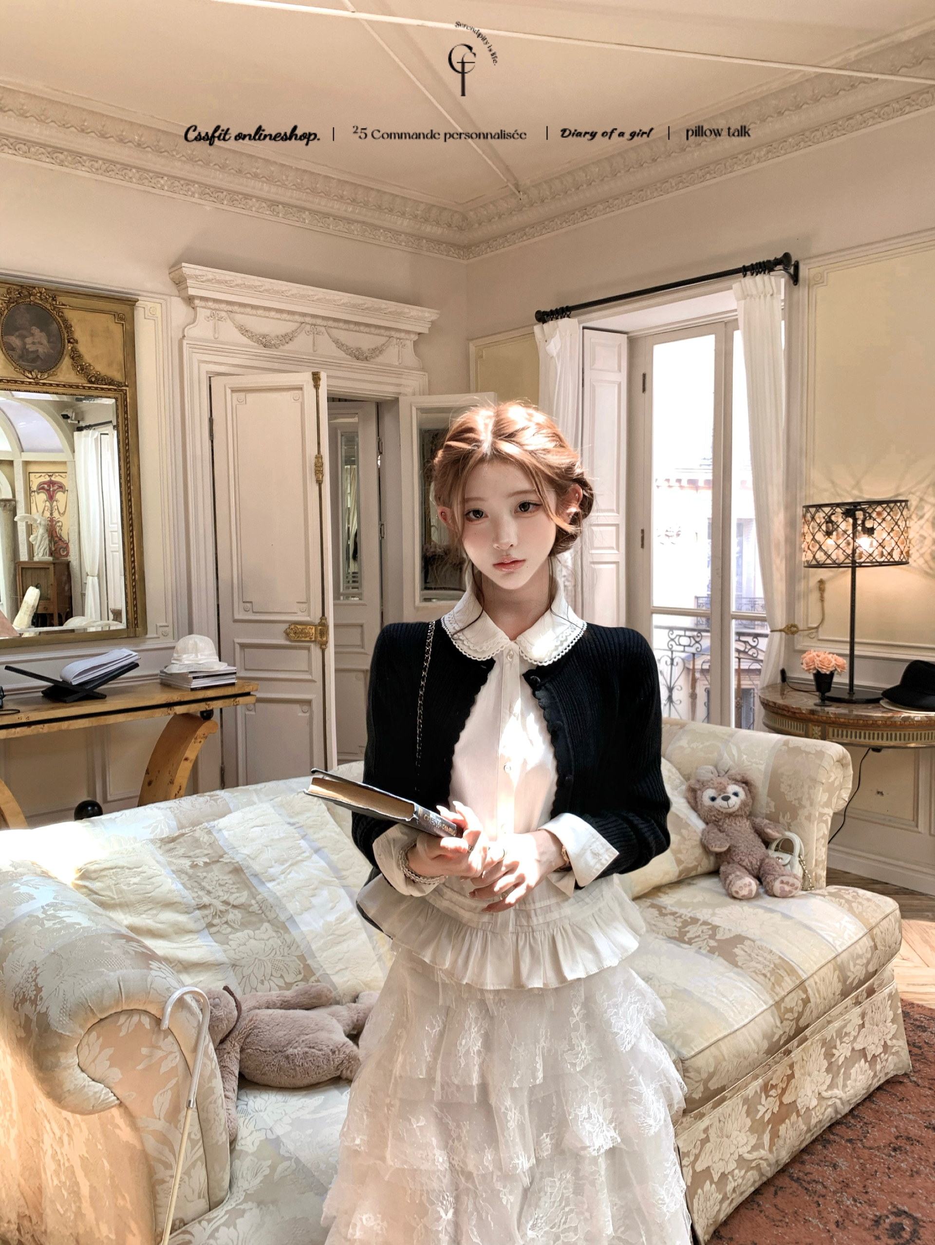 迟伞伞25/fw 绢羽笔尖 小卓花边拼纱下摆刺绣领纯棉白衬衫上衣