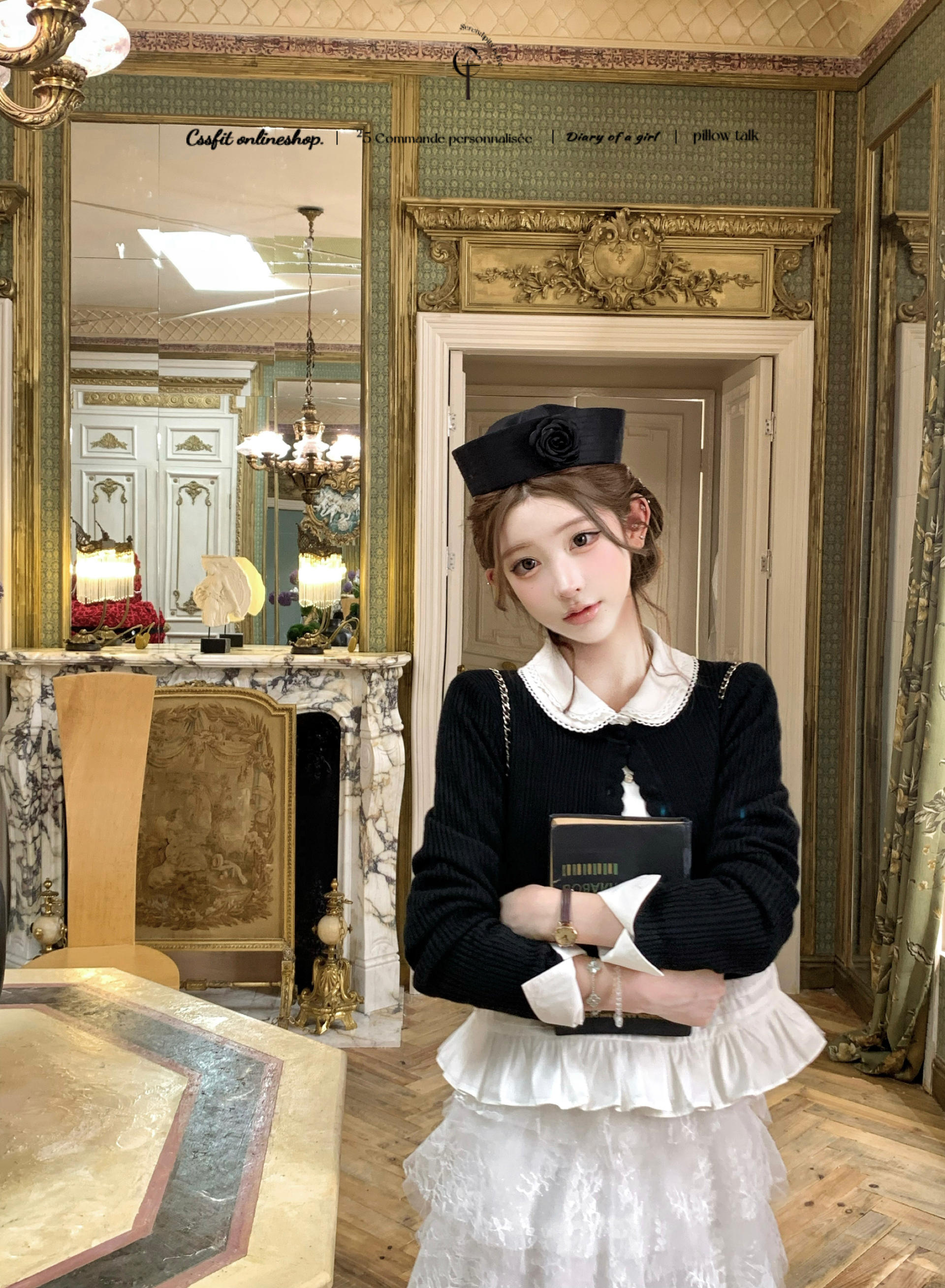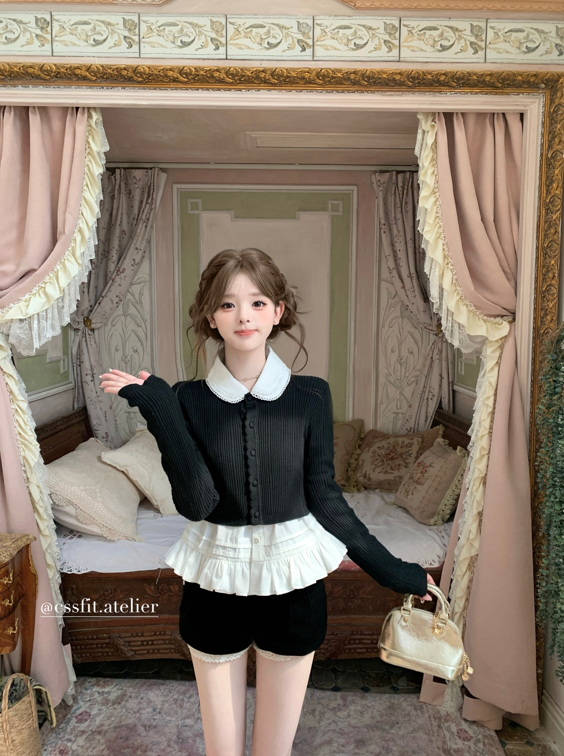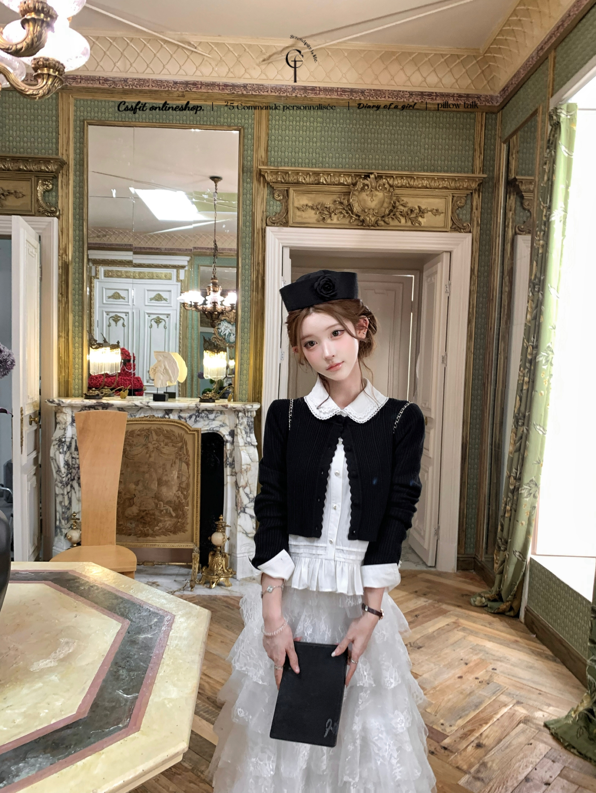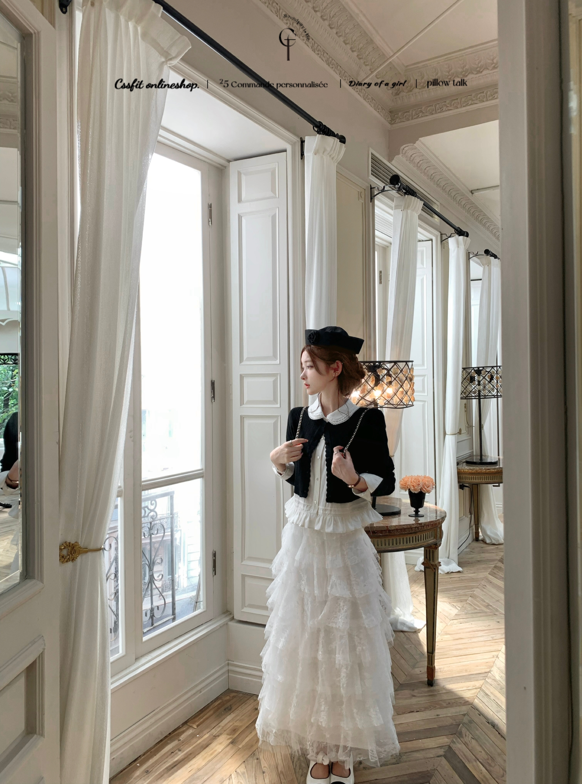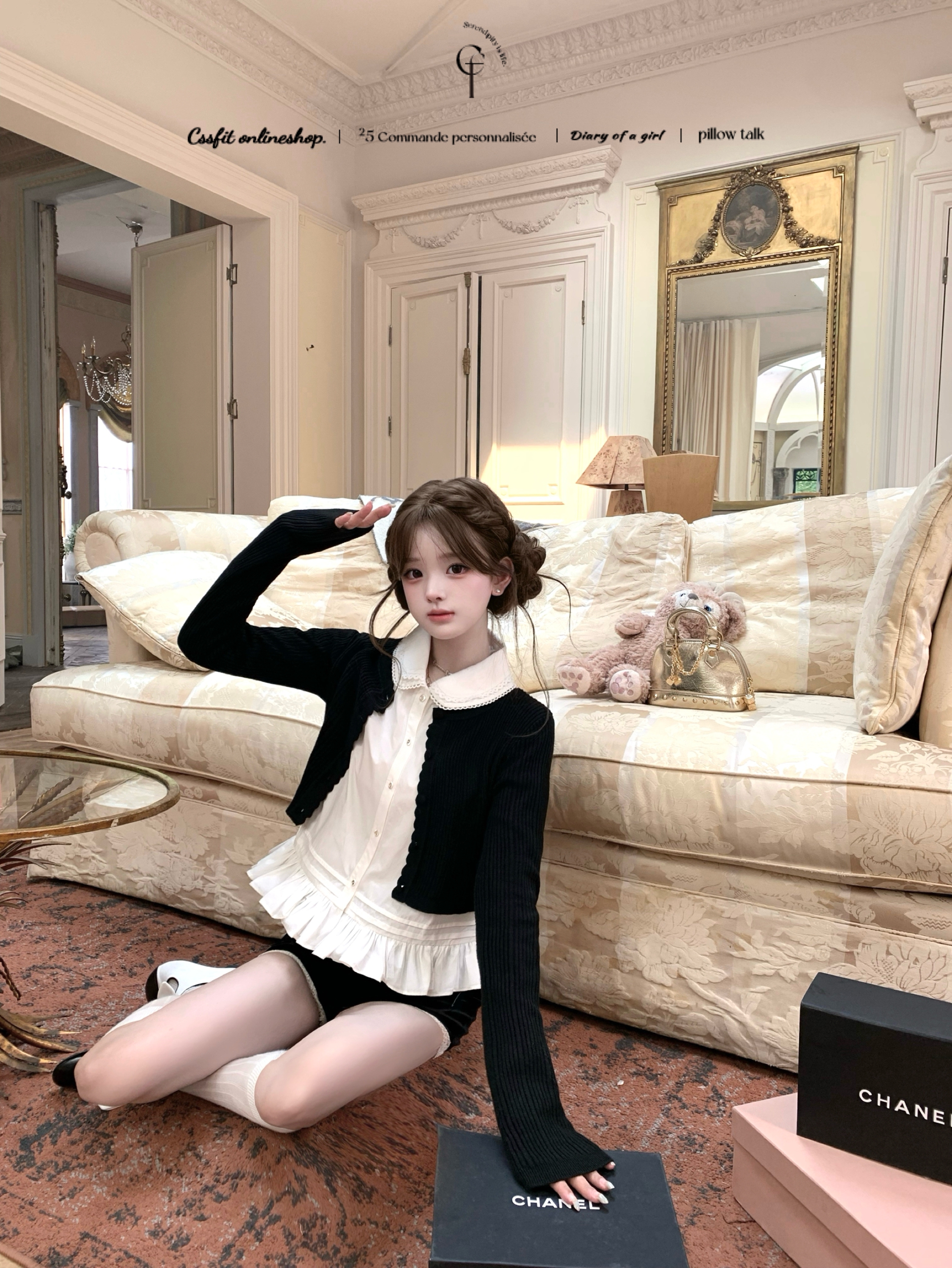 迟伞伞25/fw 绢羽笔尖 小卓花边拼纱下摆刺绣领纯棉白衬衫上衣