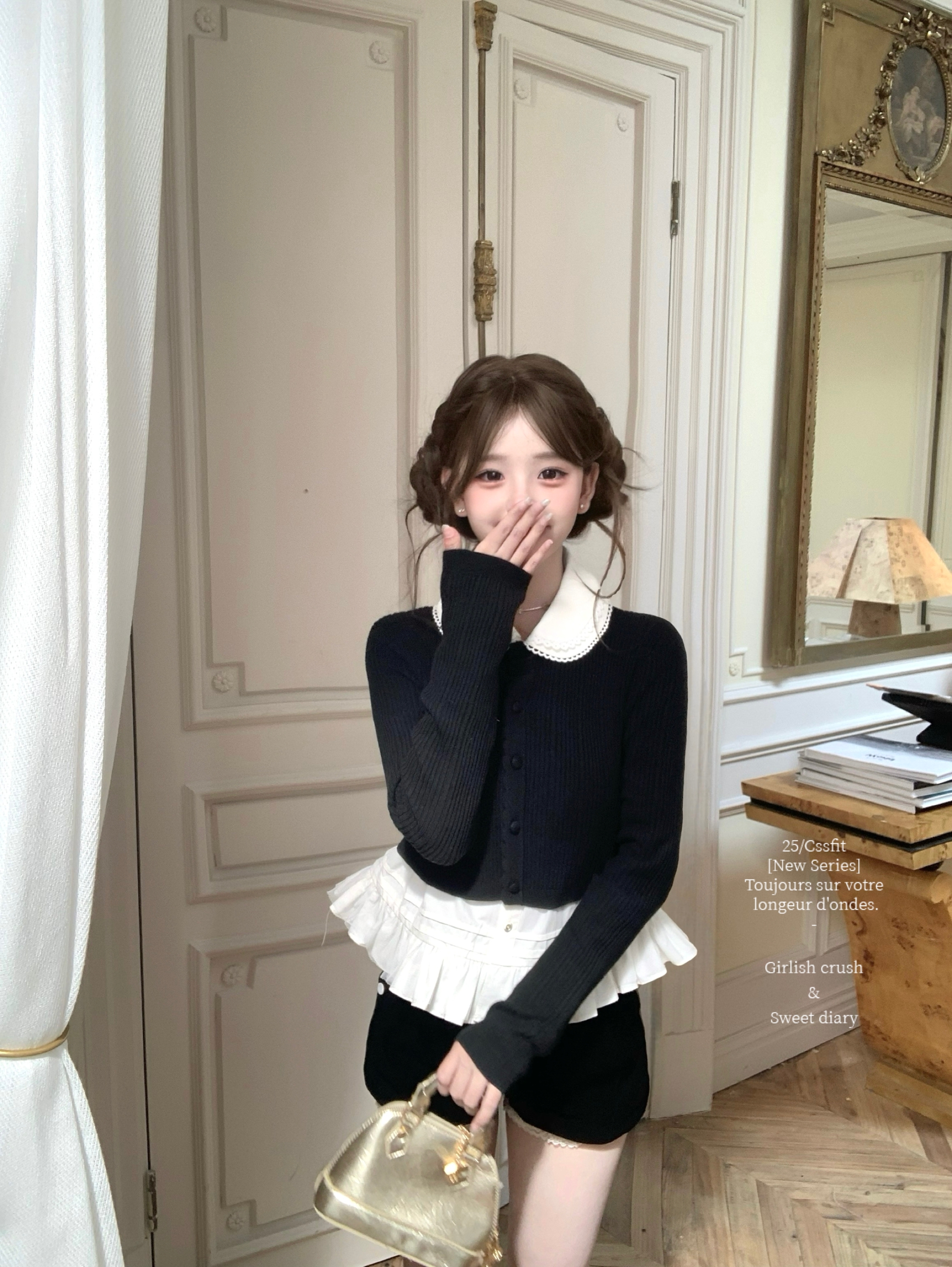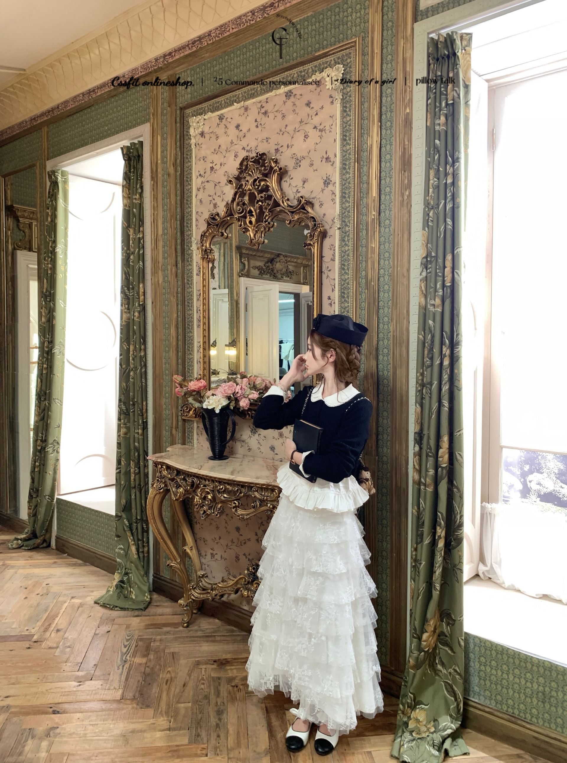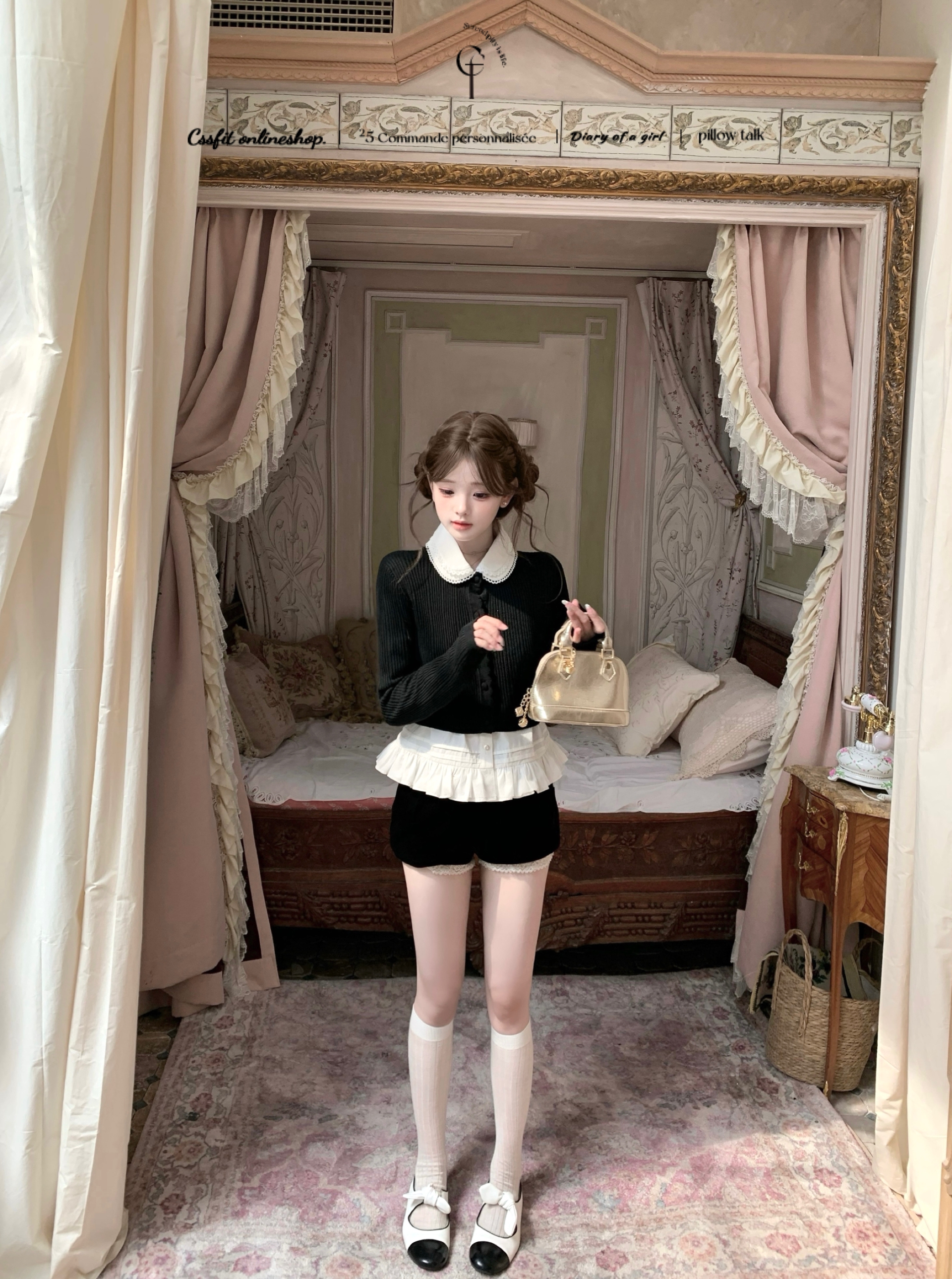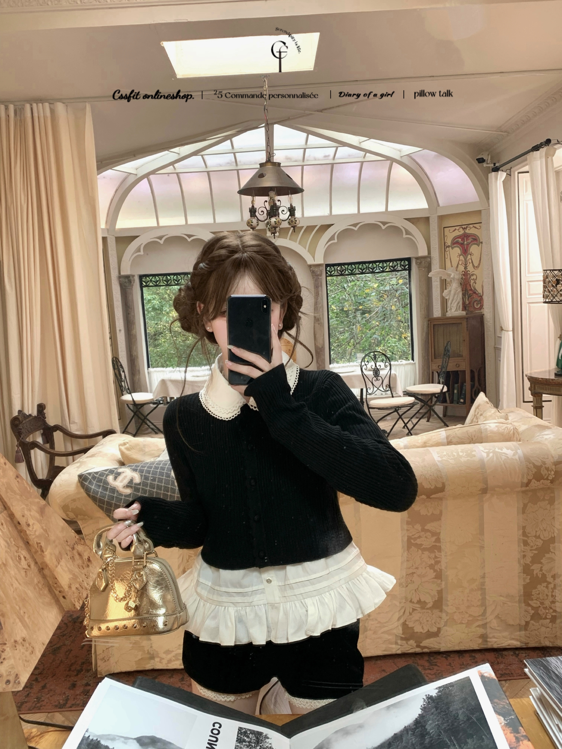 迟伞伞25/fw 绢羽笔尖 小卓花边拼纱下摆刺绣领纯棉白衬衫上衣