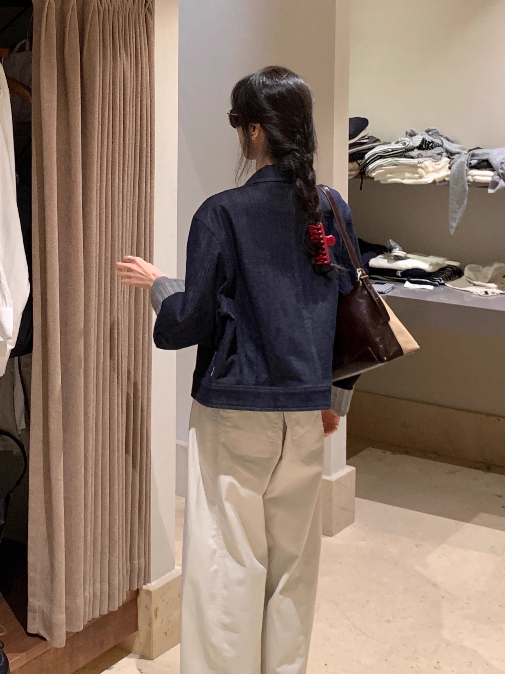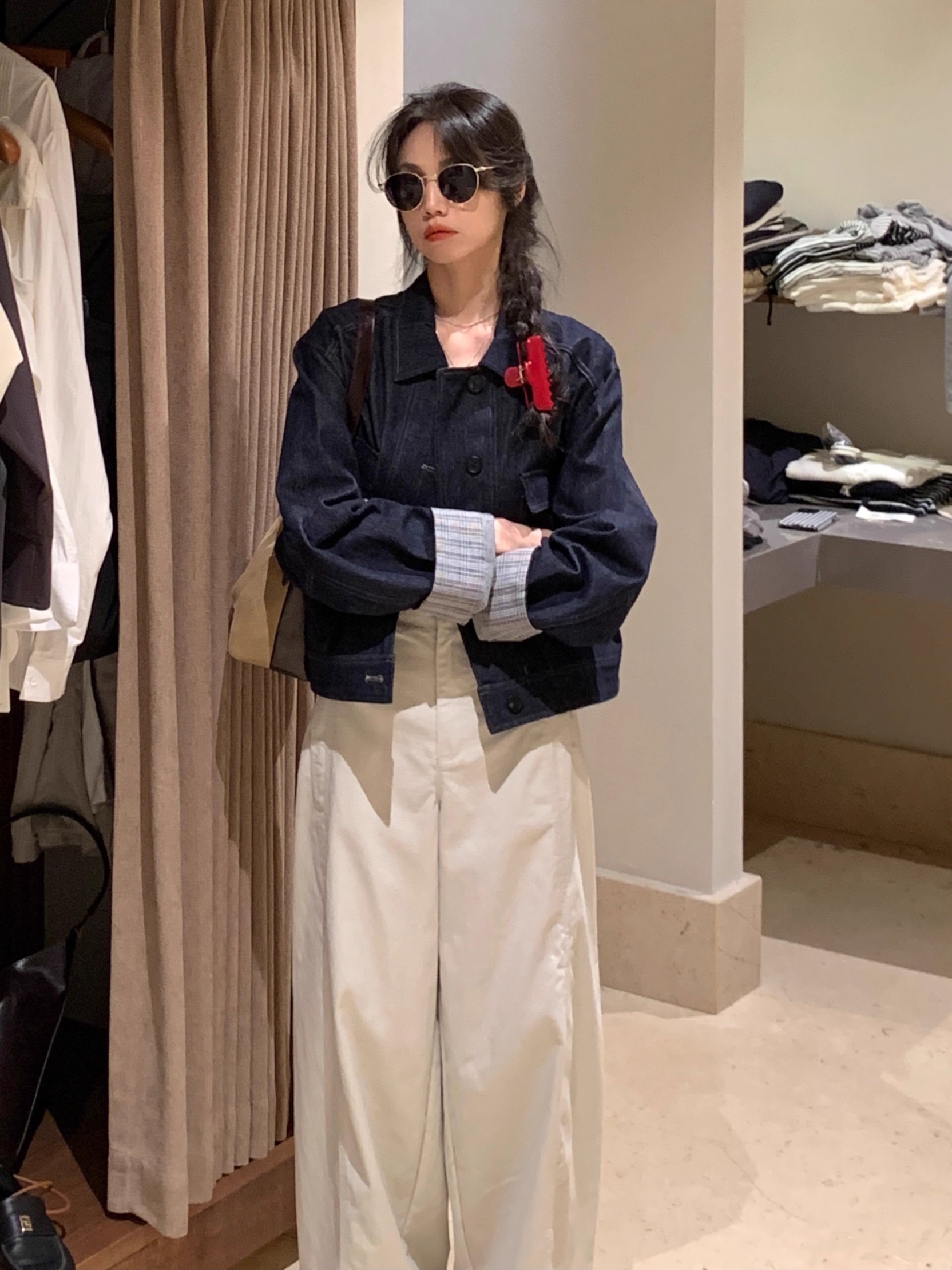 BRIVIN韩系深蓝色复古牛仔短外套女2025秋新休闲百搭显瘦夹克上衣