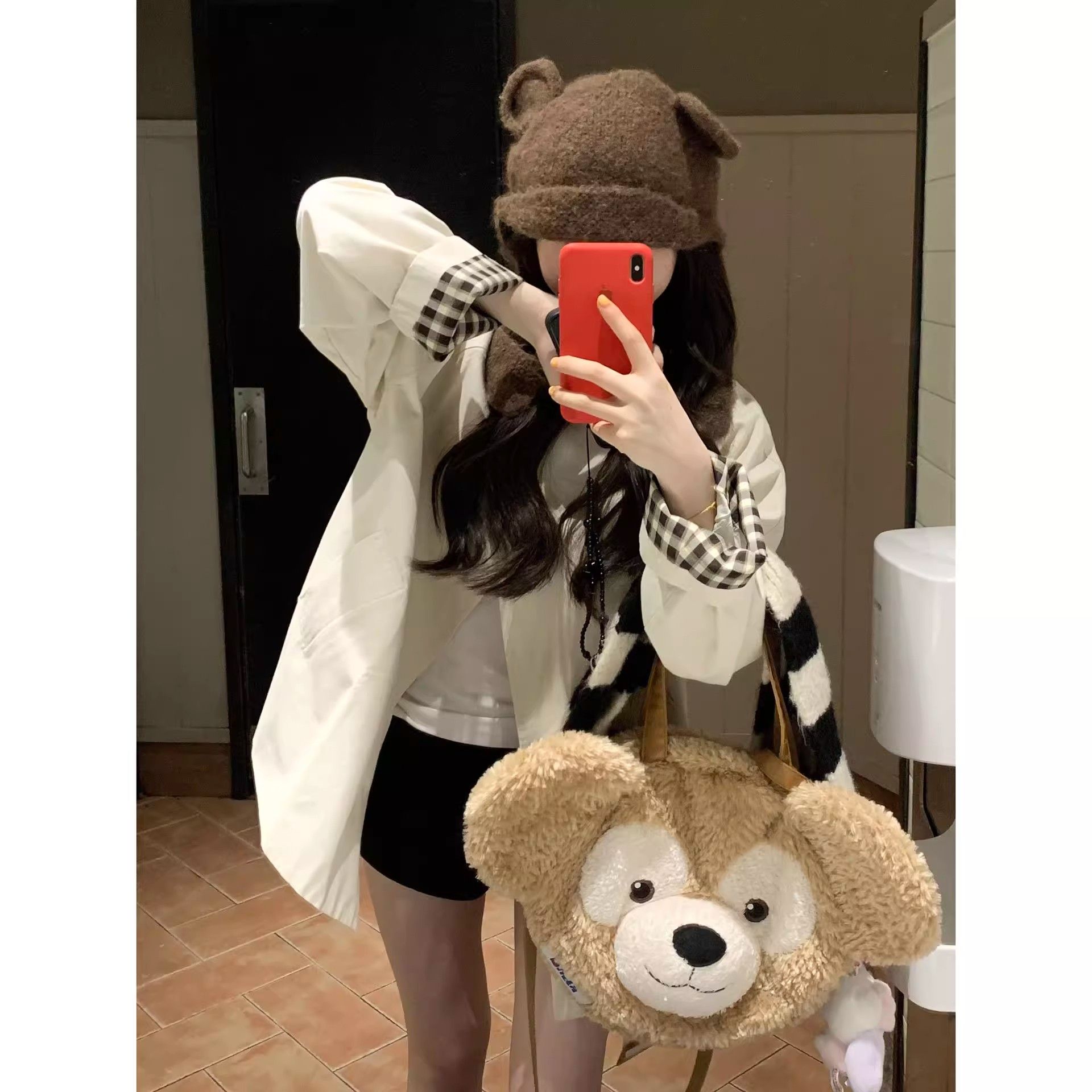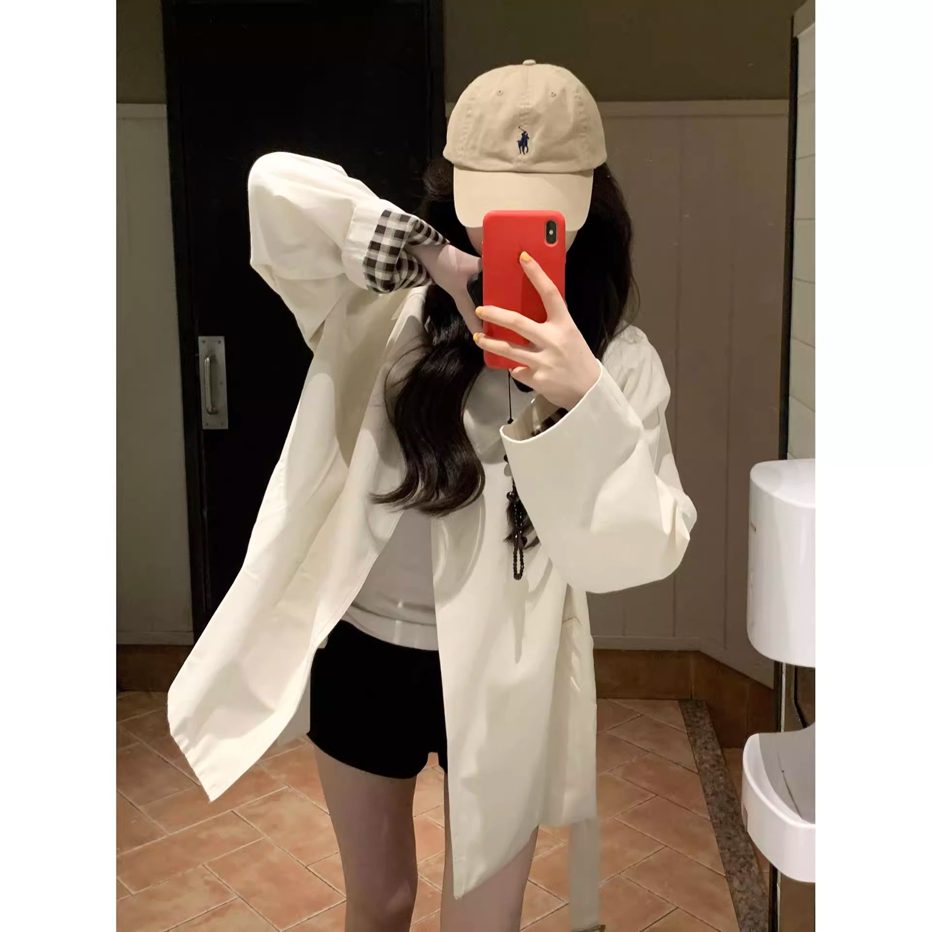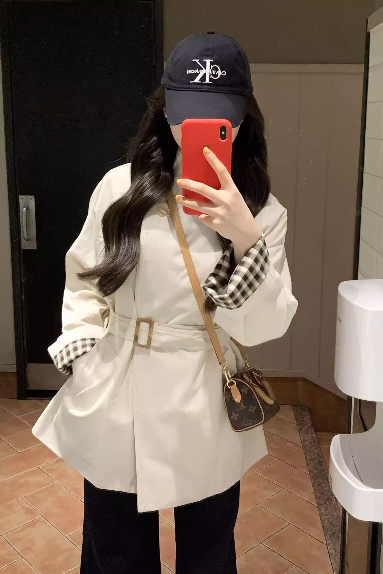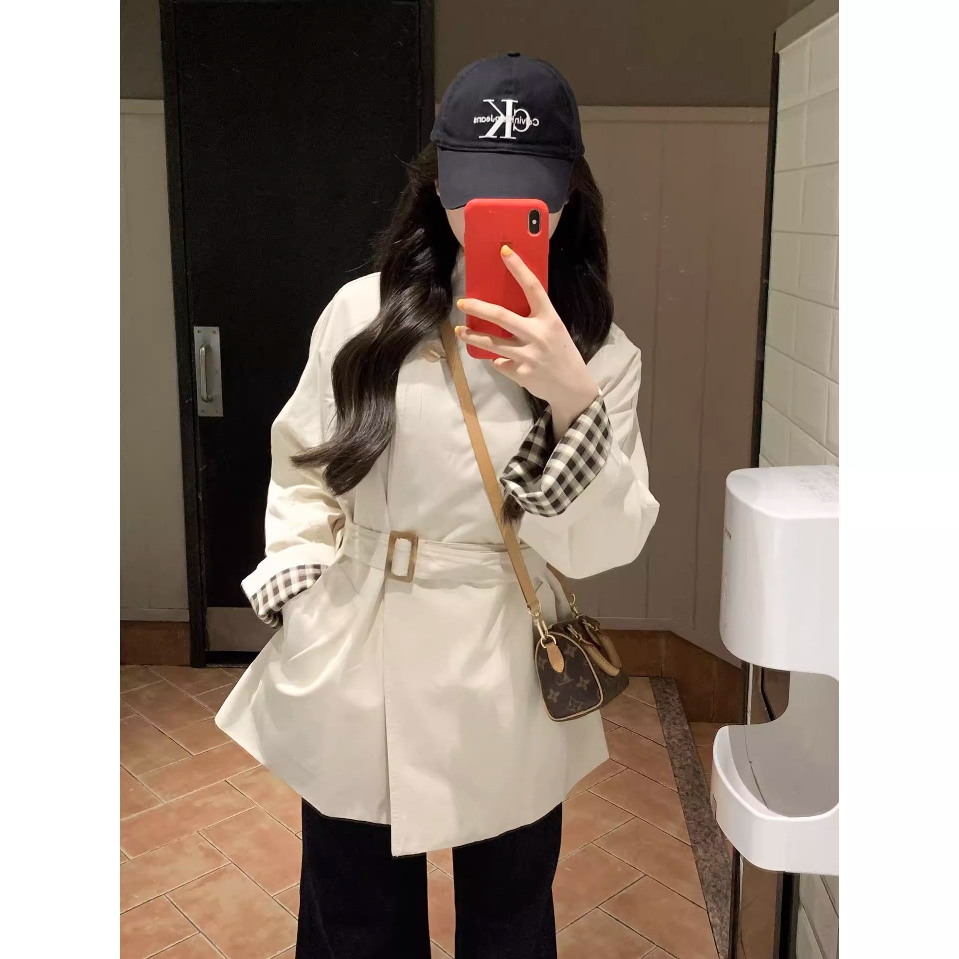一粒扣斗篷风衣女欧韩设计感显瘦外套复古格纹拼接中长款大衣