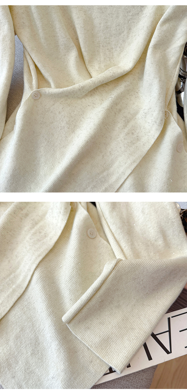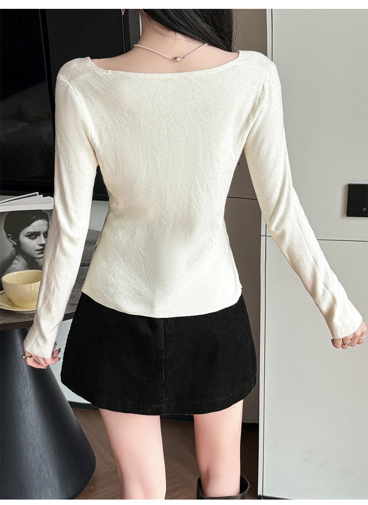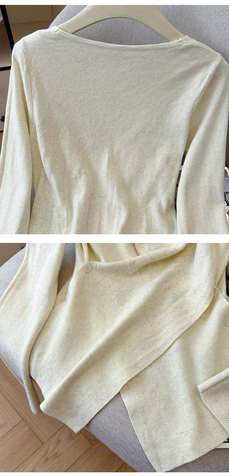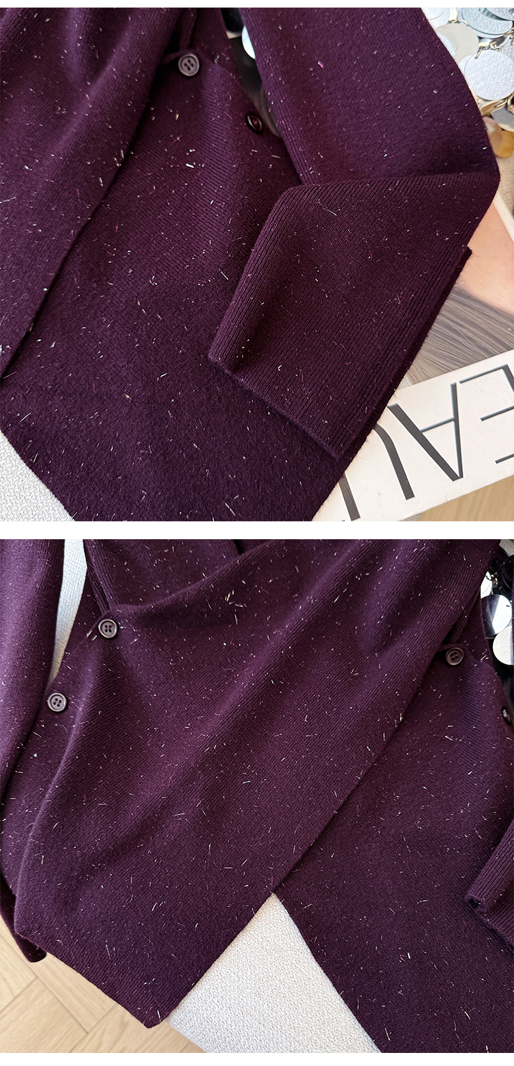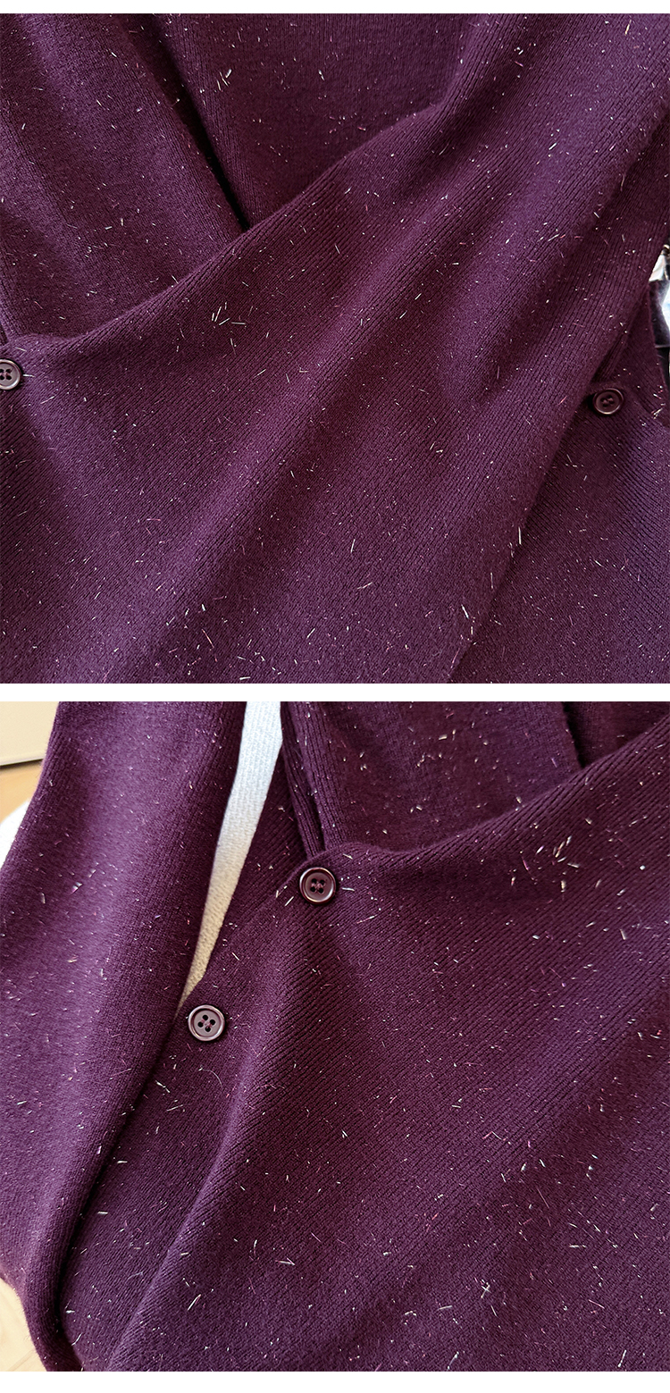 有货秋冬亮丝V领不规则打底衫女设计感褶皱含羊毛上衣长袖针织衫