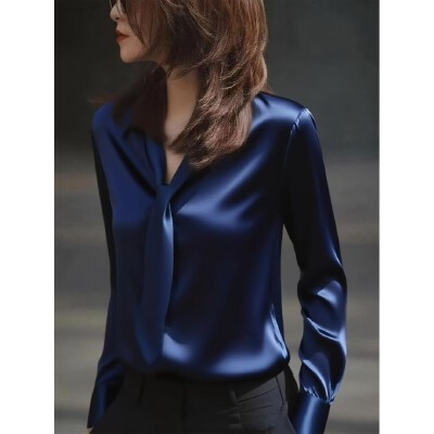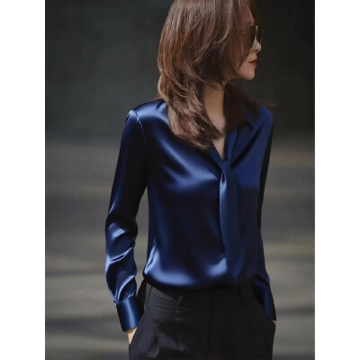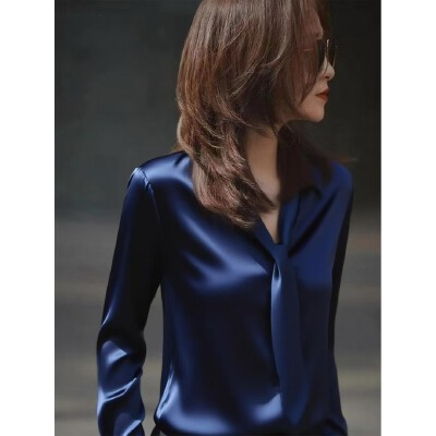 法式别致绝美小上衣高级感超好看轻奢减龄洋气蓝色缎面衬衫女秋季