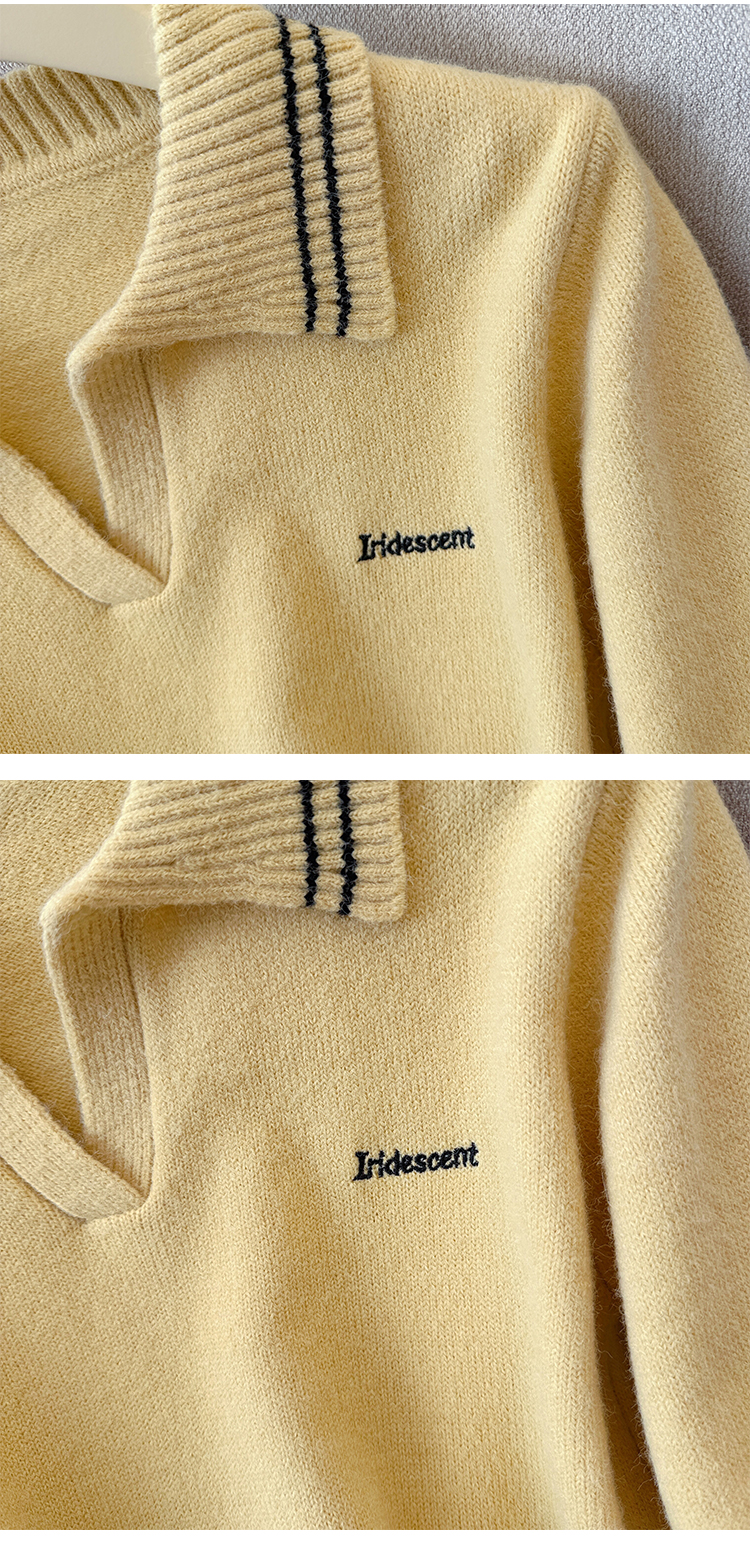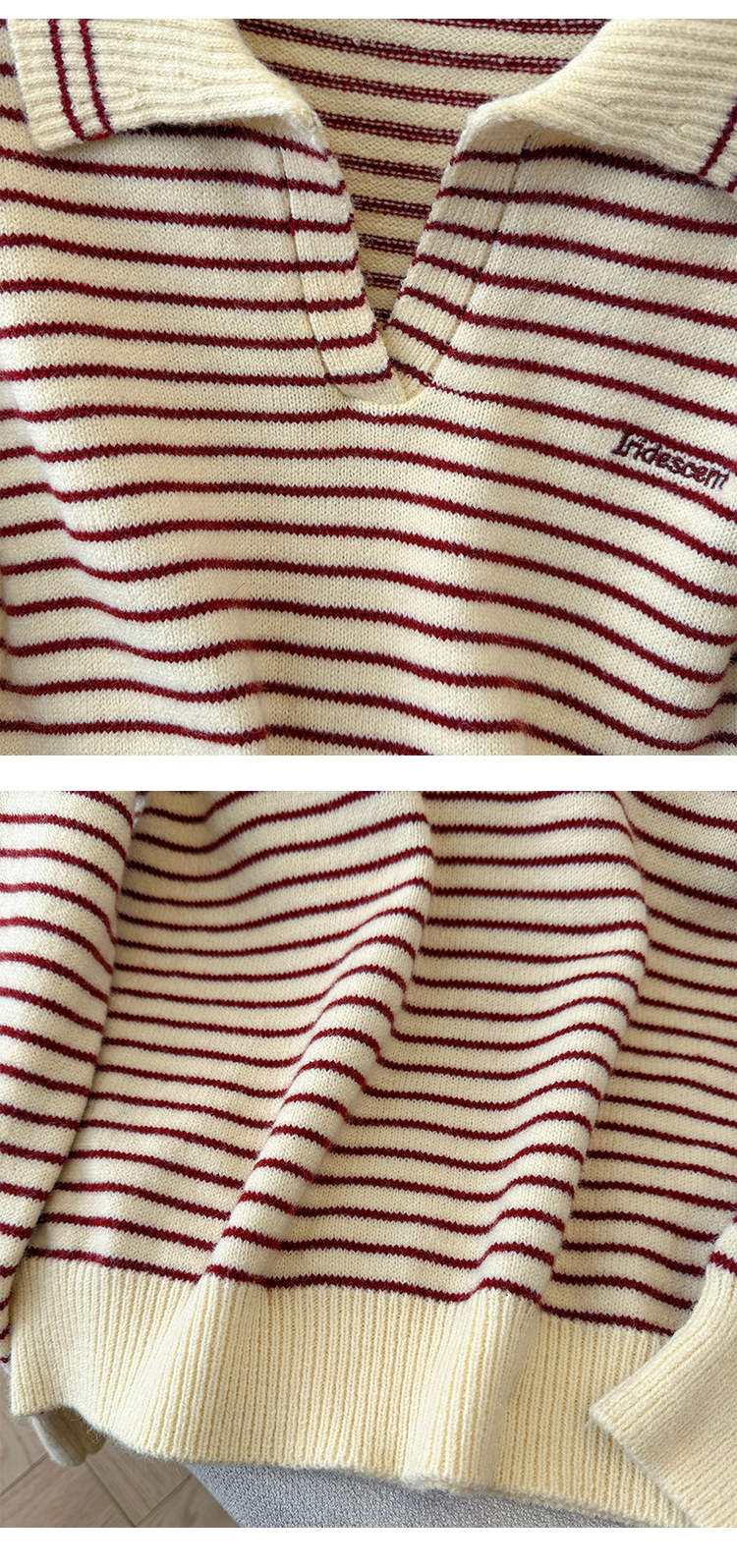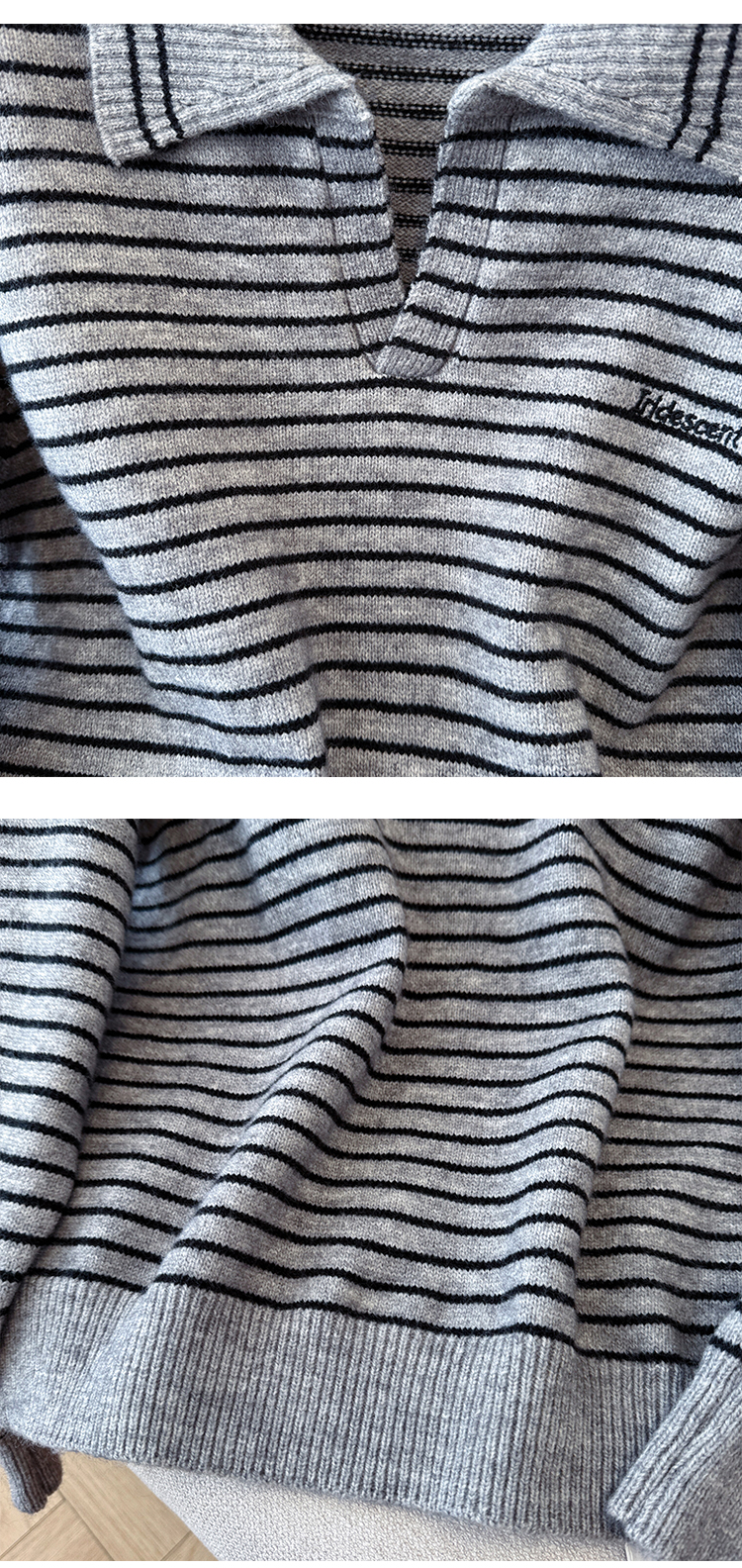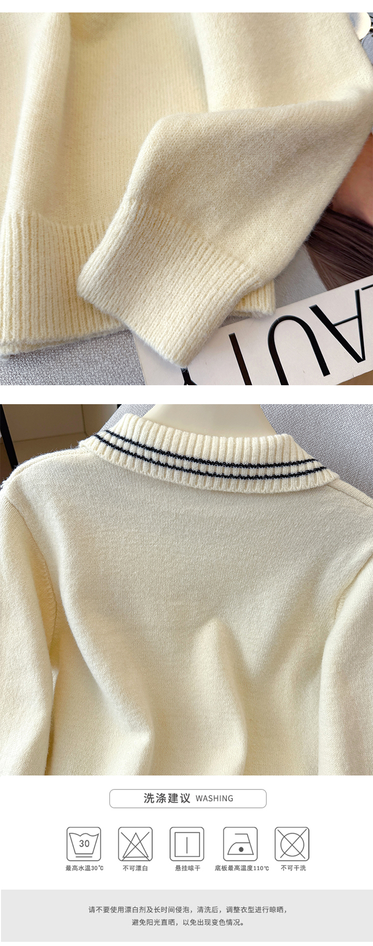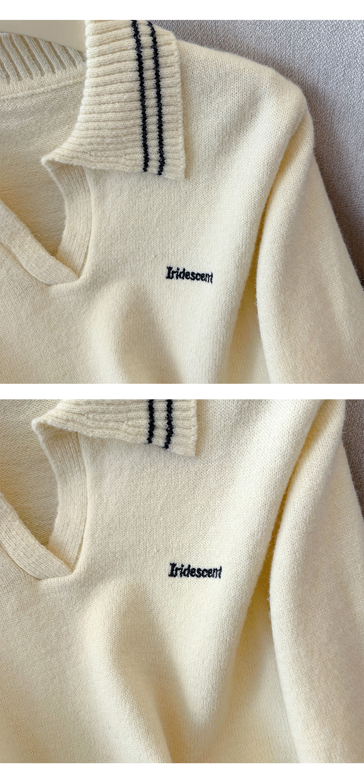 有货秋冬新款设计感刺绣polo半开领学院风条纹毛衣套头针织衫女