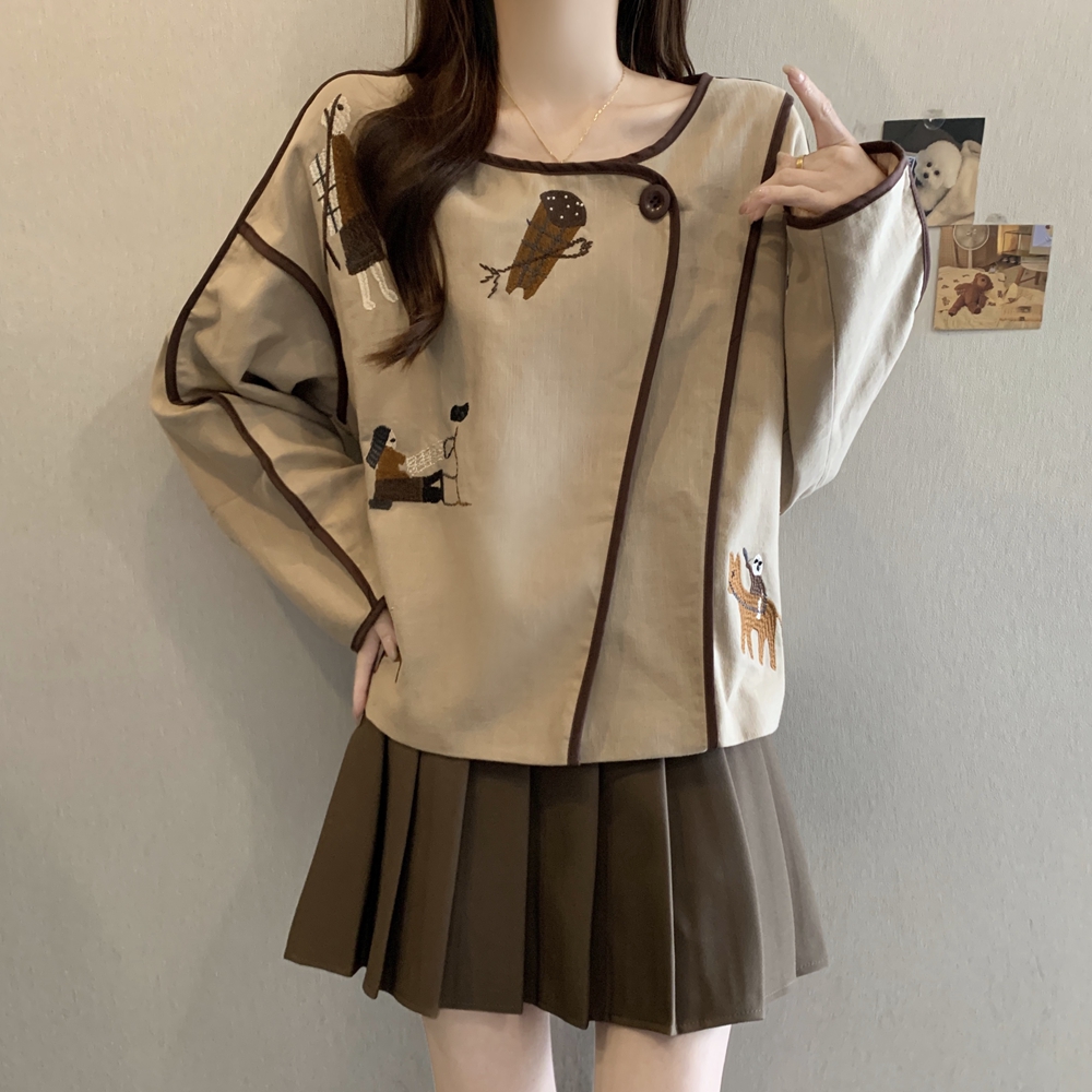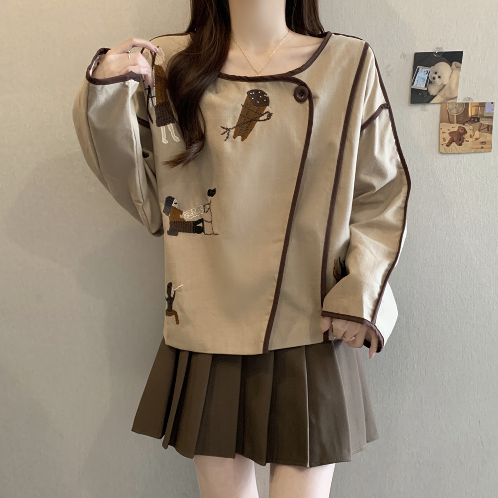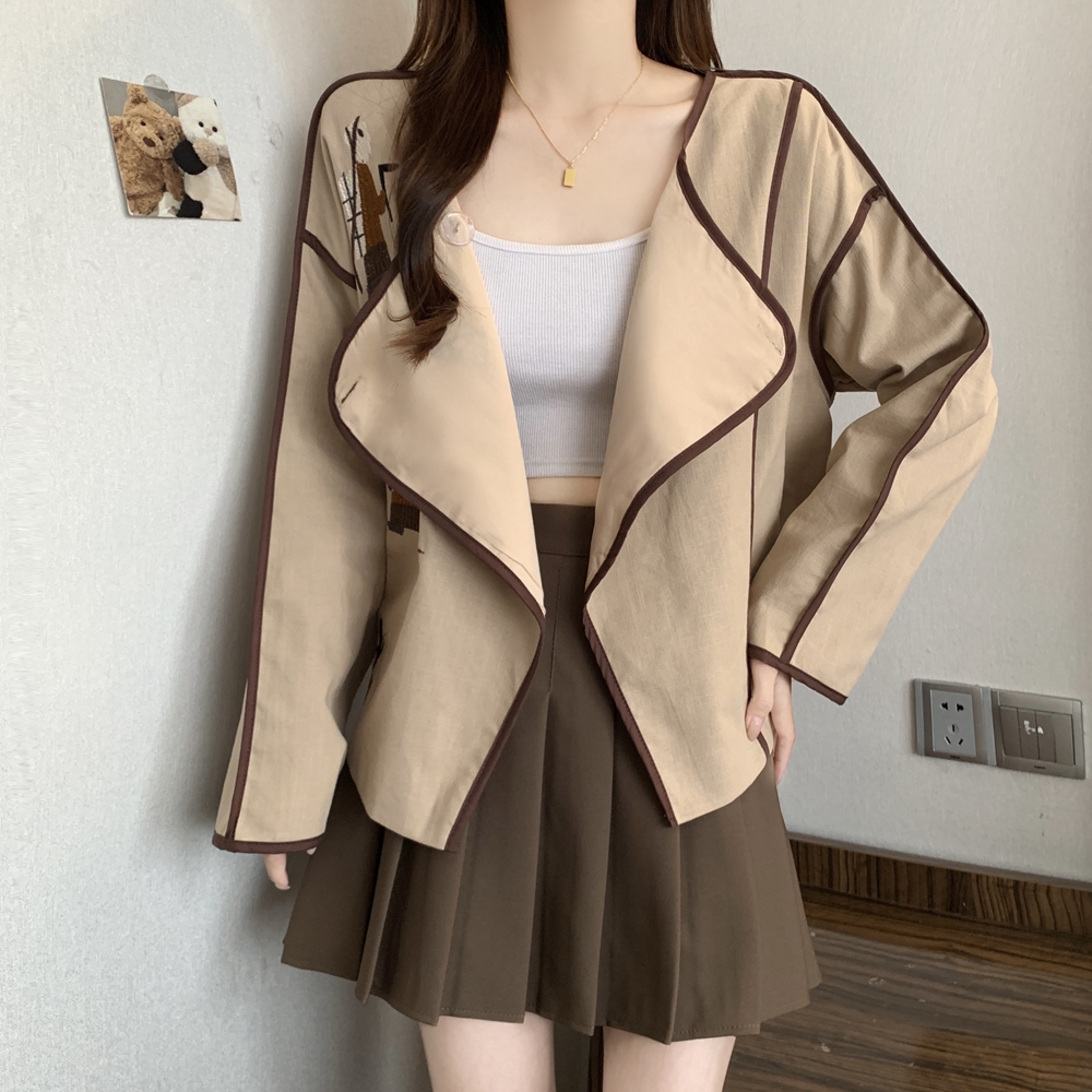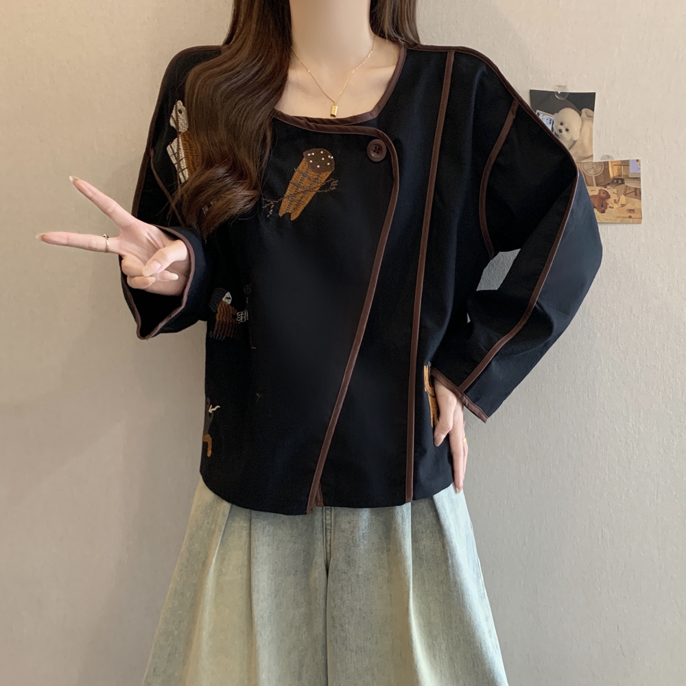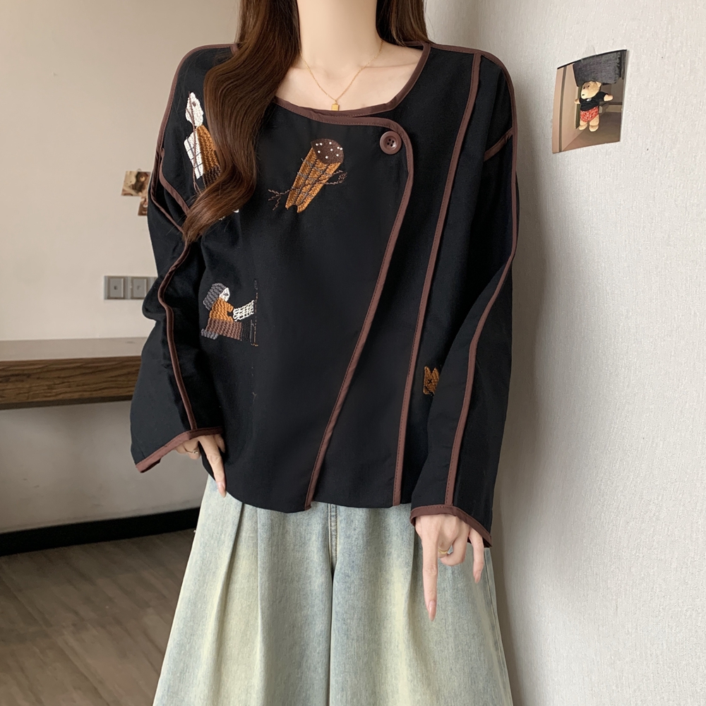 实拍秋装新款高端亚麻重工刺绣圆领短款外套宽松休闲夹克上衣