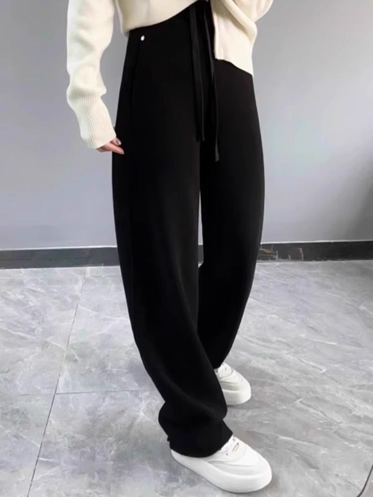 好质量 欧货弯刀卫裤女秋冬季显瘦宽松休闲直筒阔腿裤香蕉镰刀裤