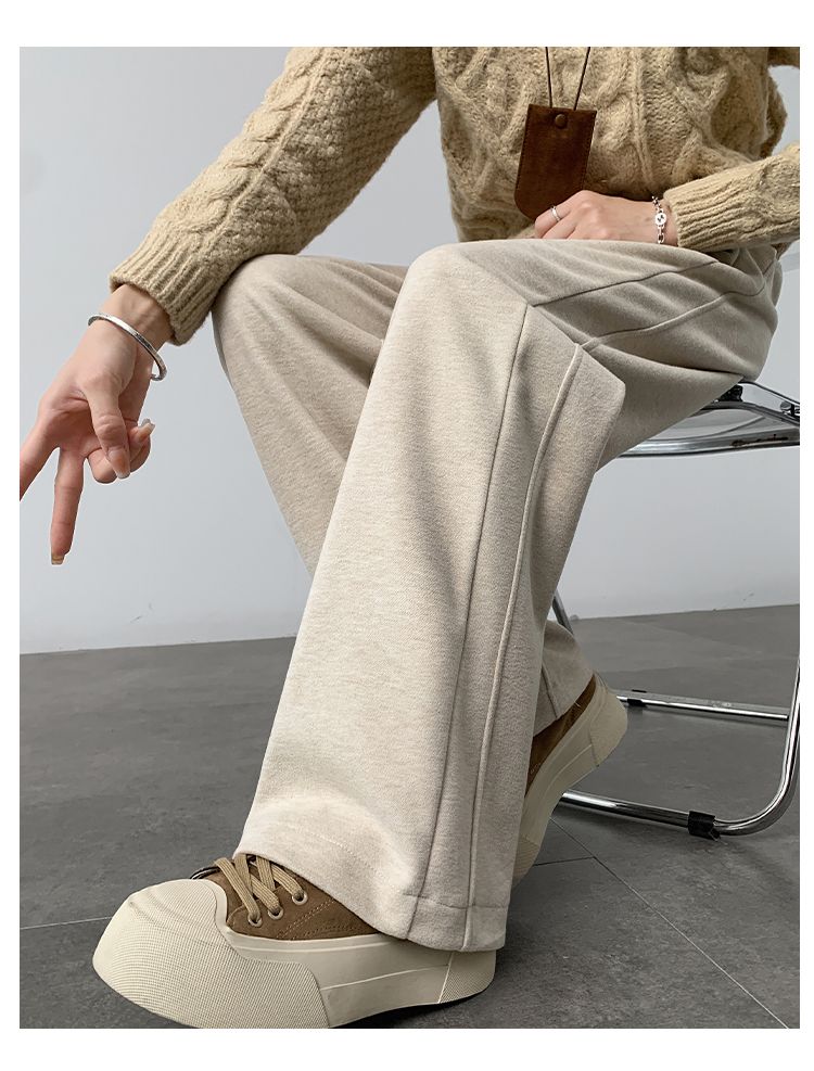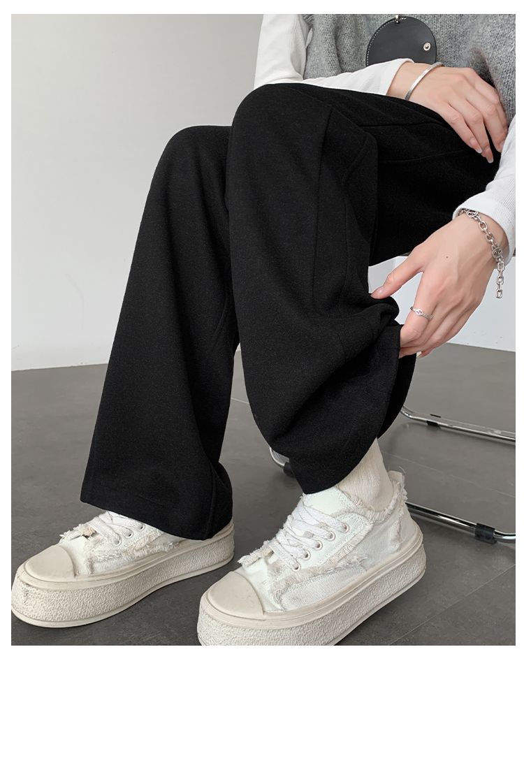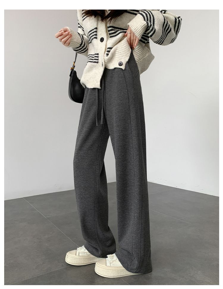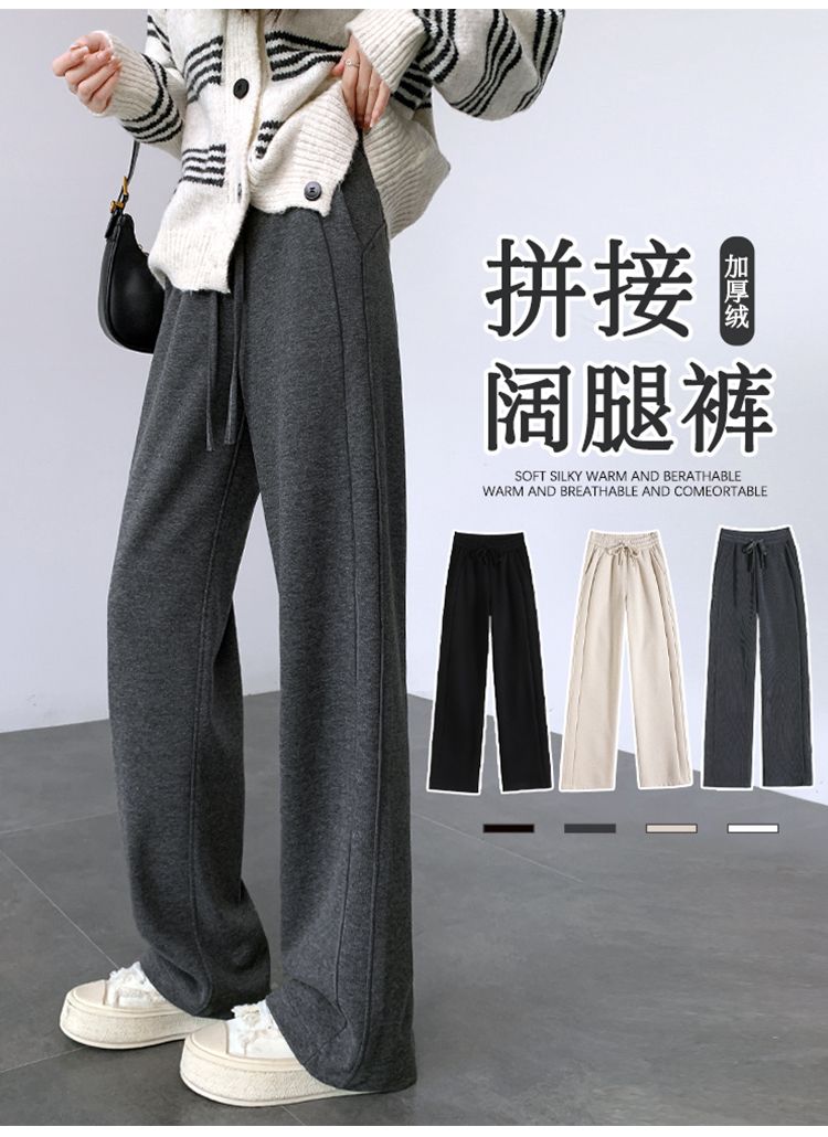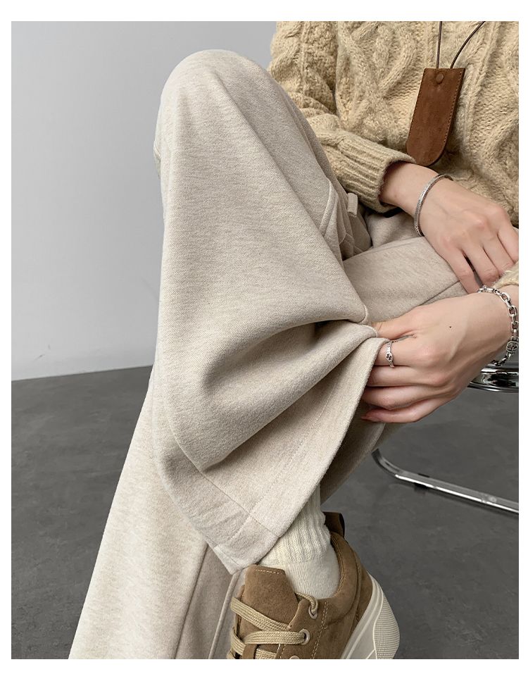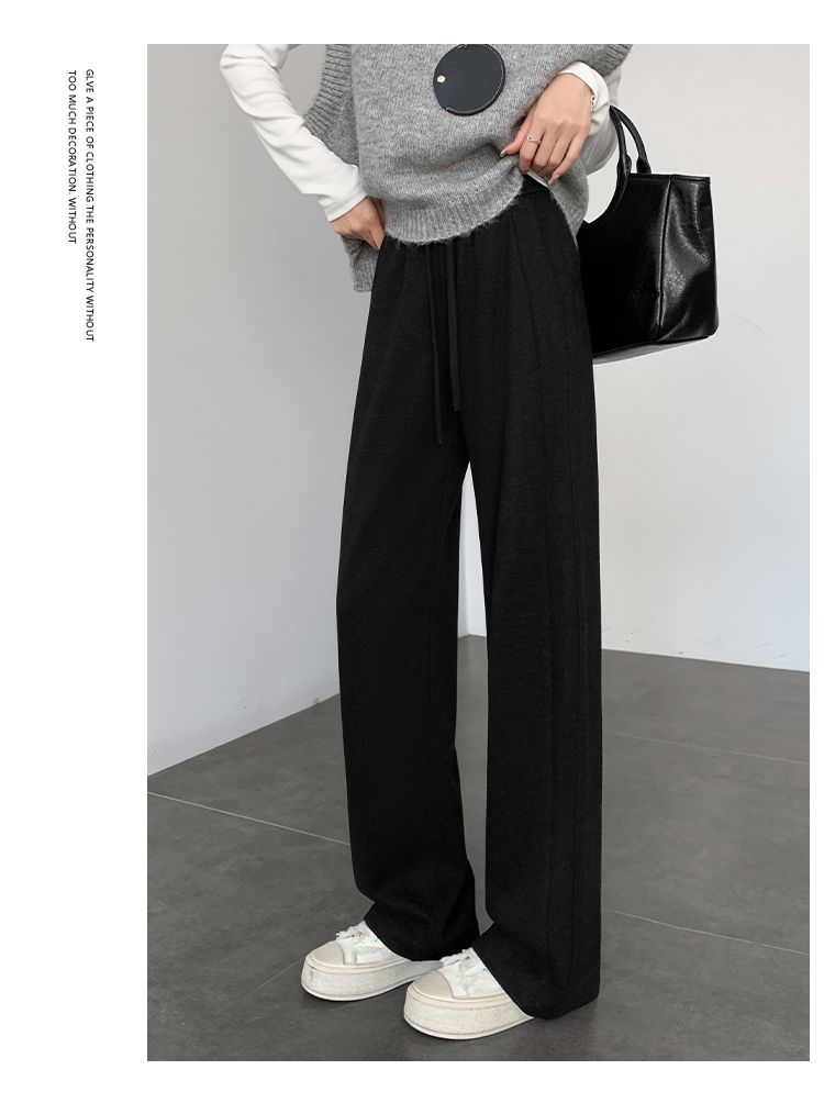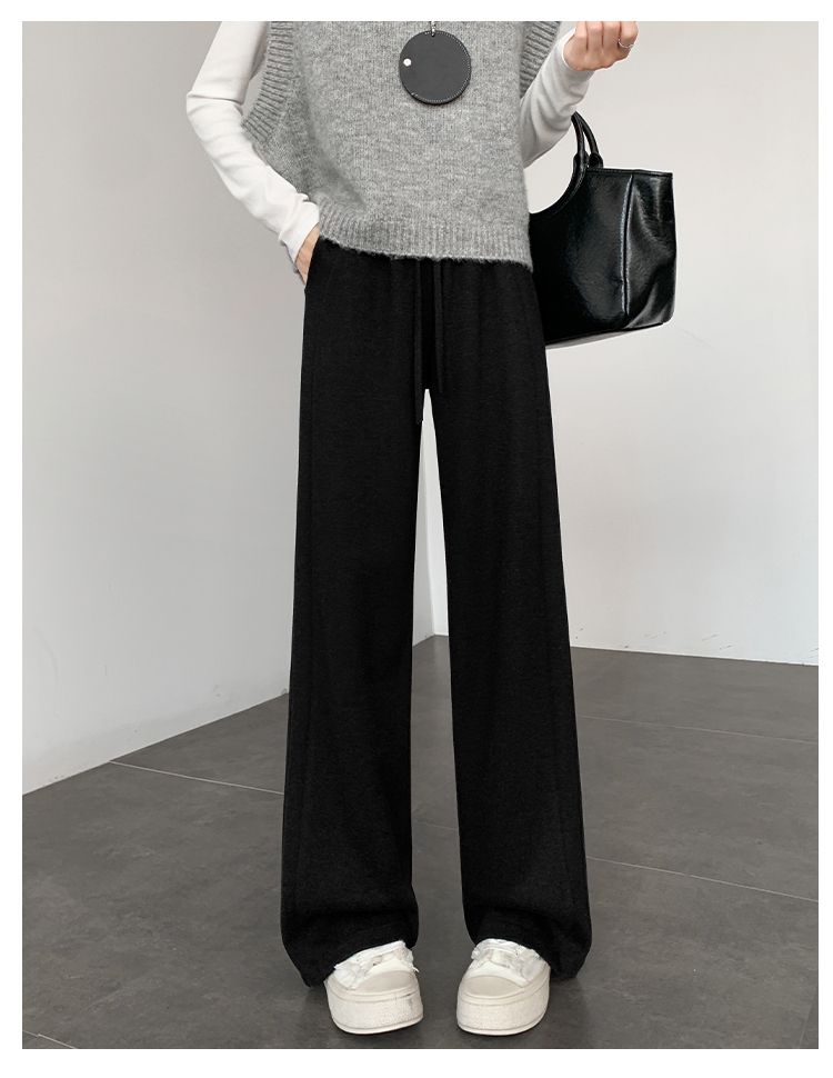 2025年春秋新款直筒裤子女小个子春秋窄版阔腿裤显瘦羊绒糯米裤
