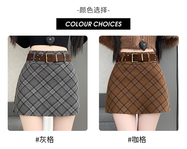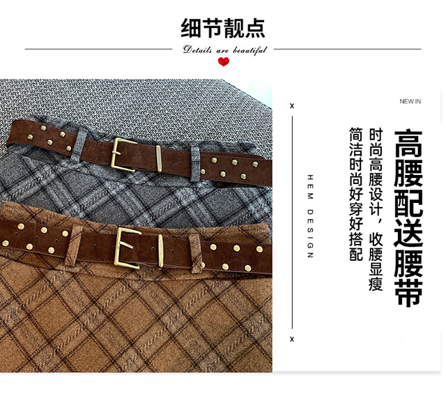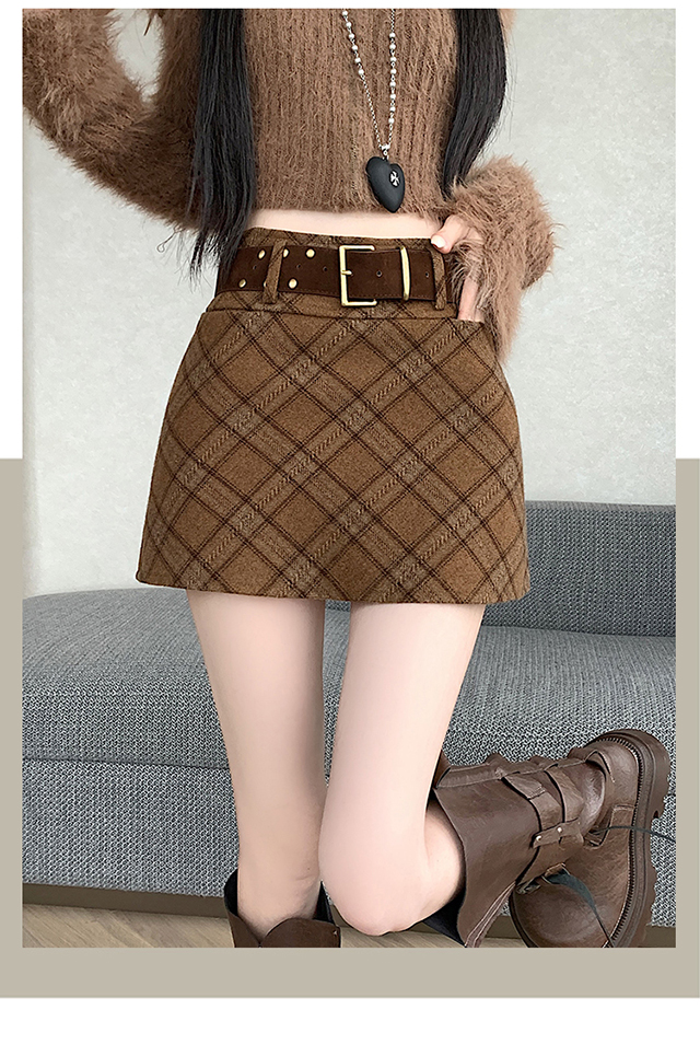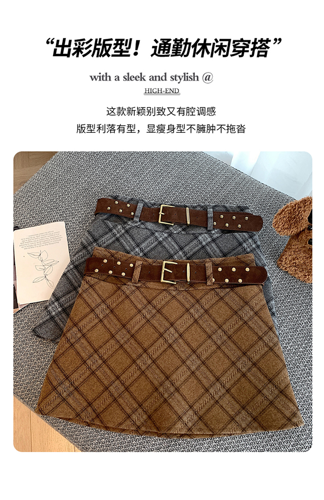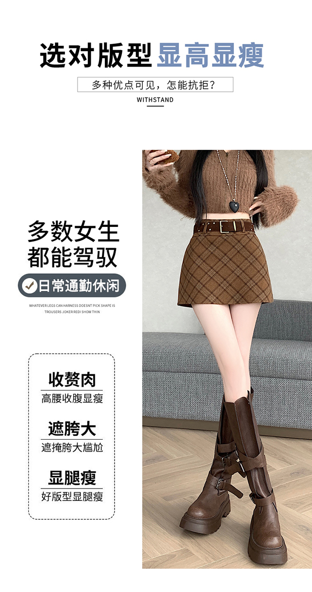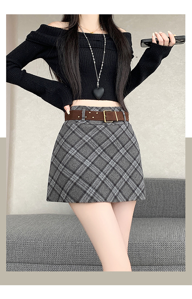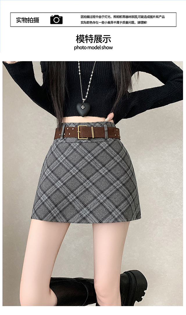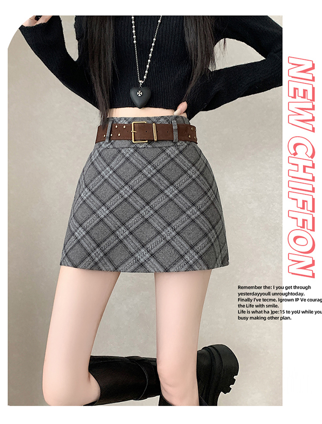 复古格纹毛呢半身裙女2025新款秋冬季小个子辣妹高腰a字包臀短裙