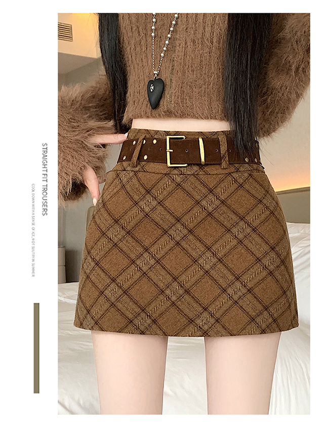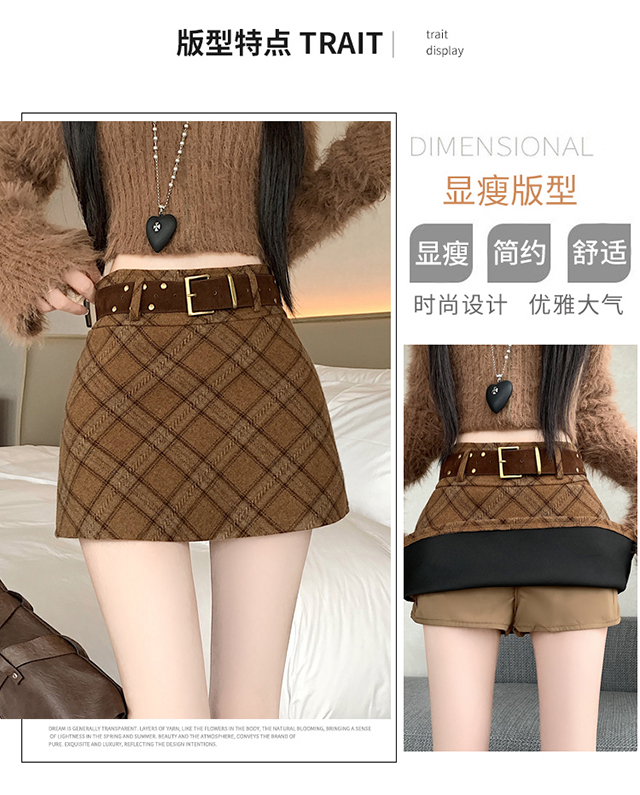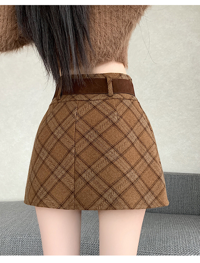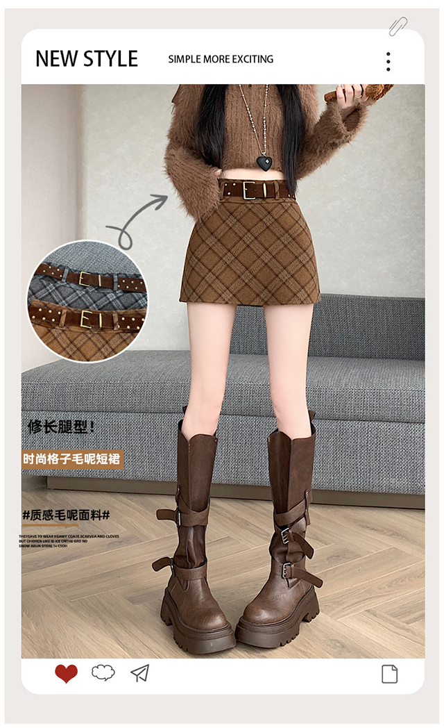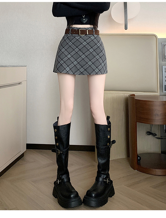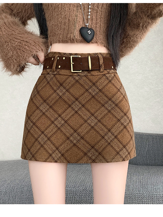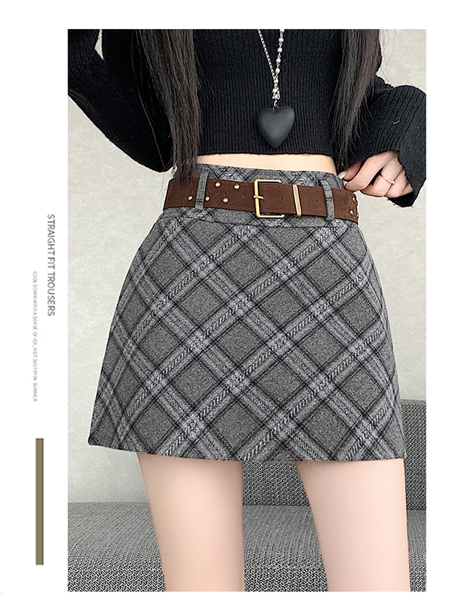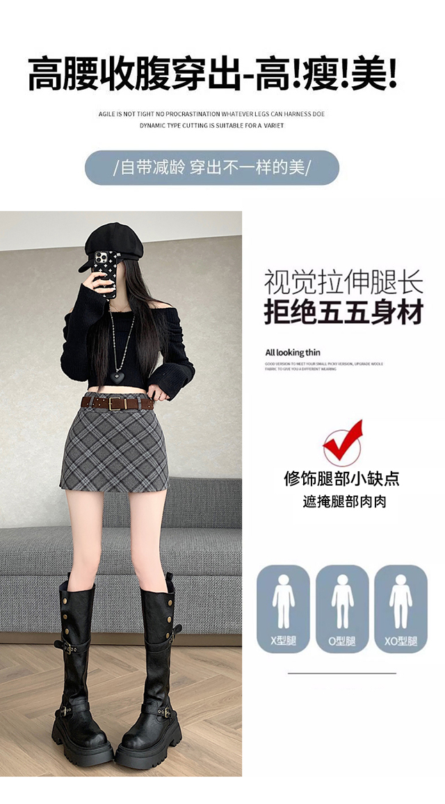 复古格纹毛呢半身裙女2025新款秋冬季小个子辣妹高腰a字包臀短裙