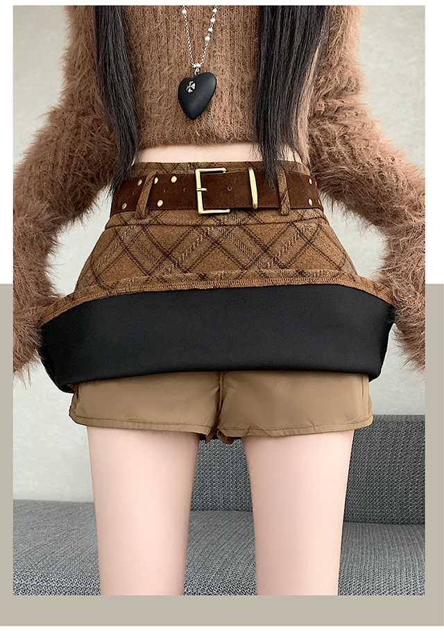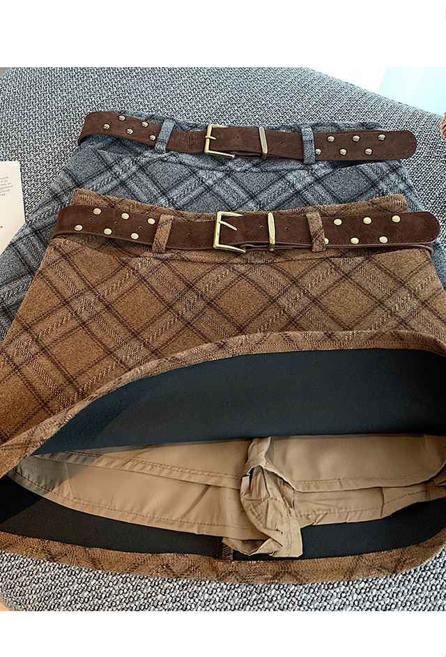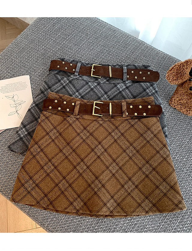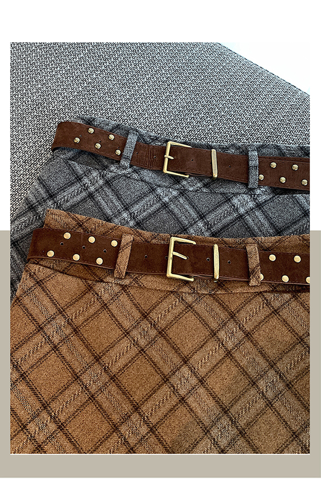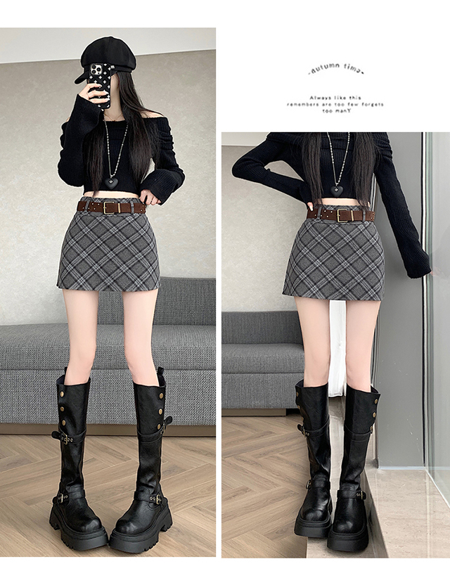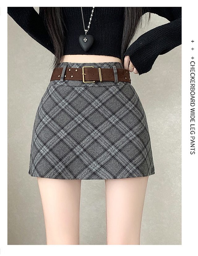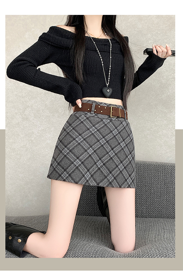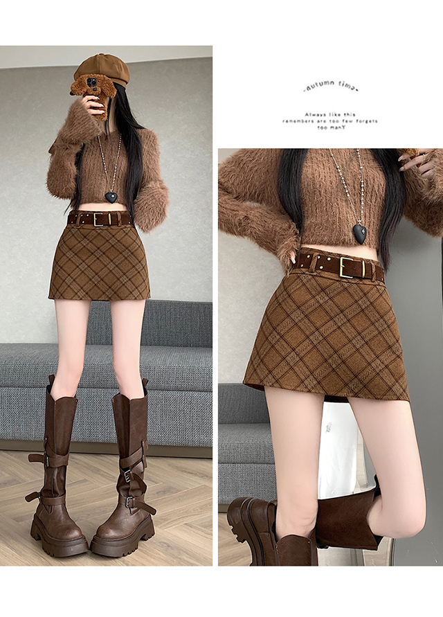 复古格纹毛呢半身裙女2025新款秋冬季小个子辣妹高腰a字包臀短裙