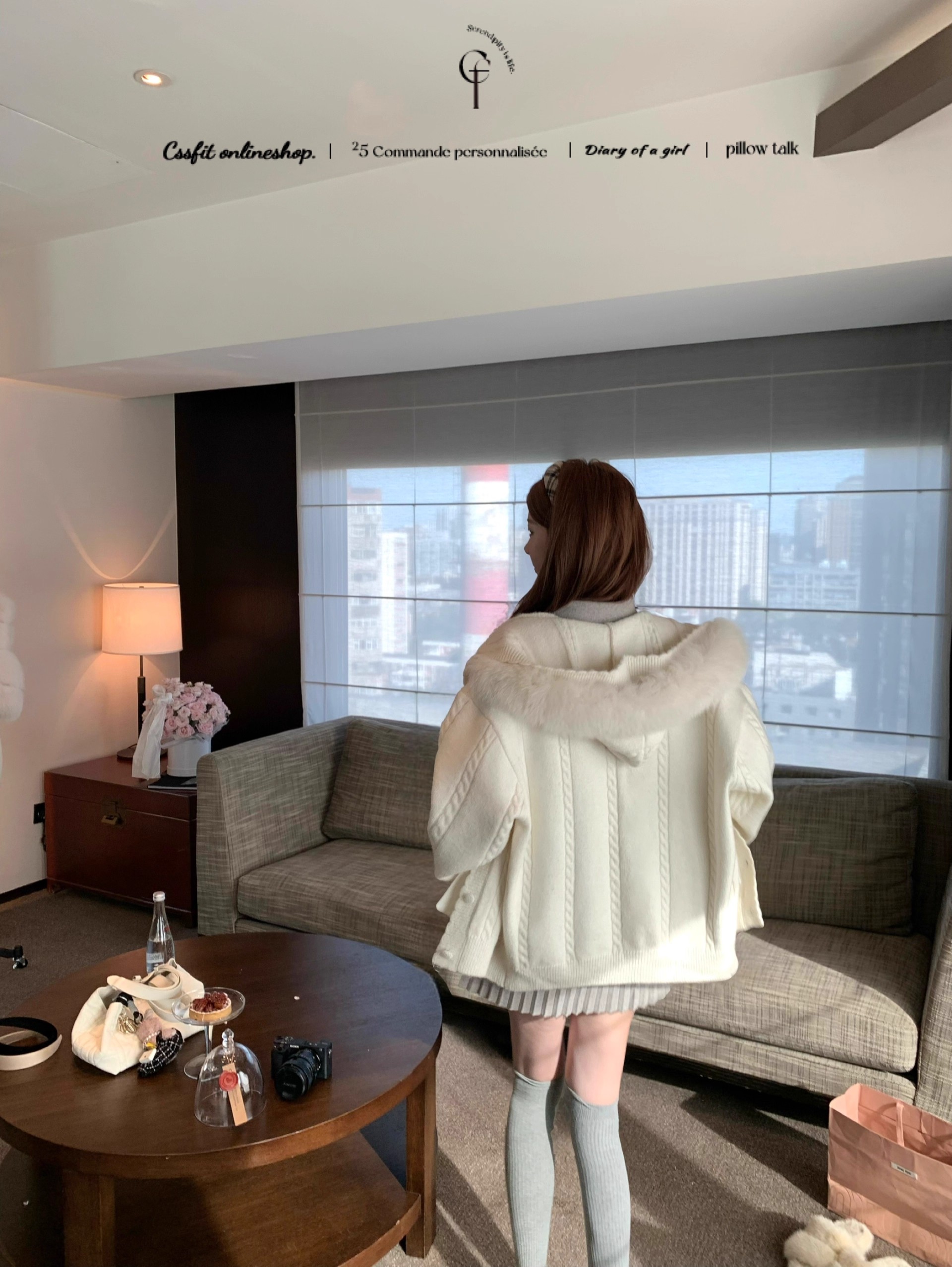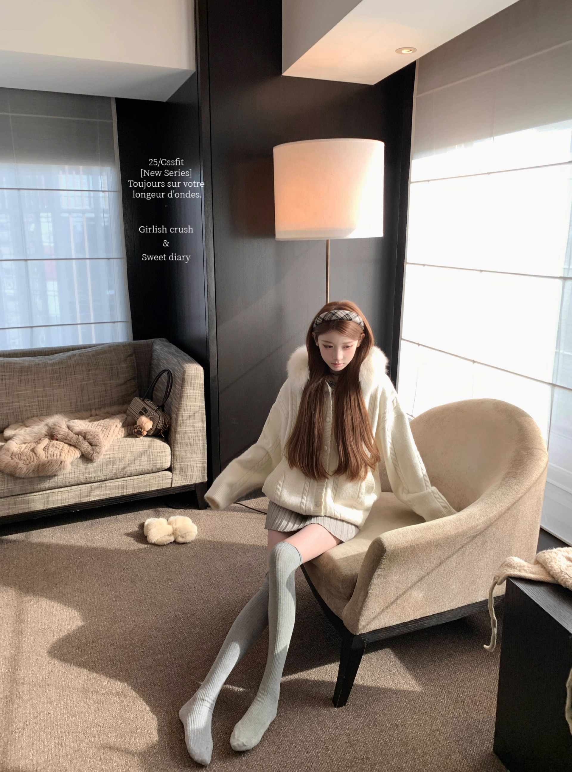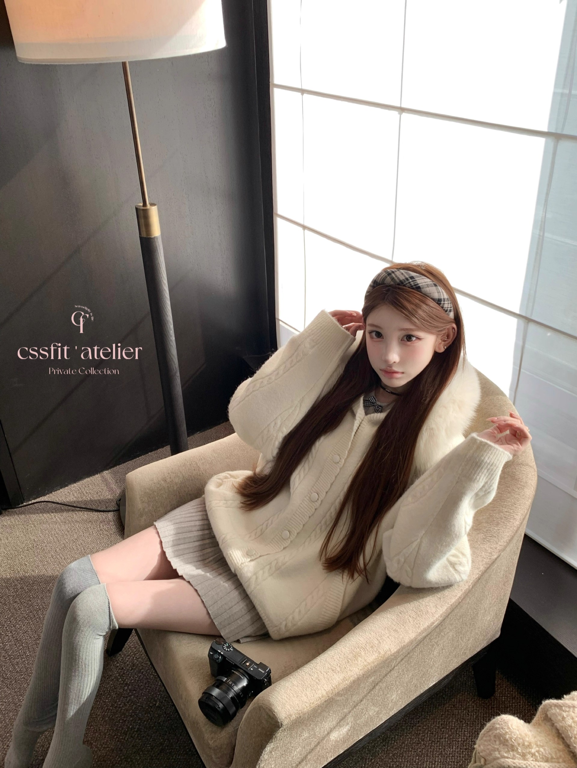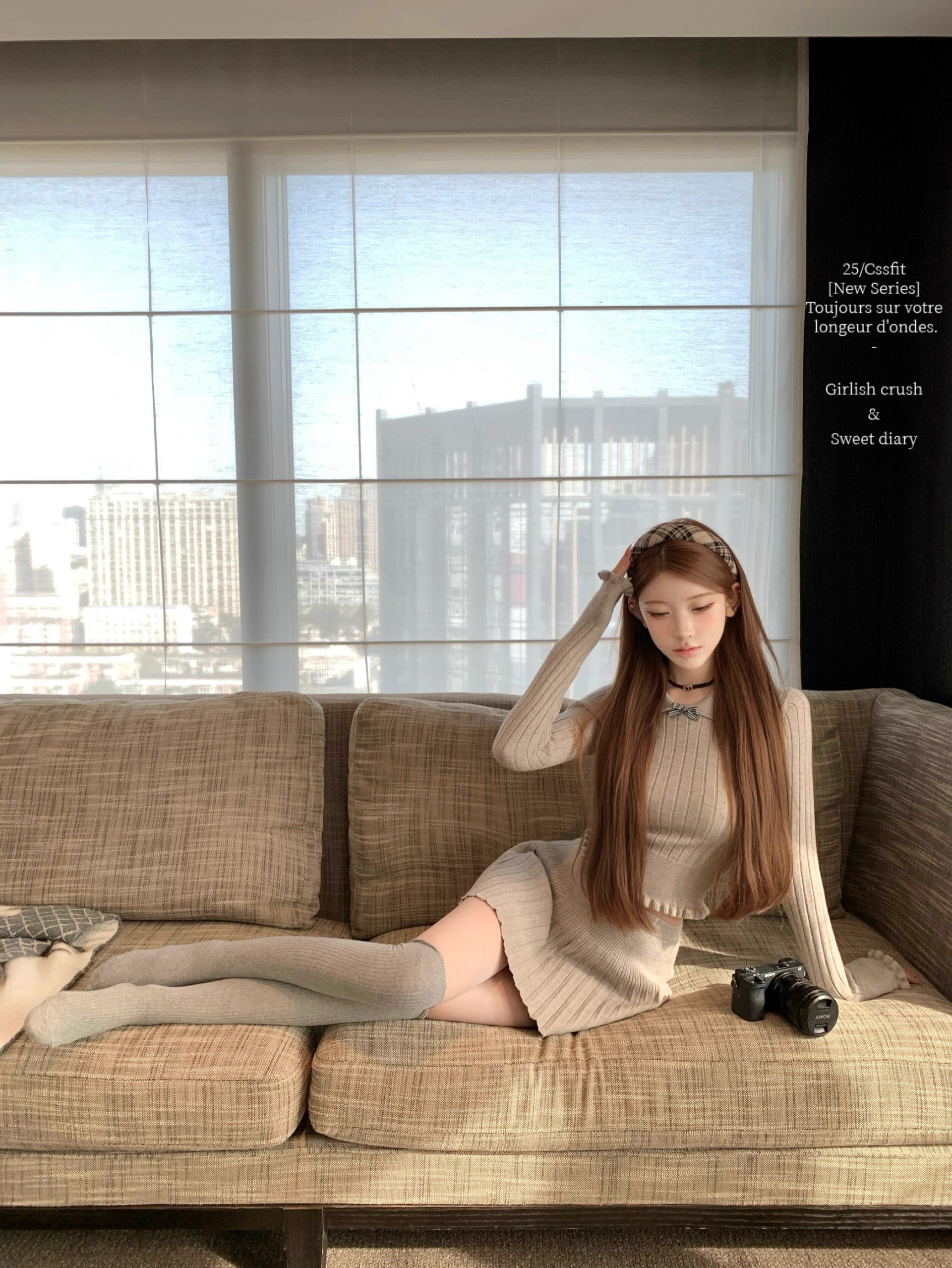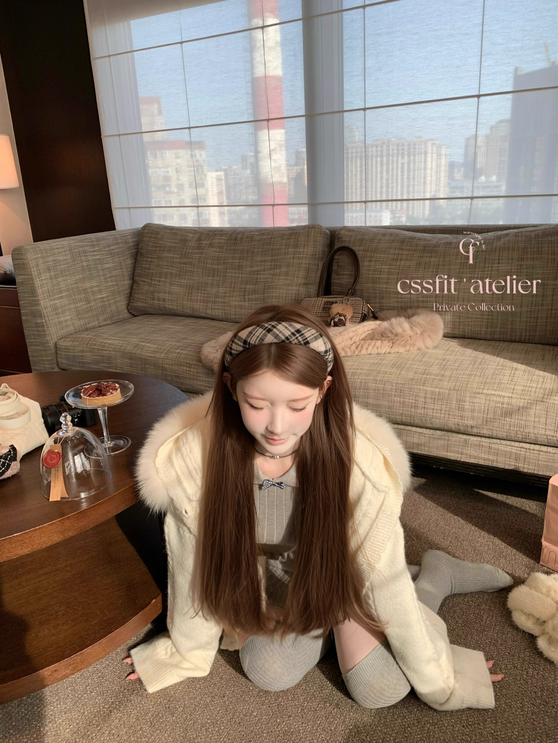 迟伞伞25/fw 灰色风信子 彼得潘领蝴蝶结针织上衣百褶半裙套装