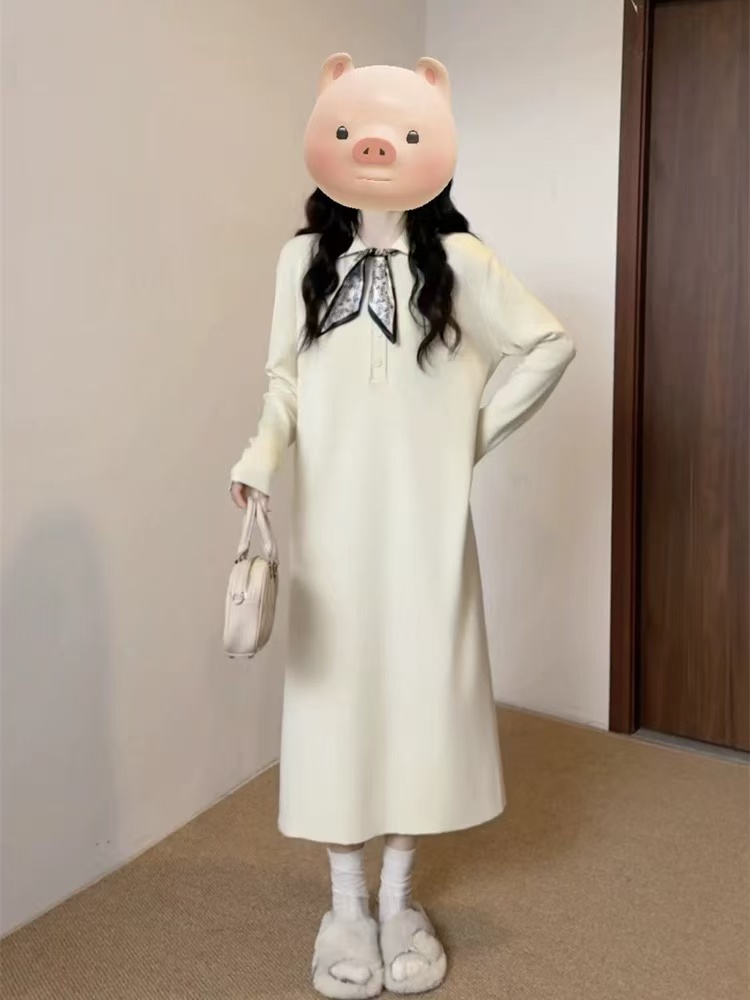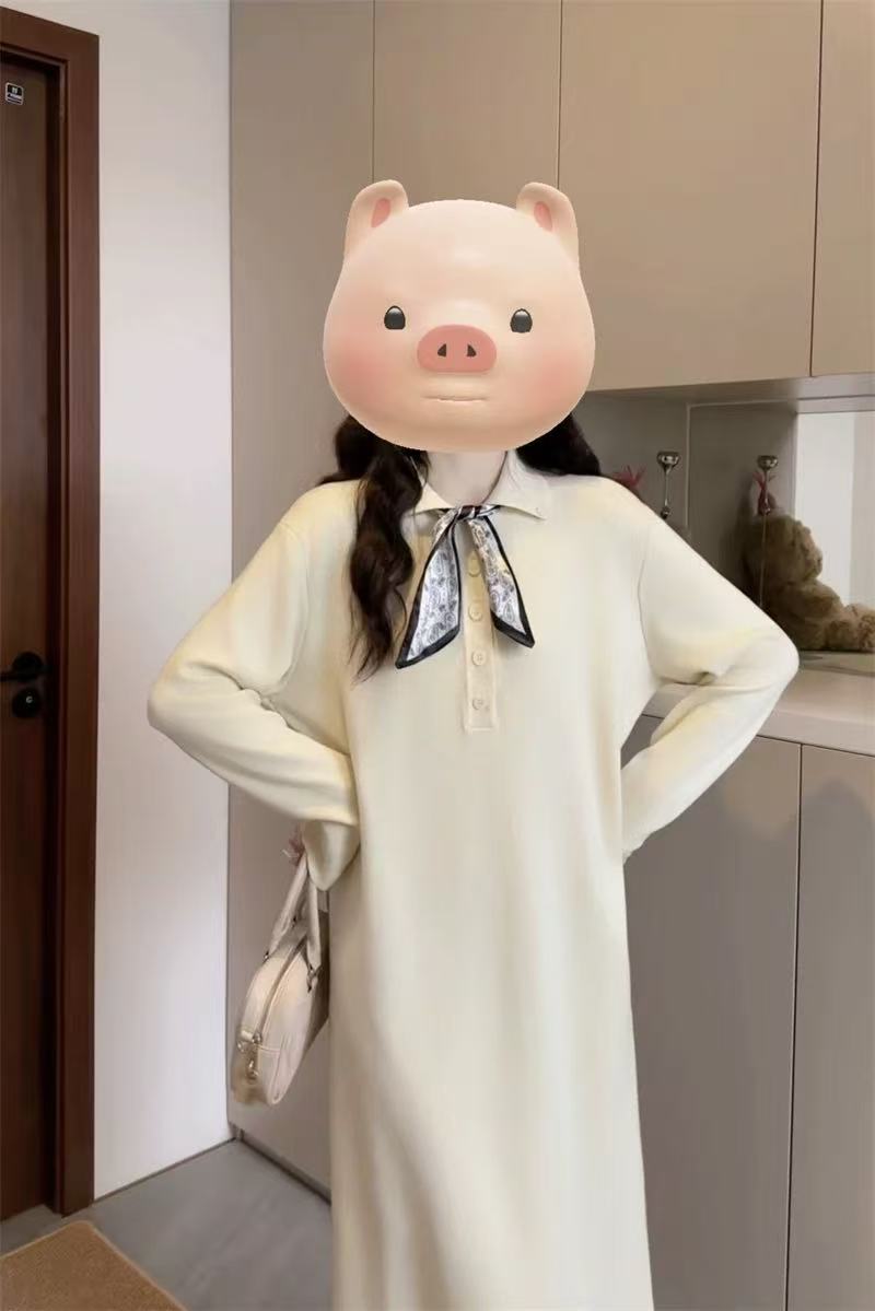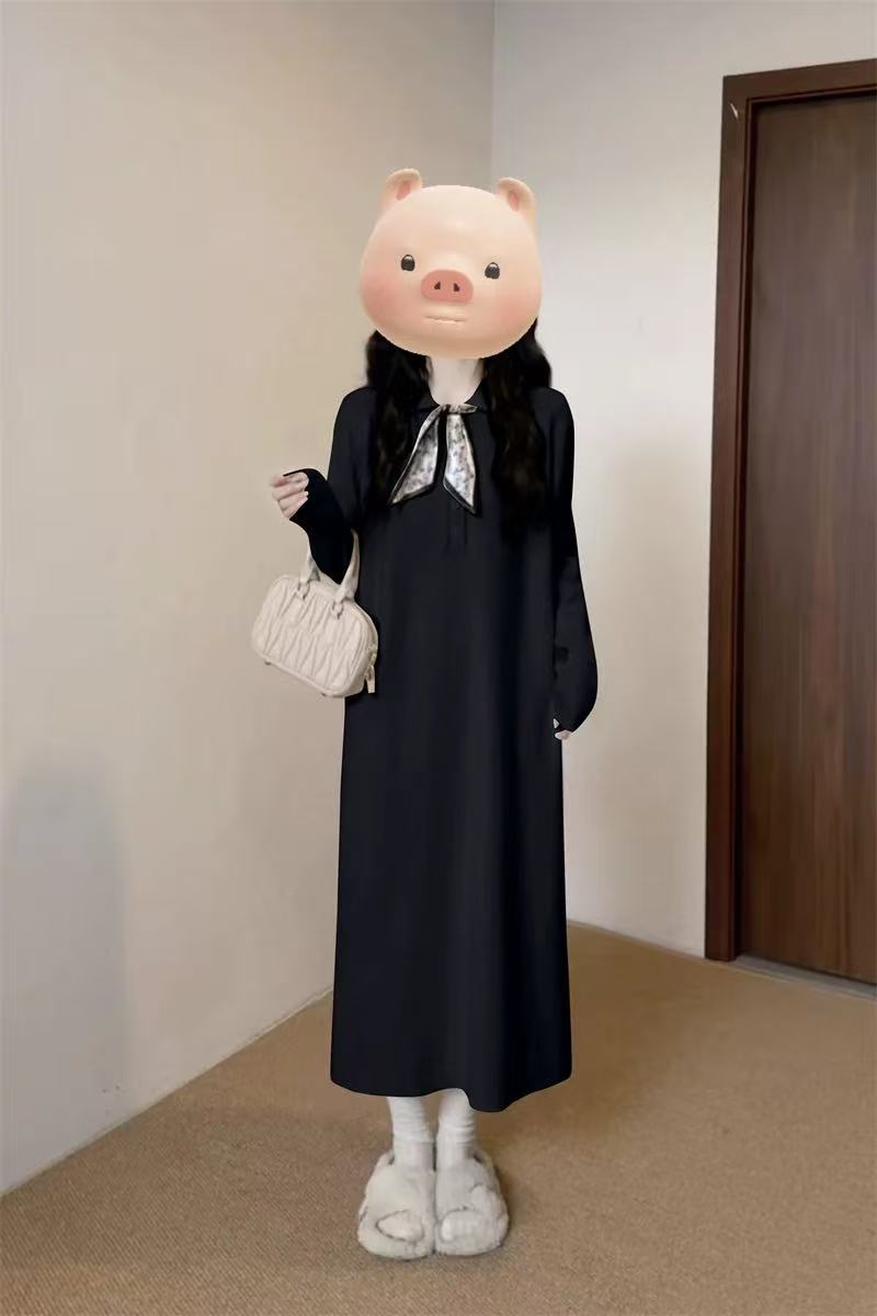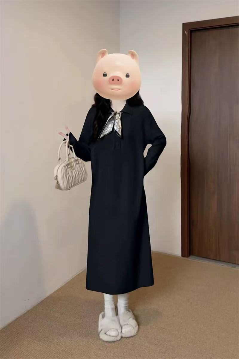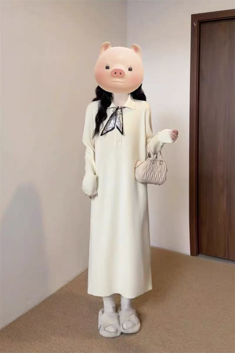 法式气质长袖针织连衣裙女2025新款秋冬高级感内搭显瘦配大衣长裙