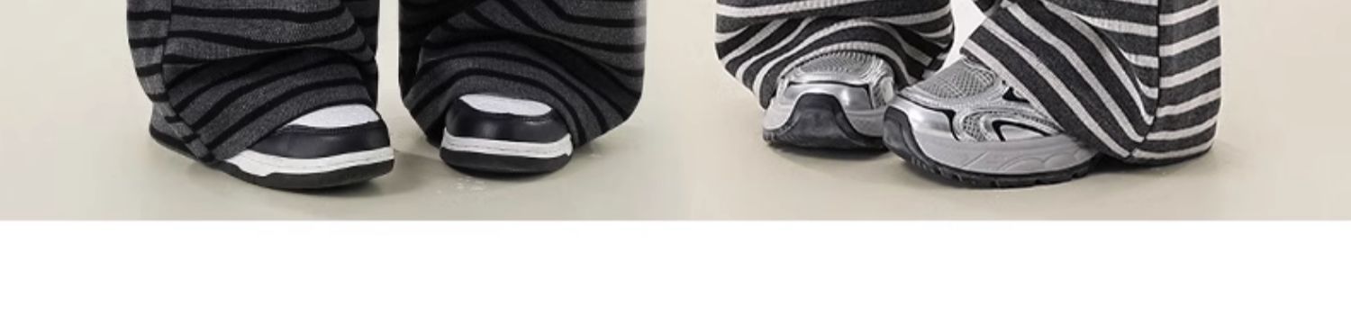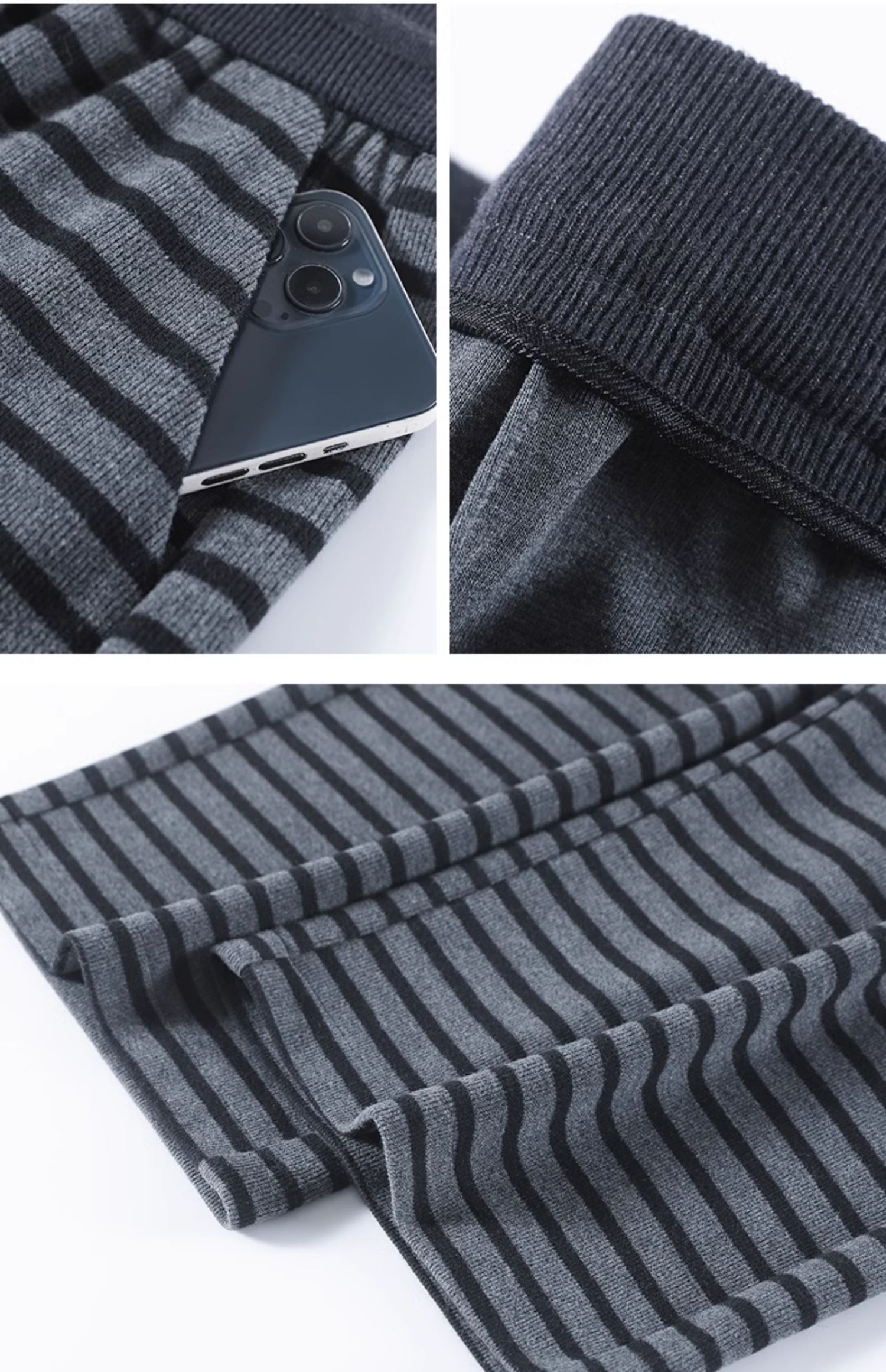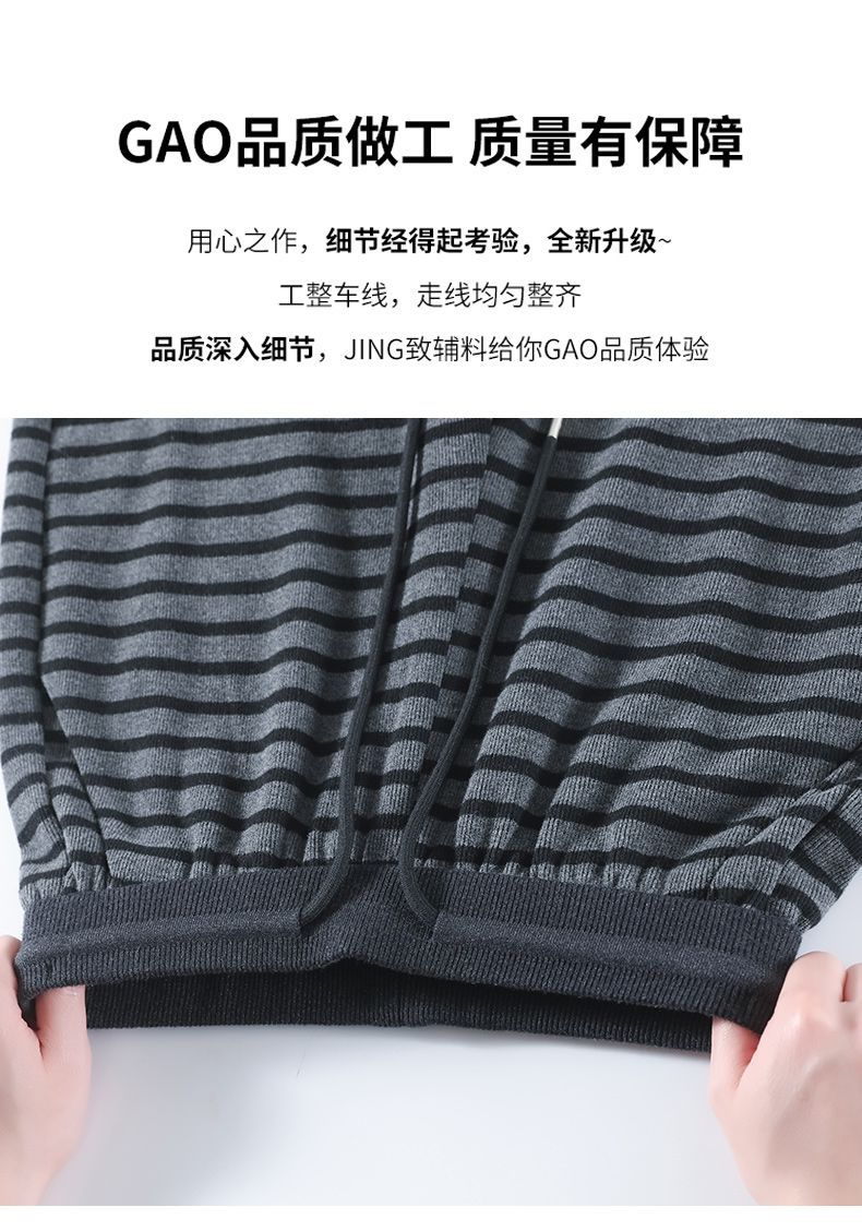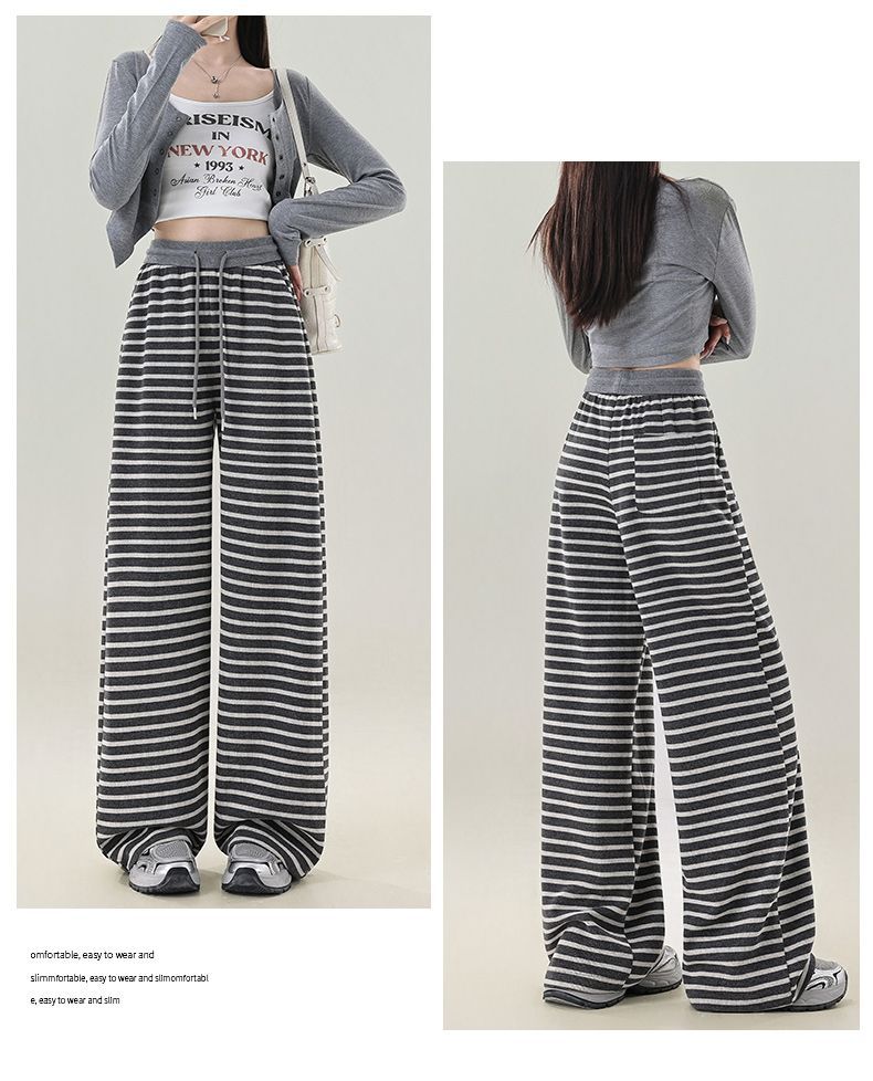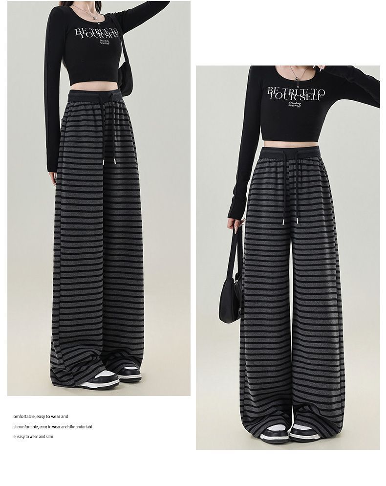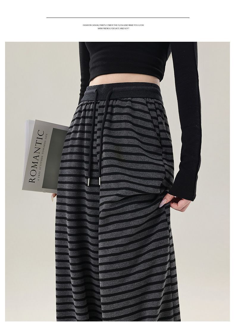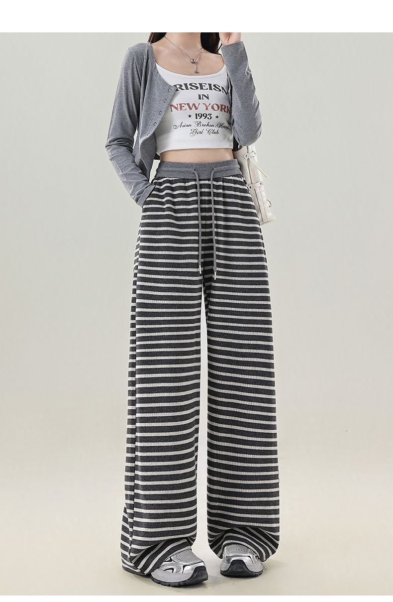秋冬加绒慵懒条纹针织阔腿裤女春秋2025新款高腰垂感直筒运动裤子