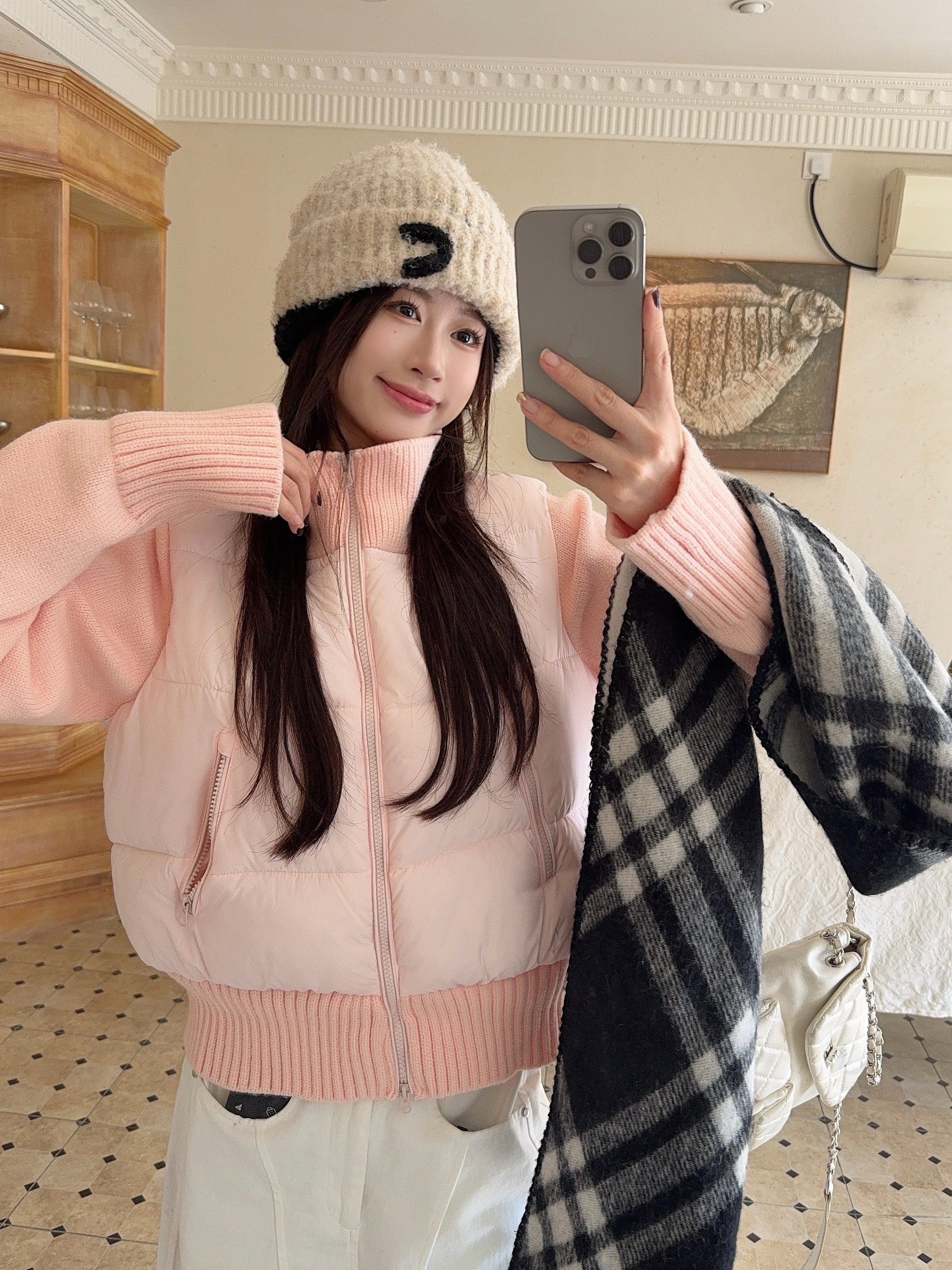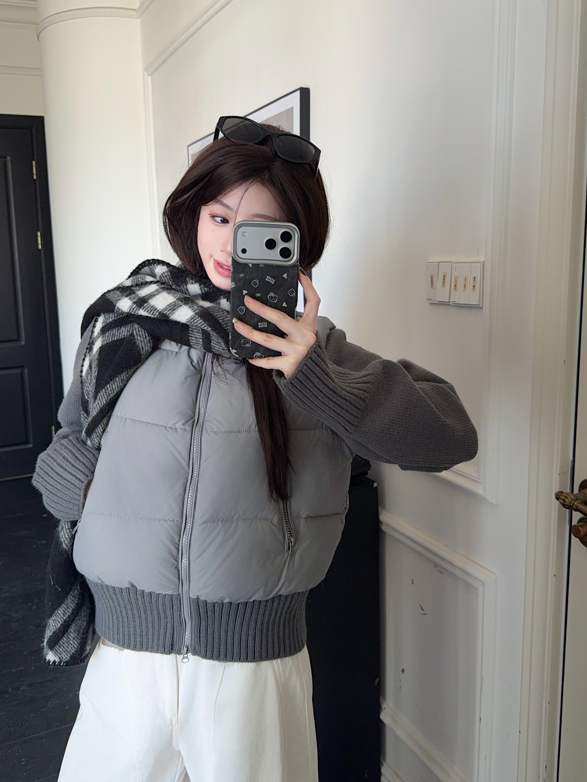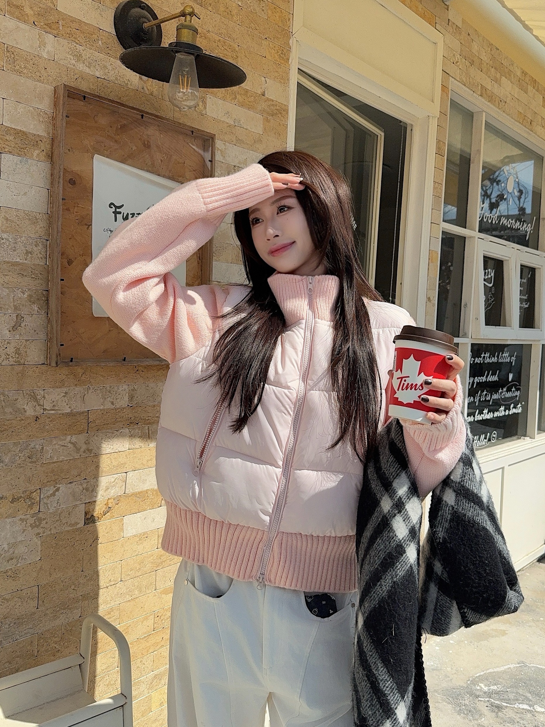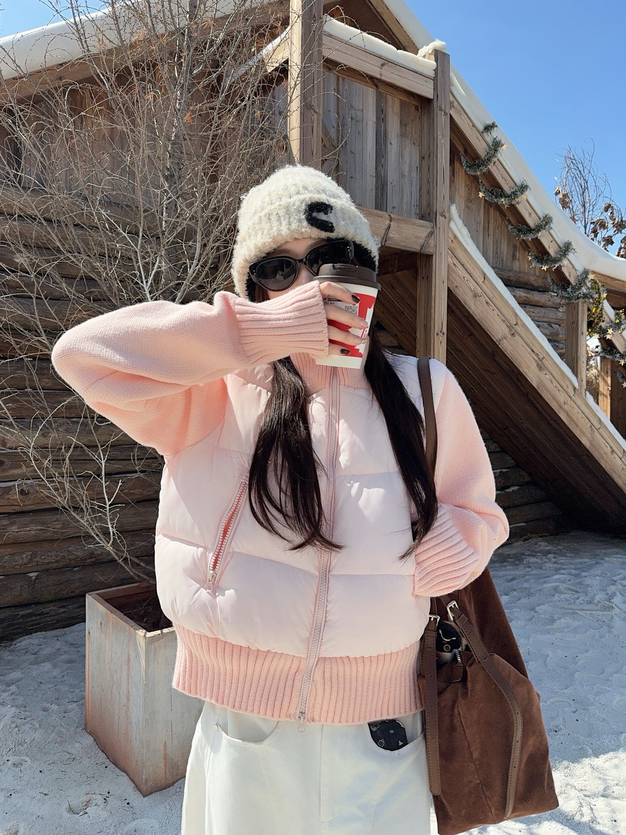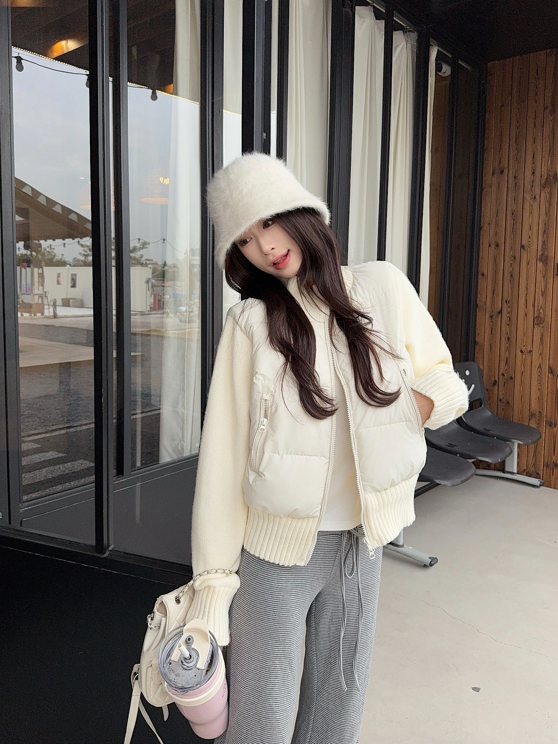 实拍 冬季新款羽绒棉服女短款小个子加厚针织袖拼接轻薄外套