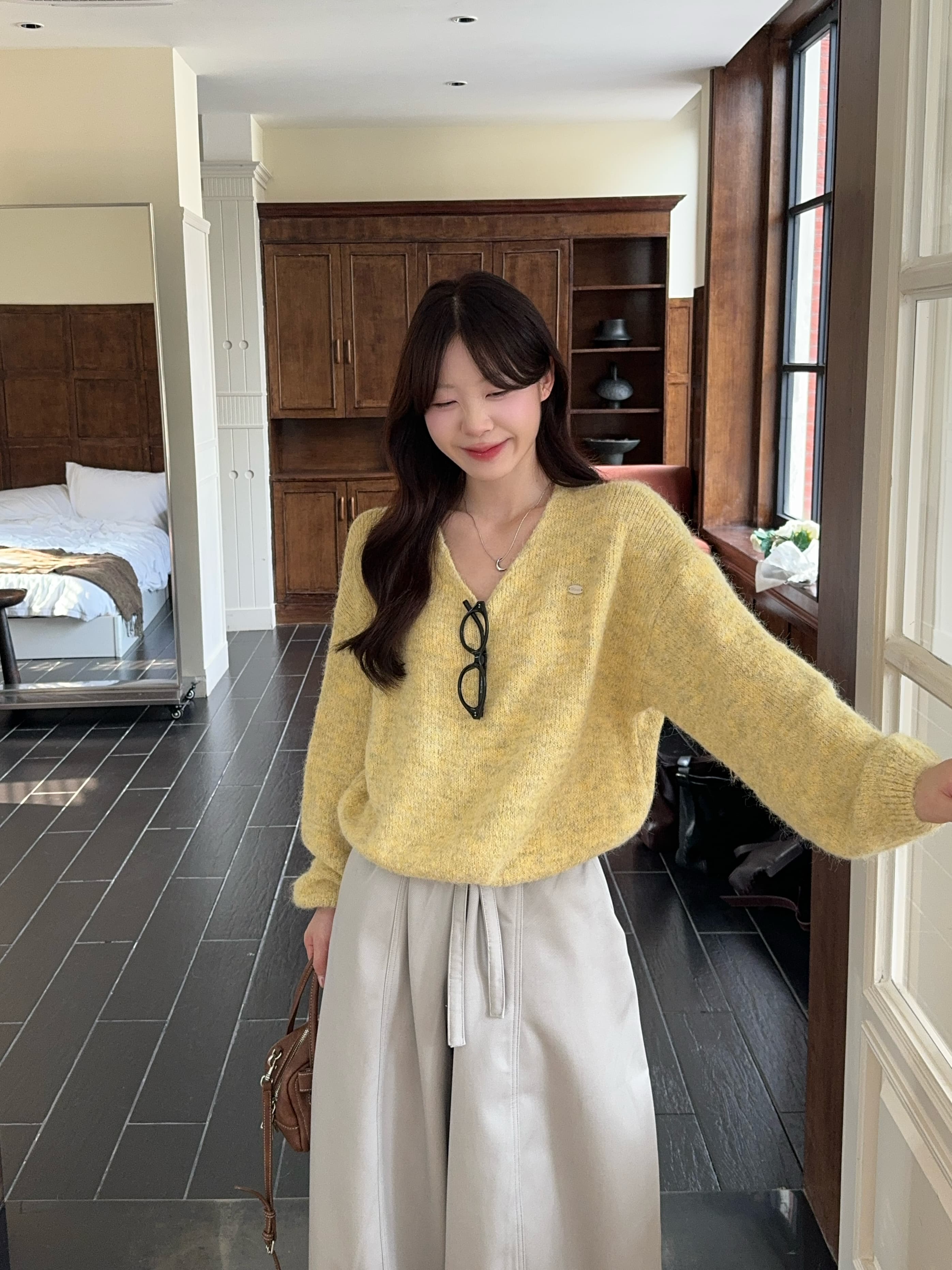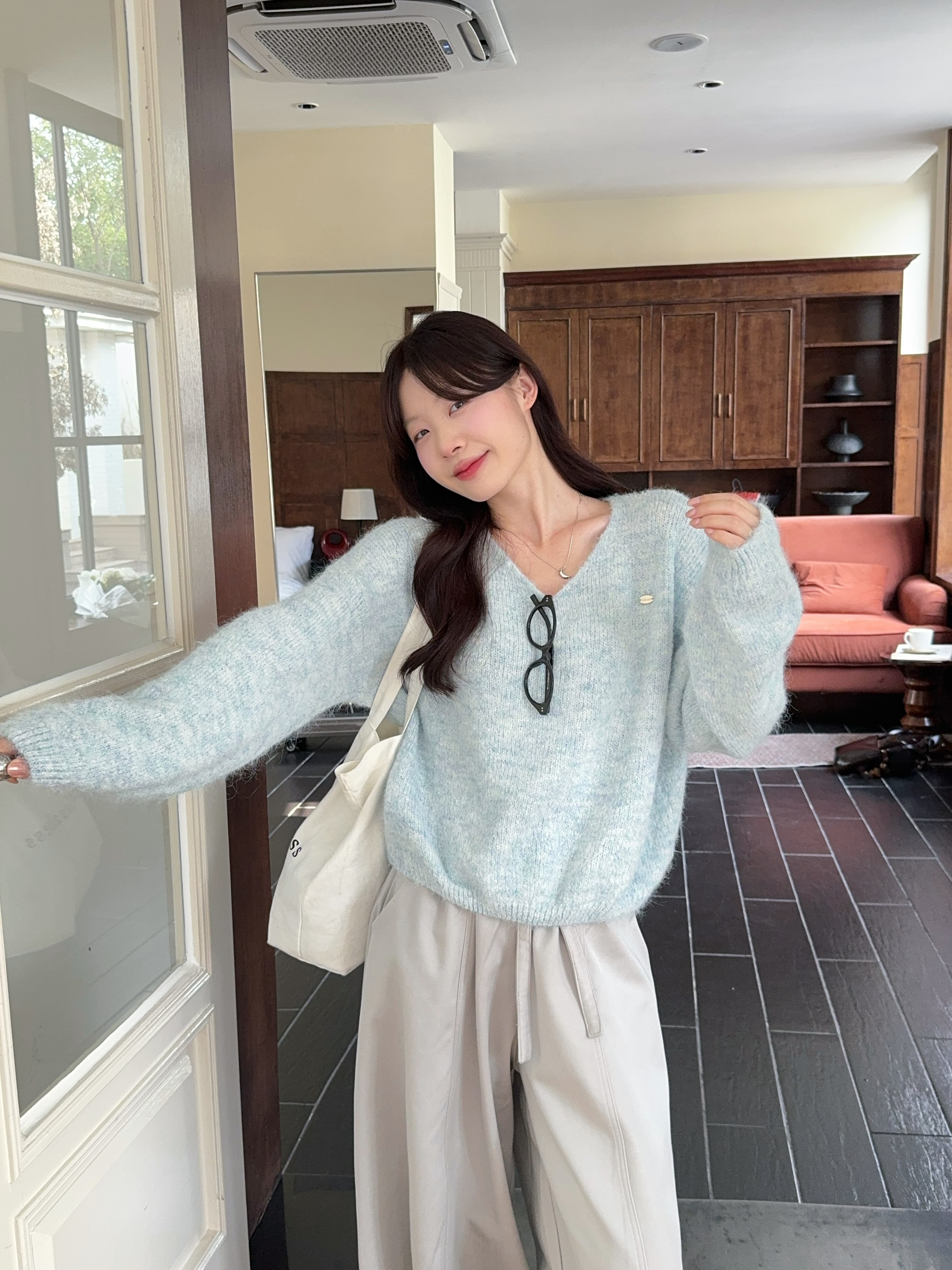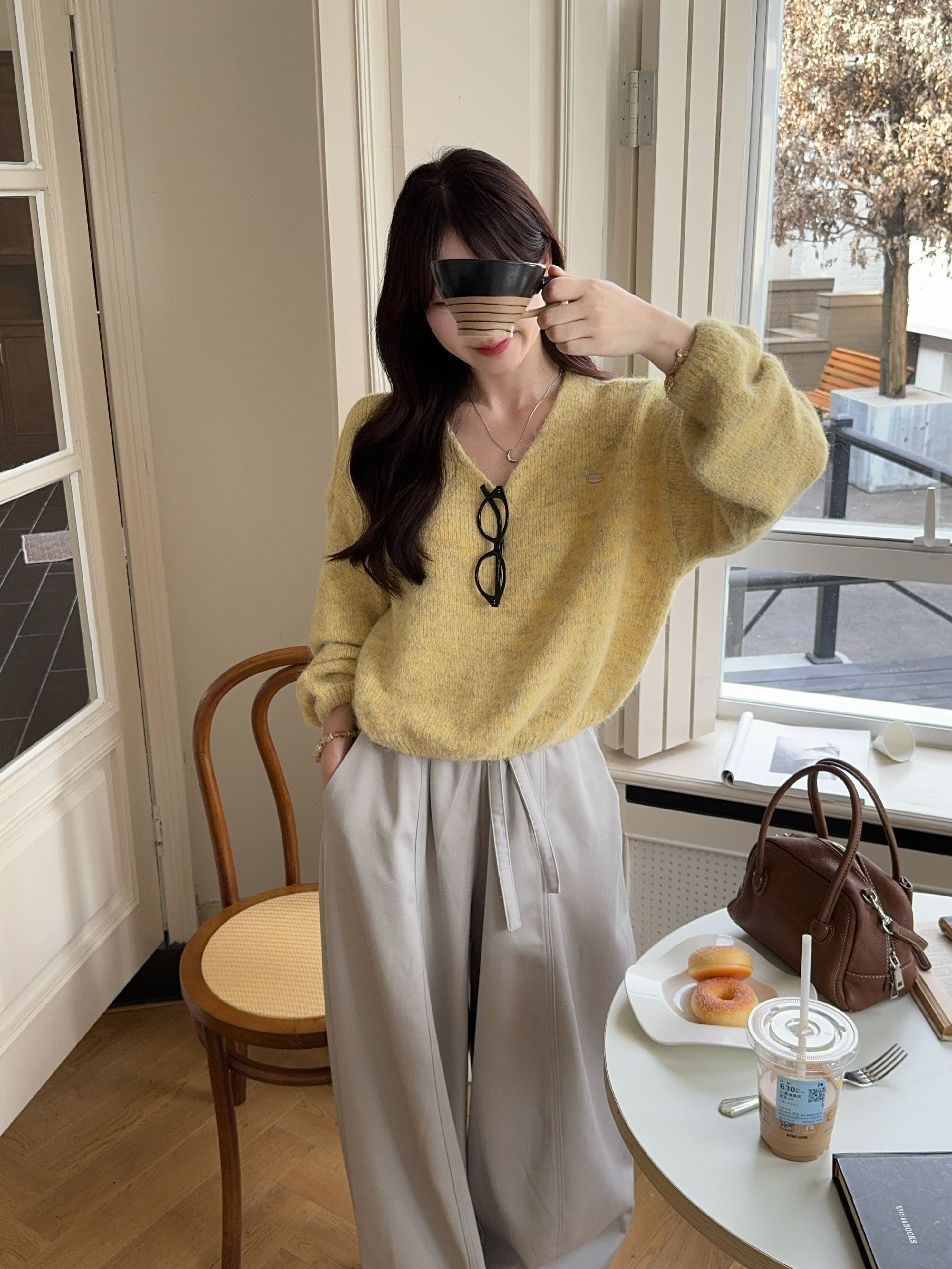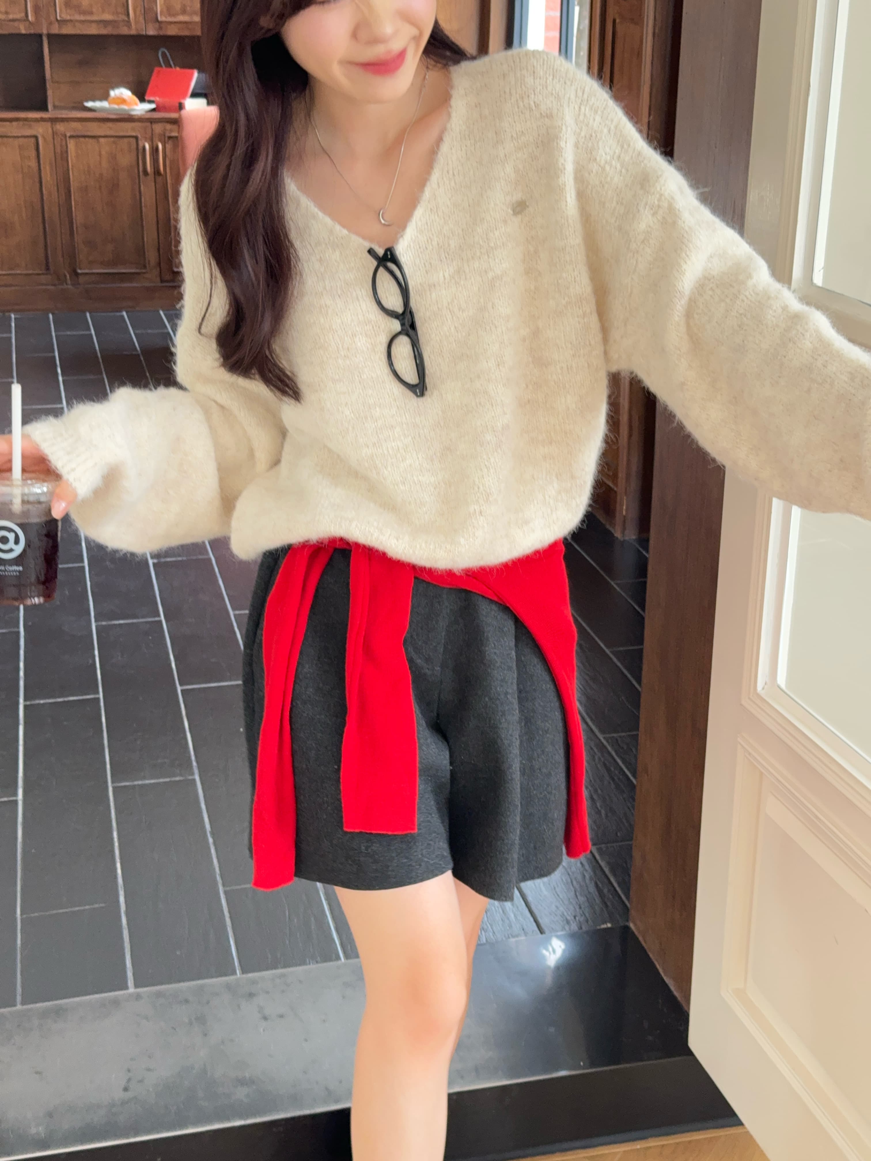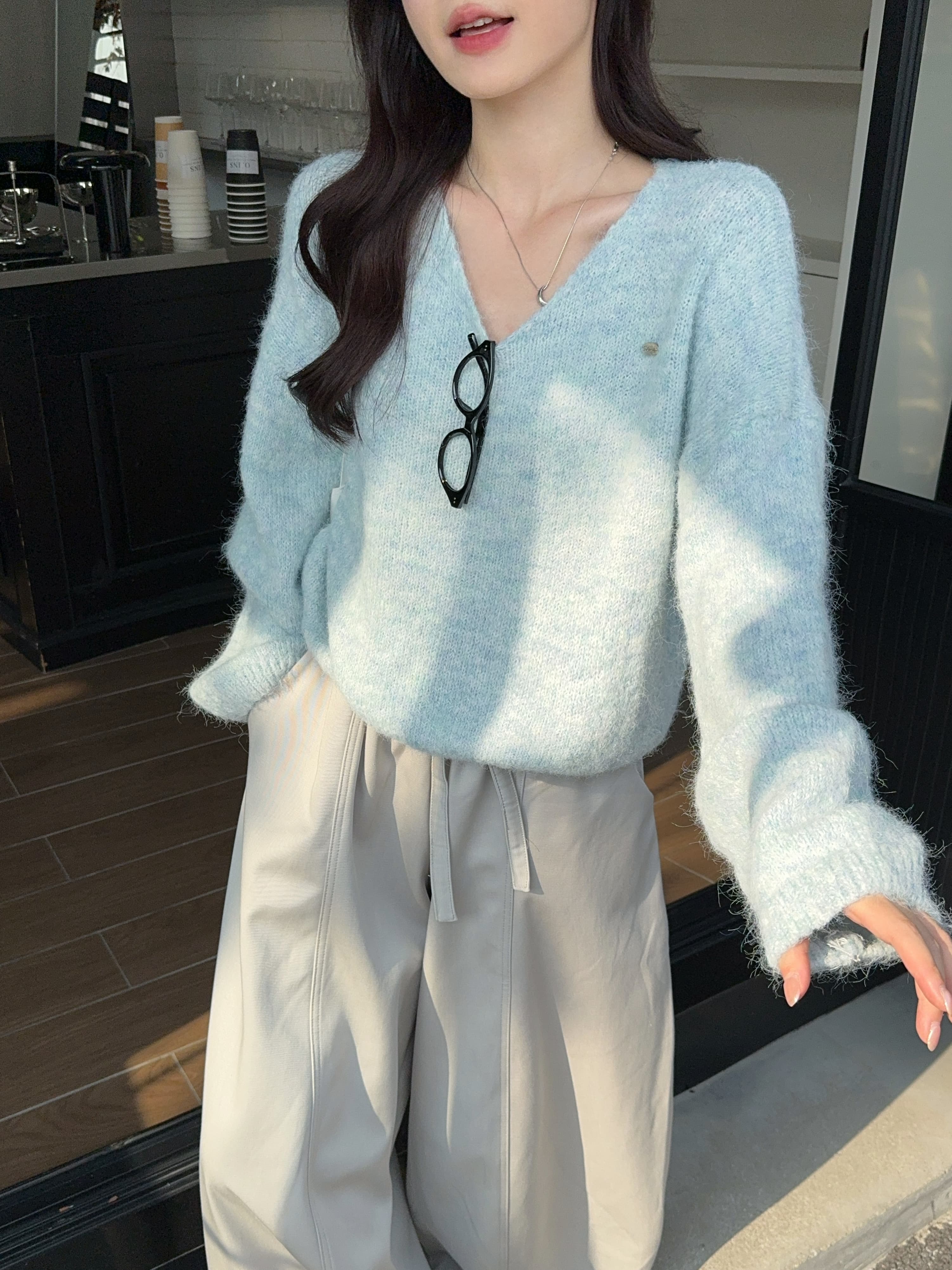 实拍 慵懒风软糯休闲V领毛衣