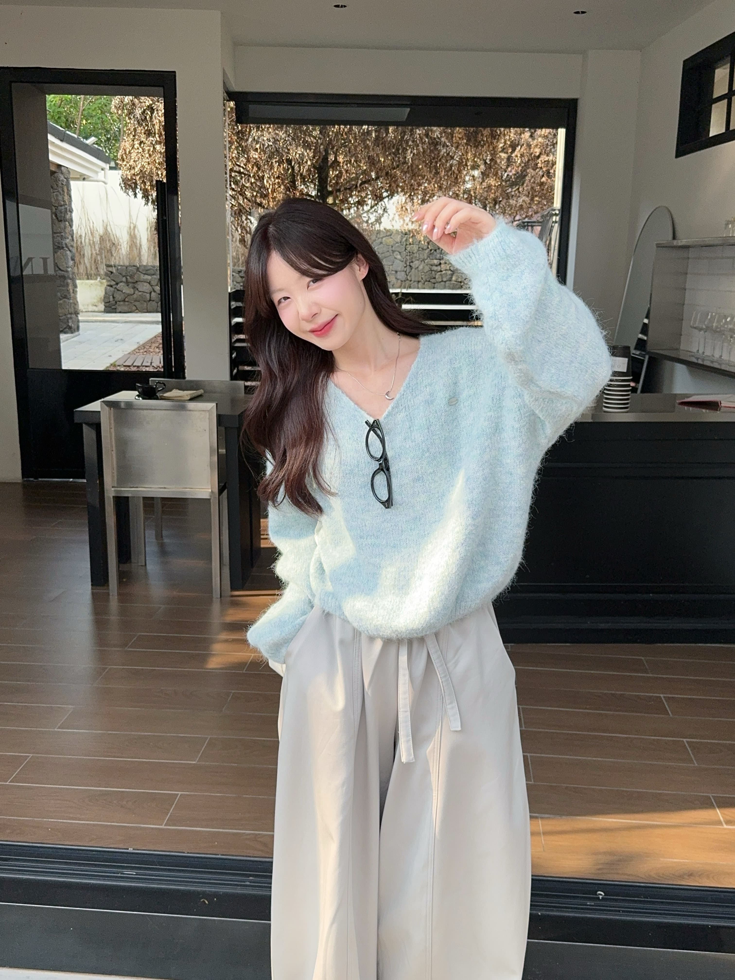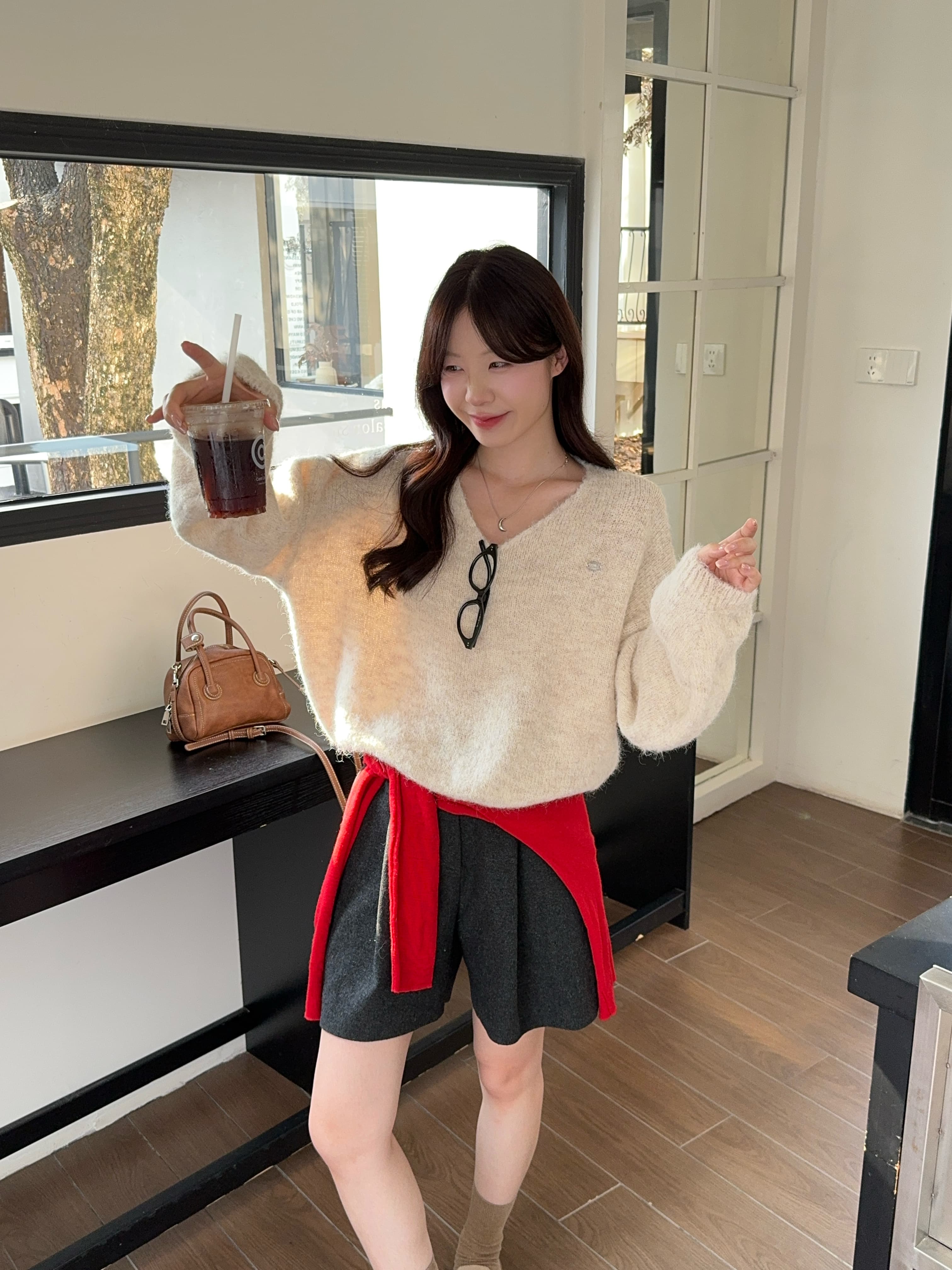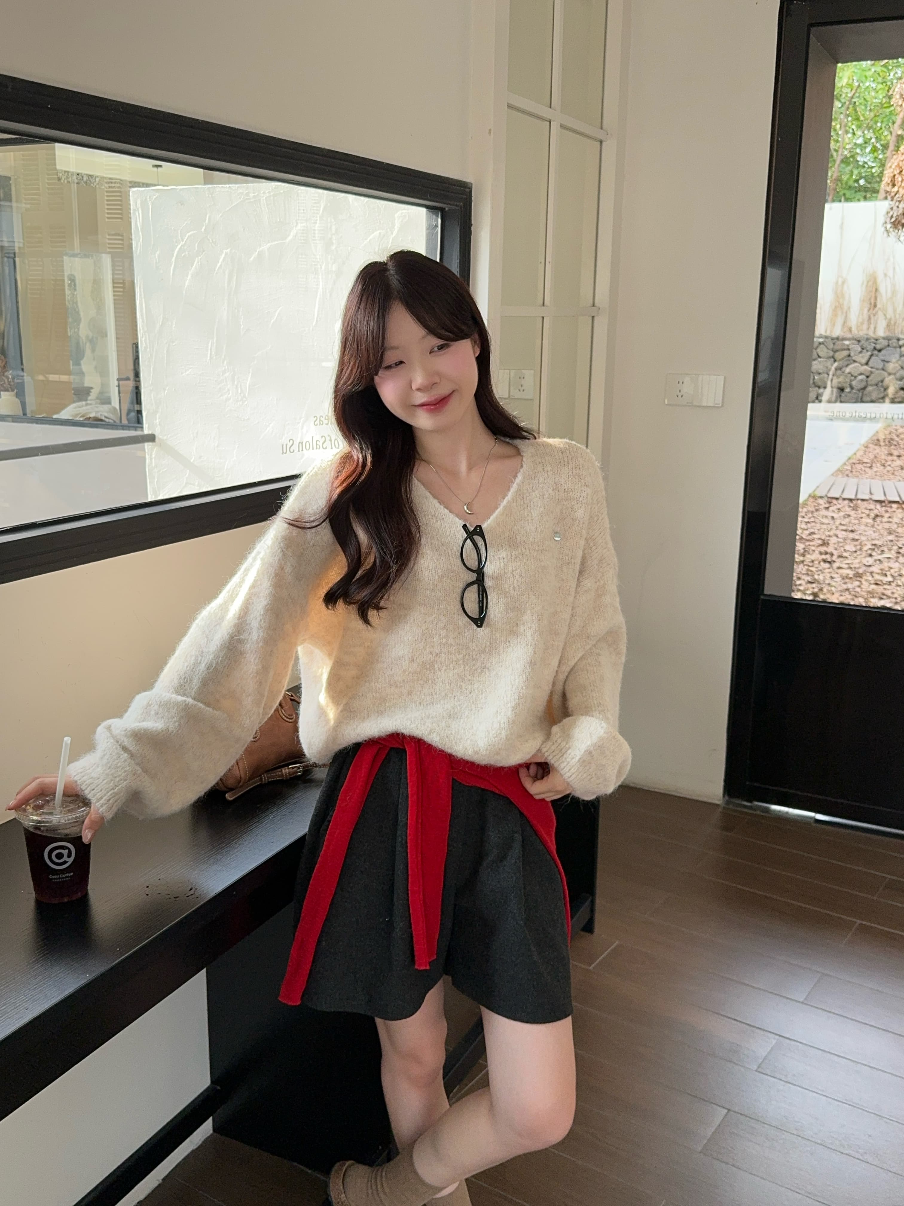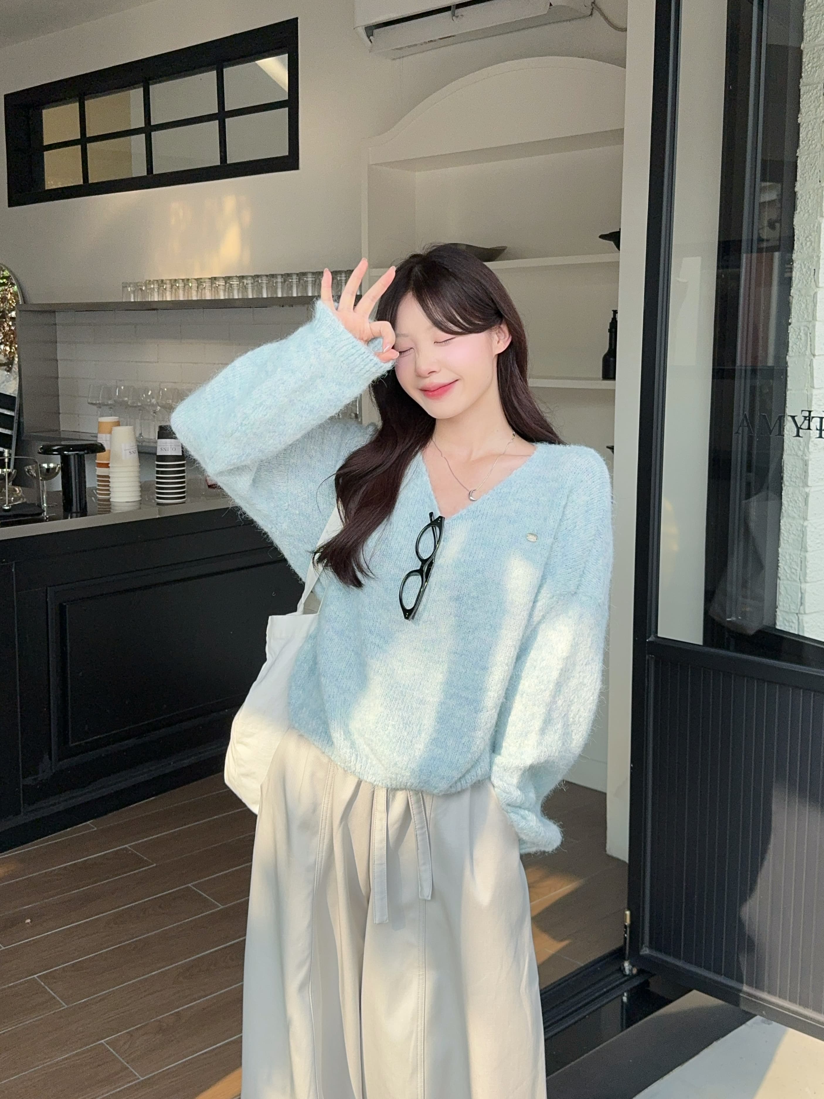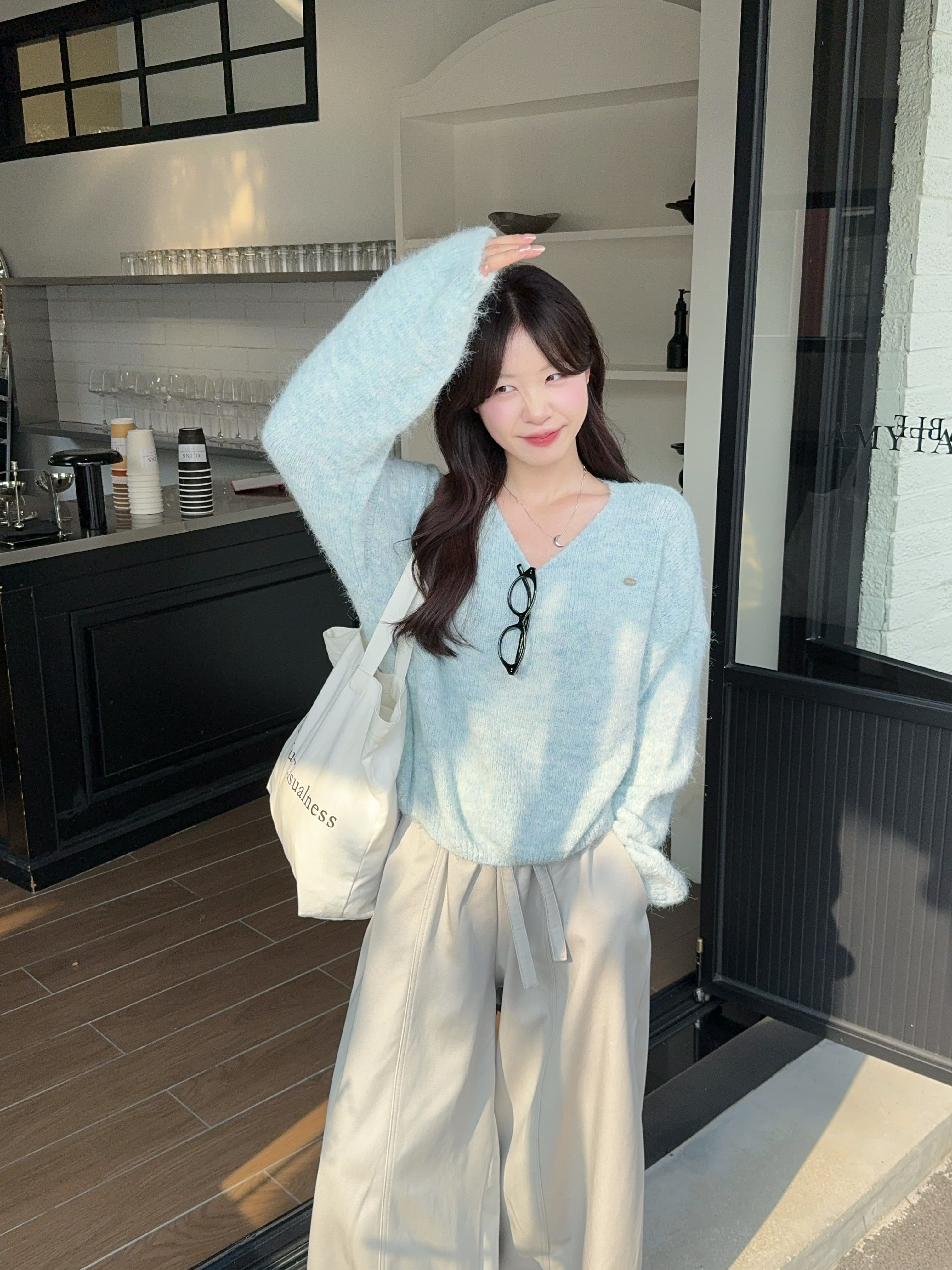实拍 慵懒风软糯休闲V领毛衣