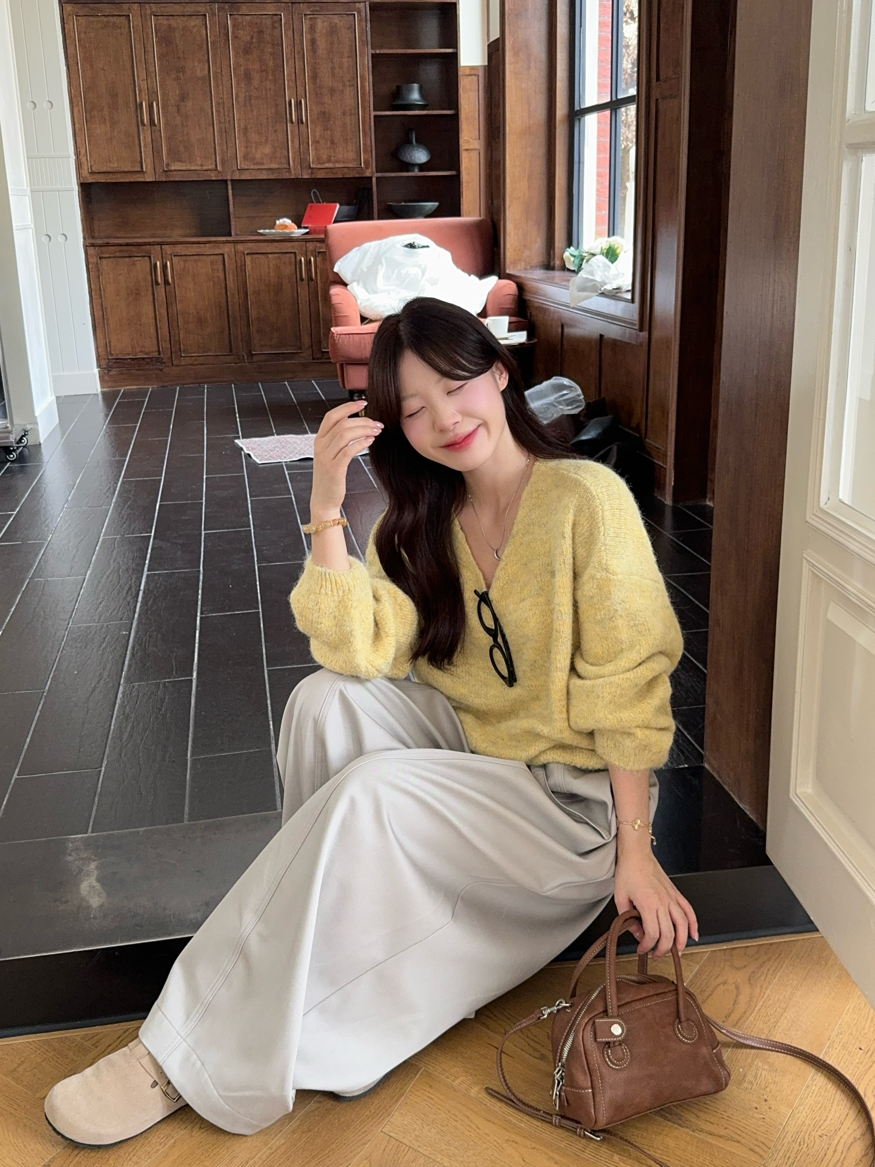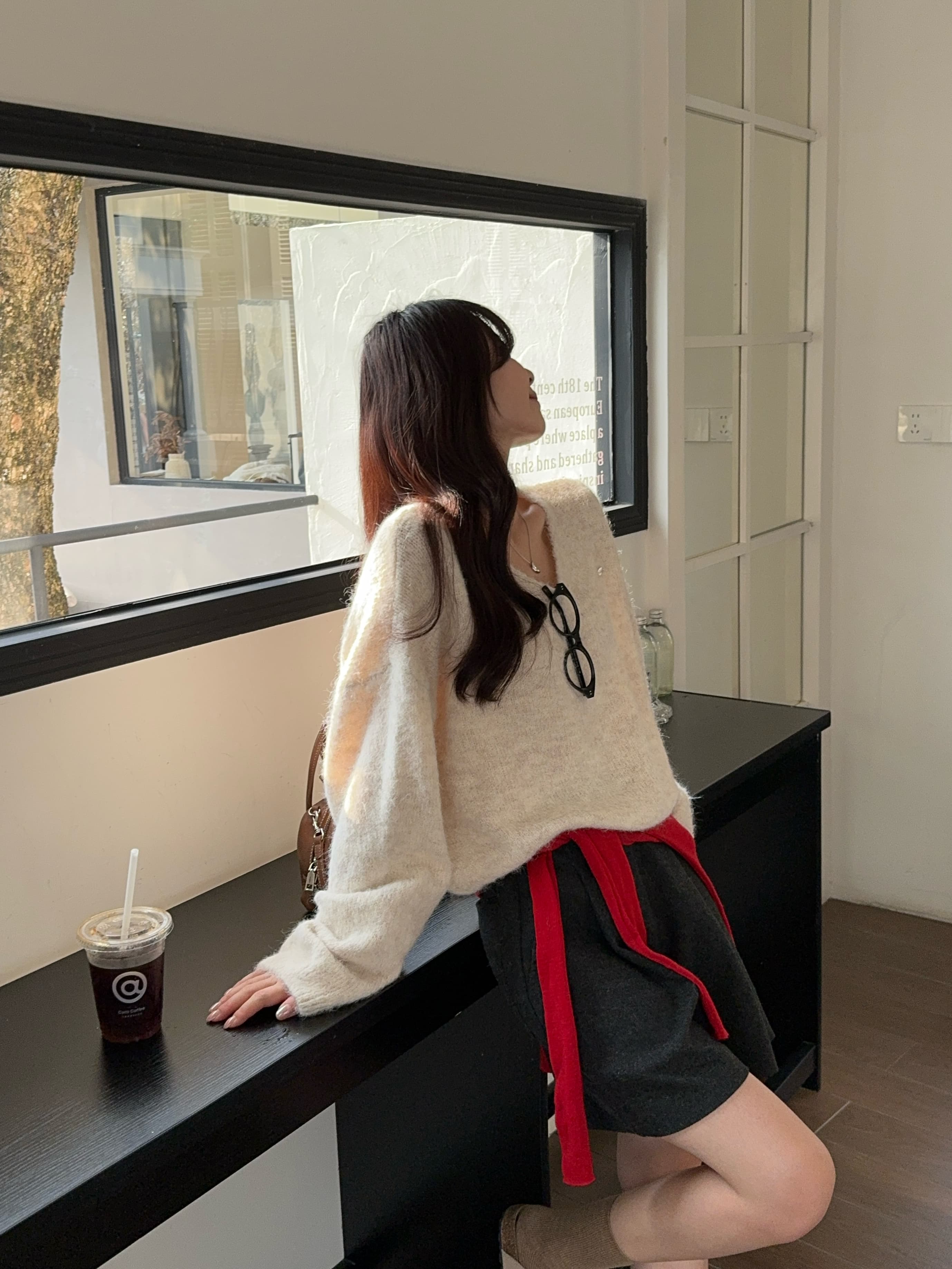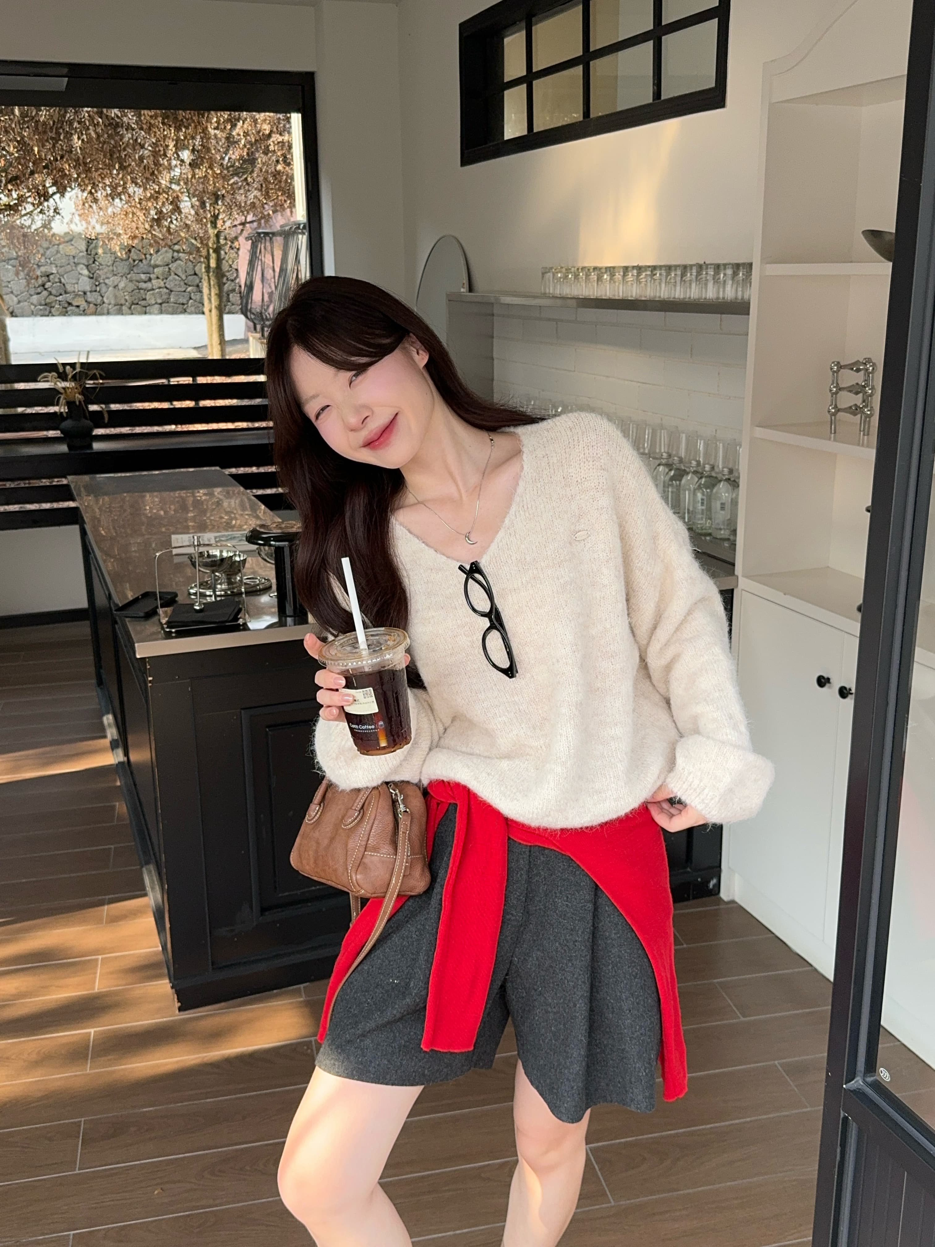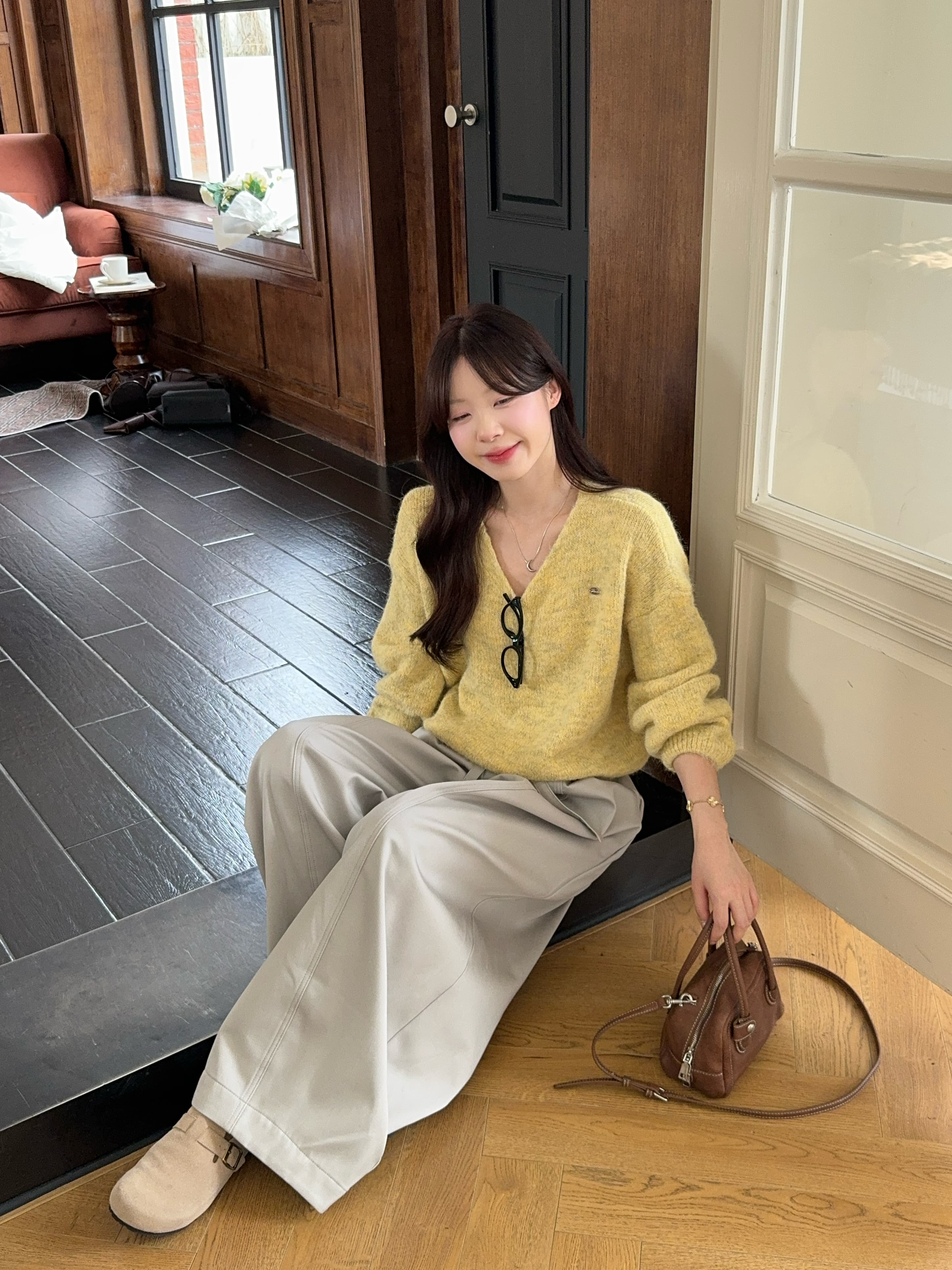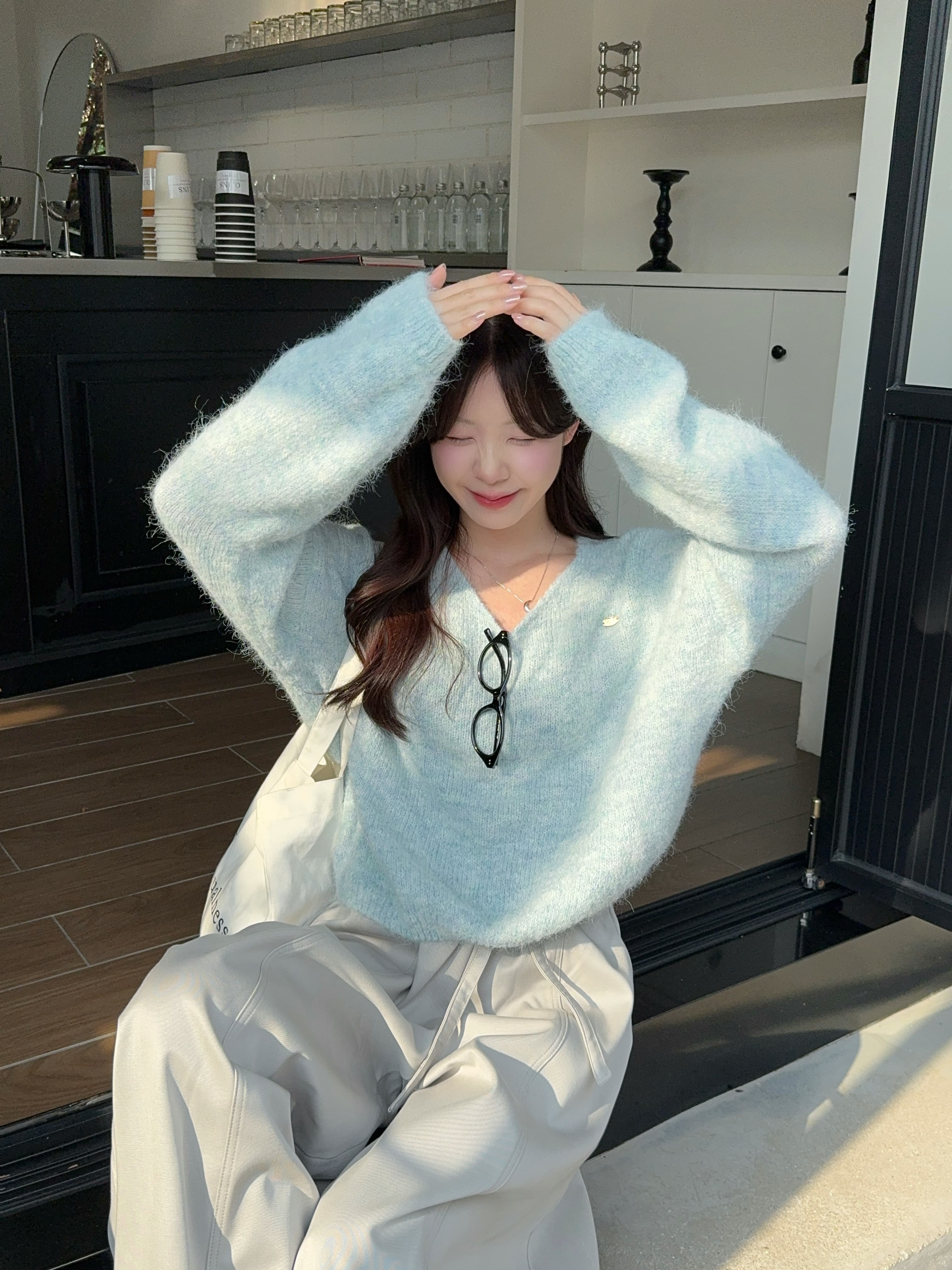 实拍 慵懒风软糯休闲V领毛衣