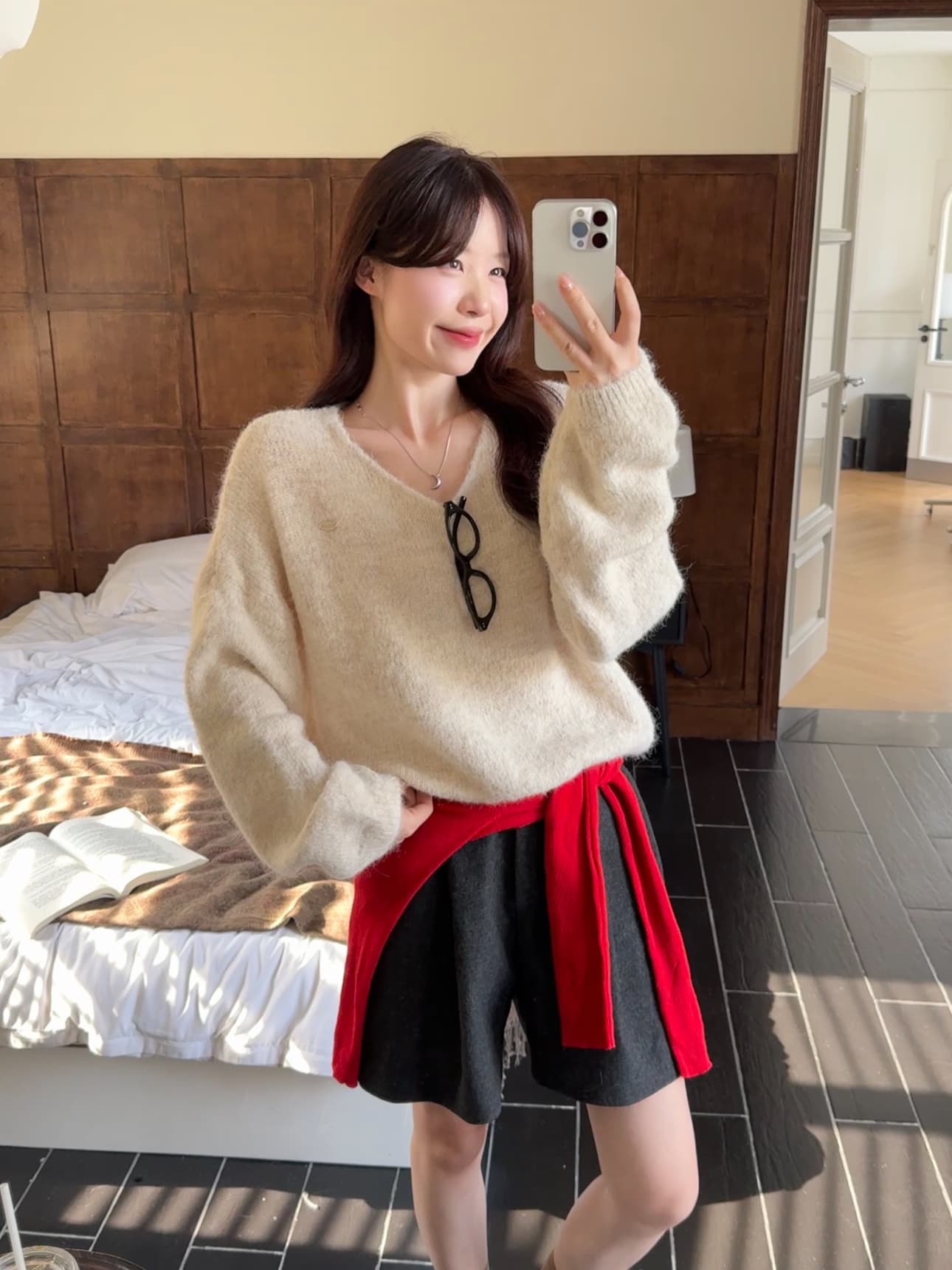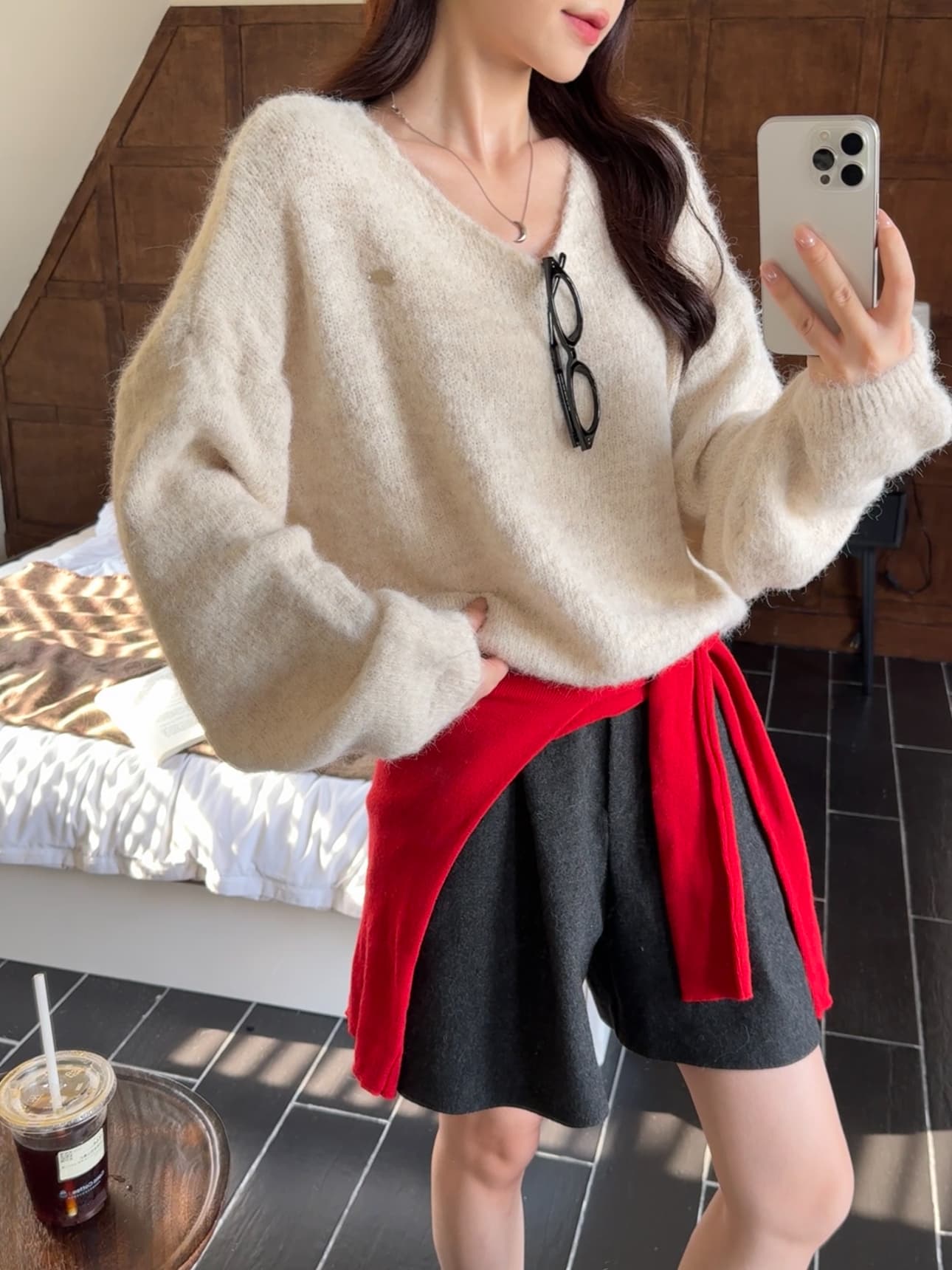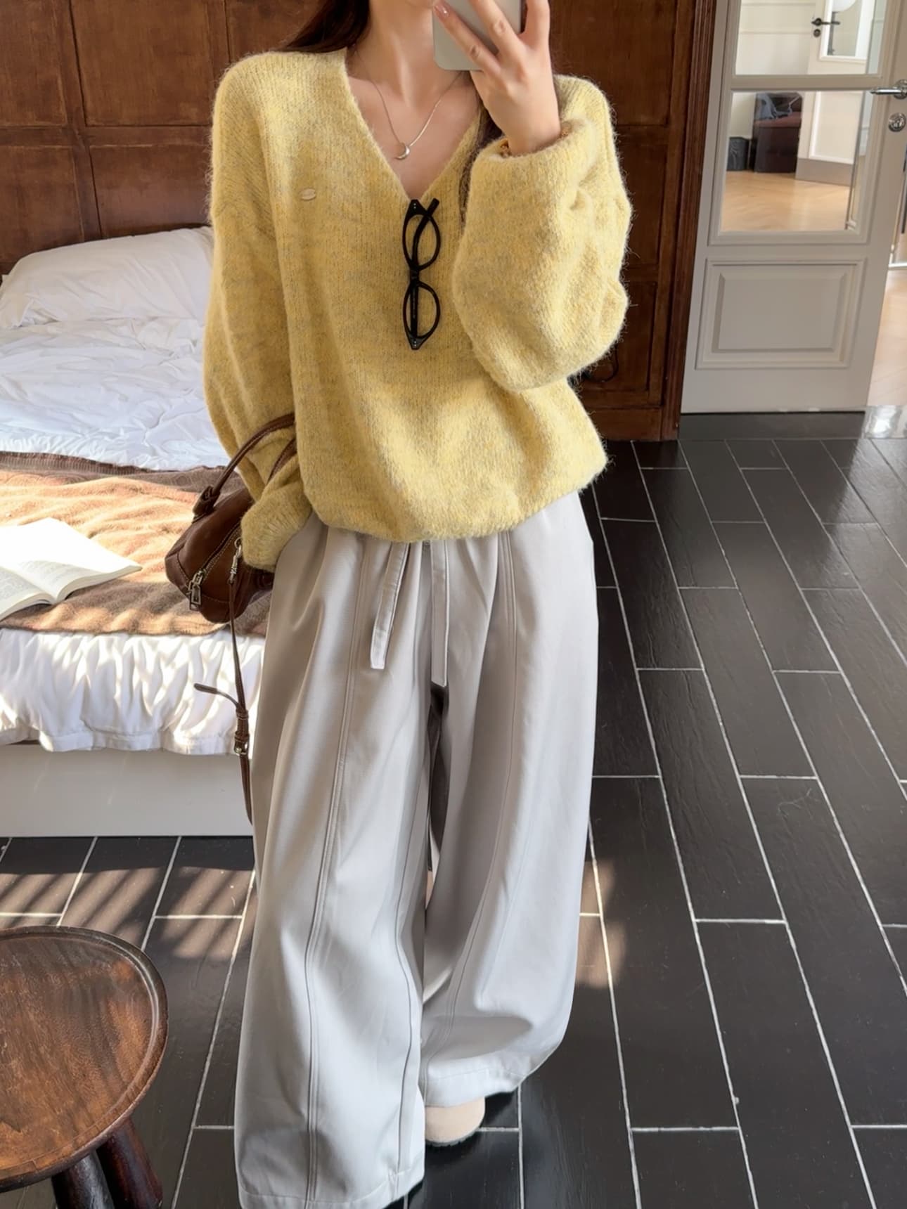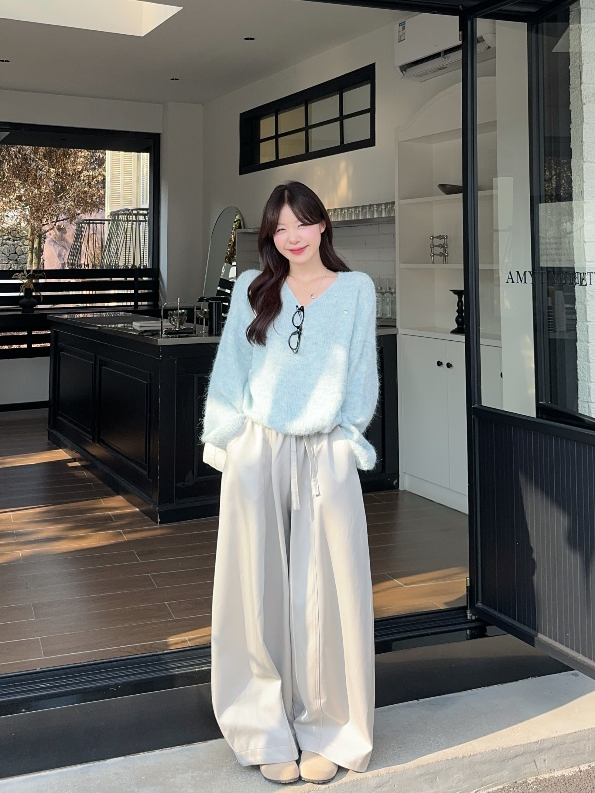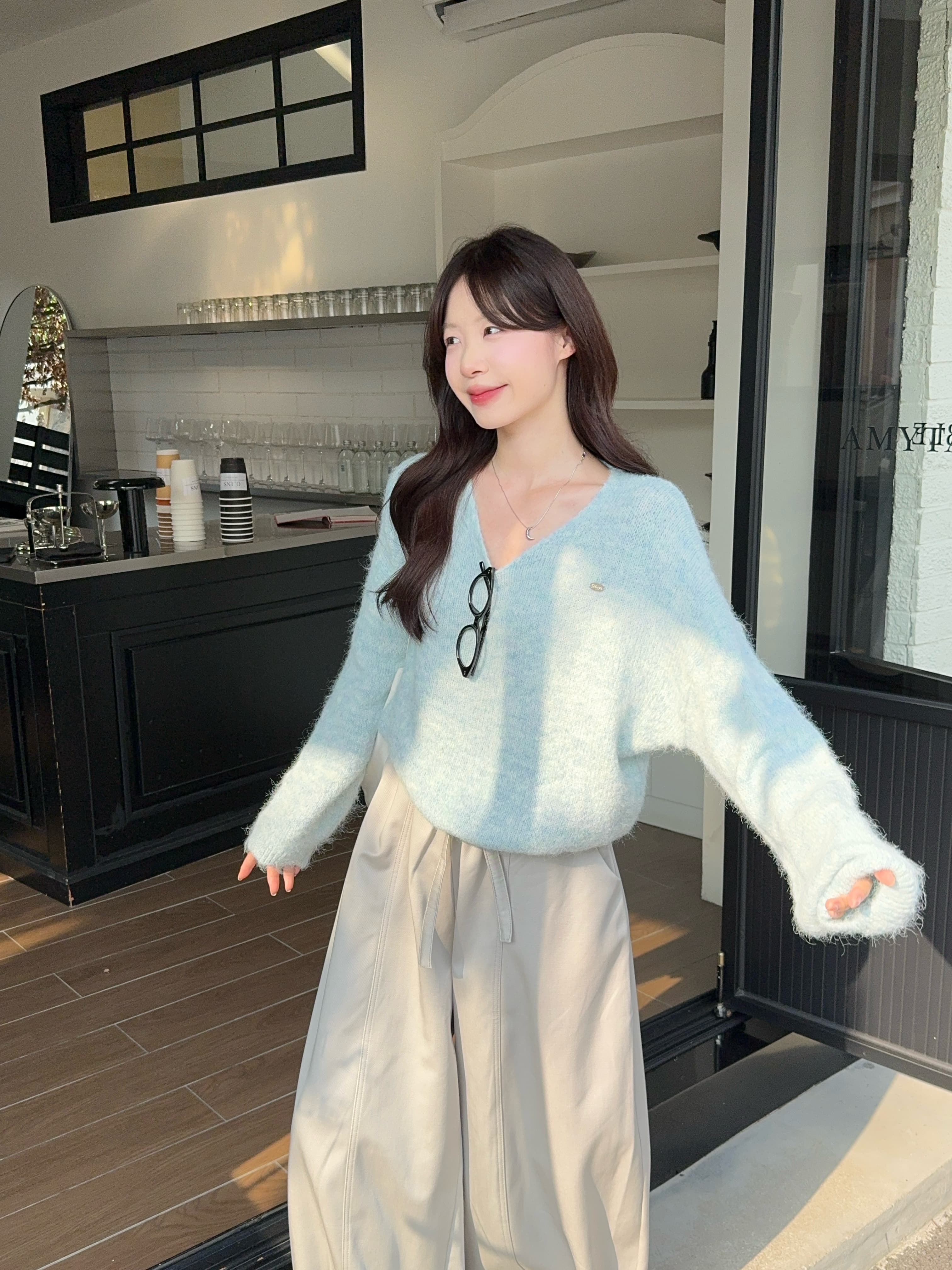 实拍 慵懒风软糯休闲V领毛衣