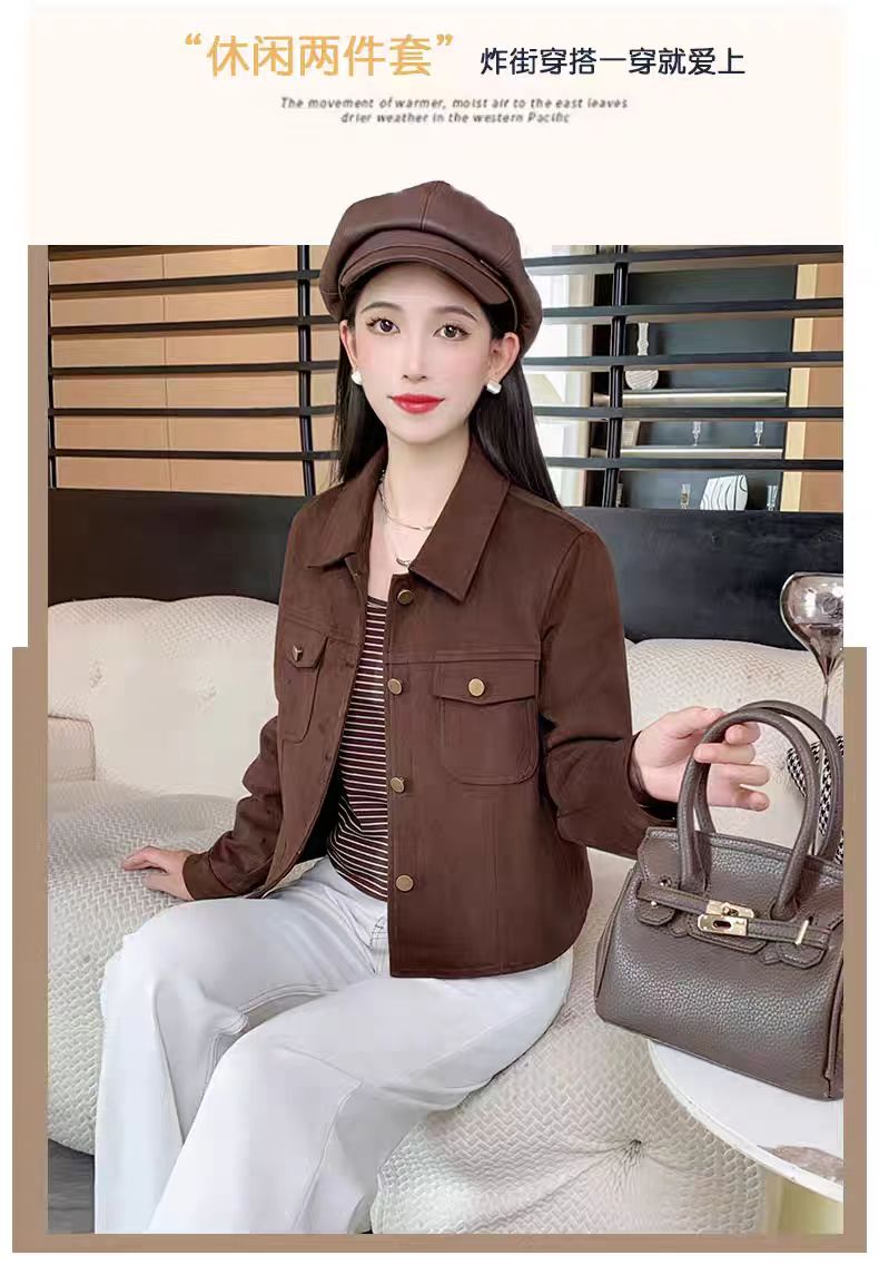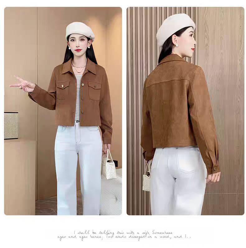 仿鹿皮绒外套女秋冬短款2025新款宽松休闲百搭小个子气质显瘦夹克