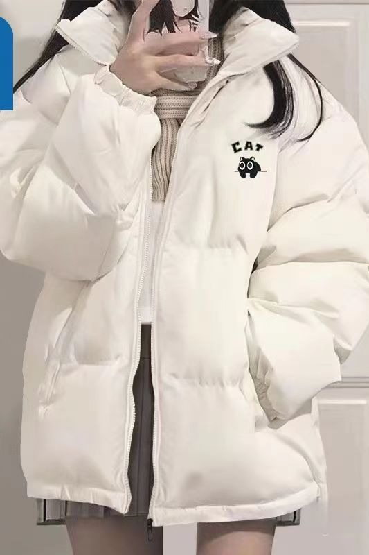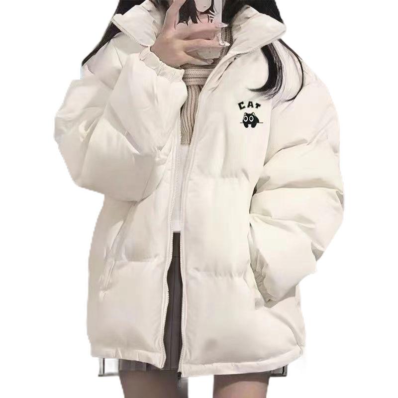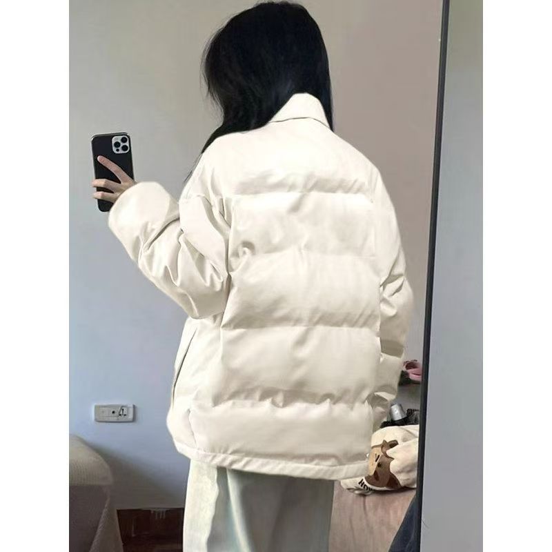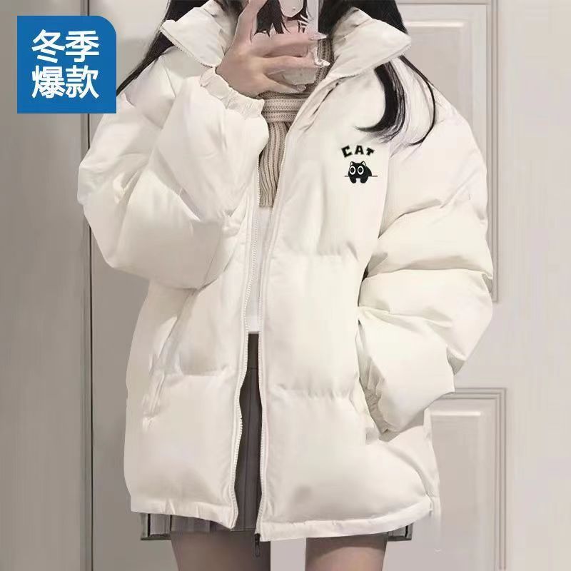 韩版ins纯色立领面包服女冬季新款宽松学生加厚保暖情侣棉衣外套