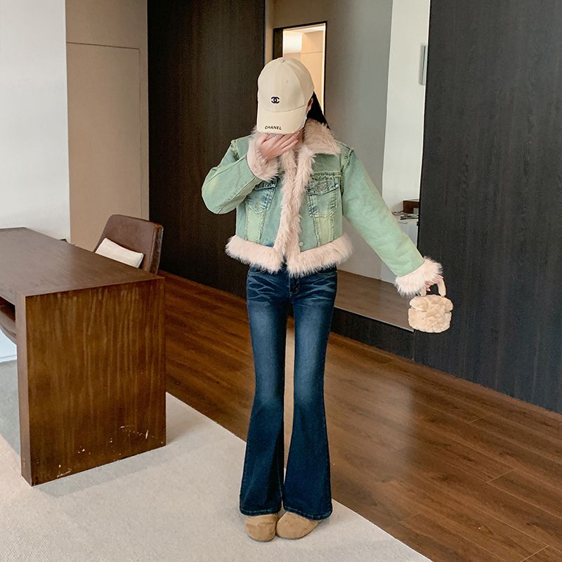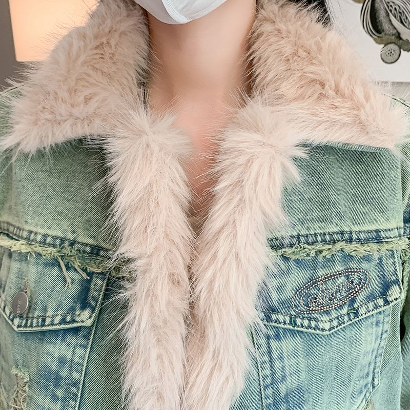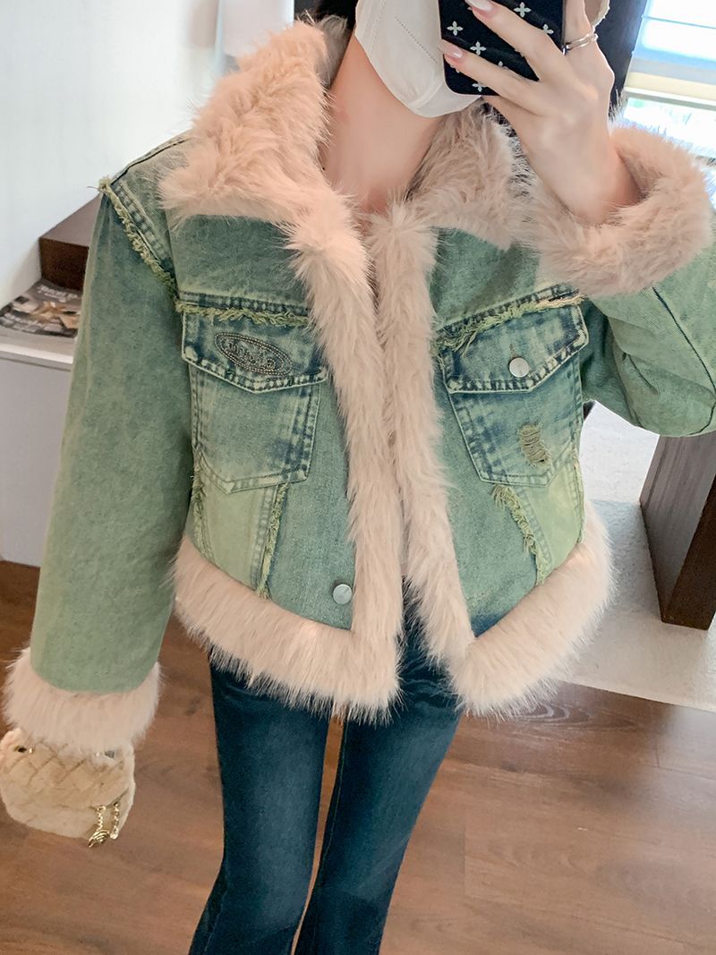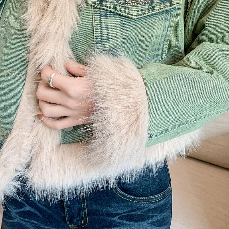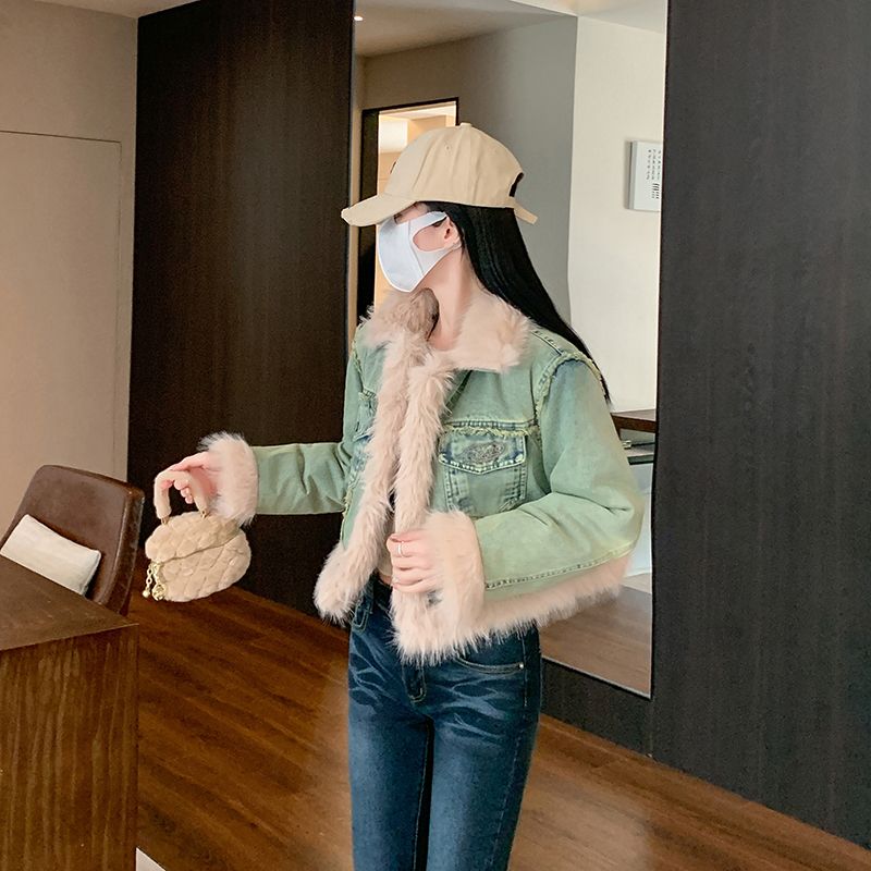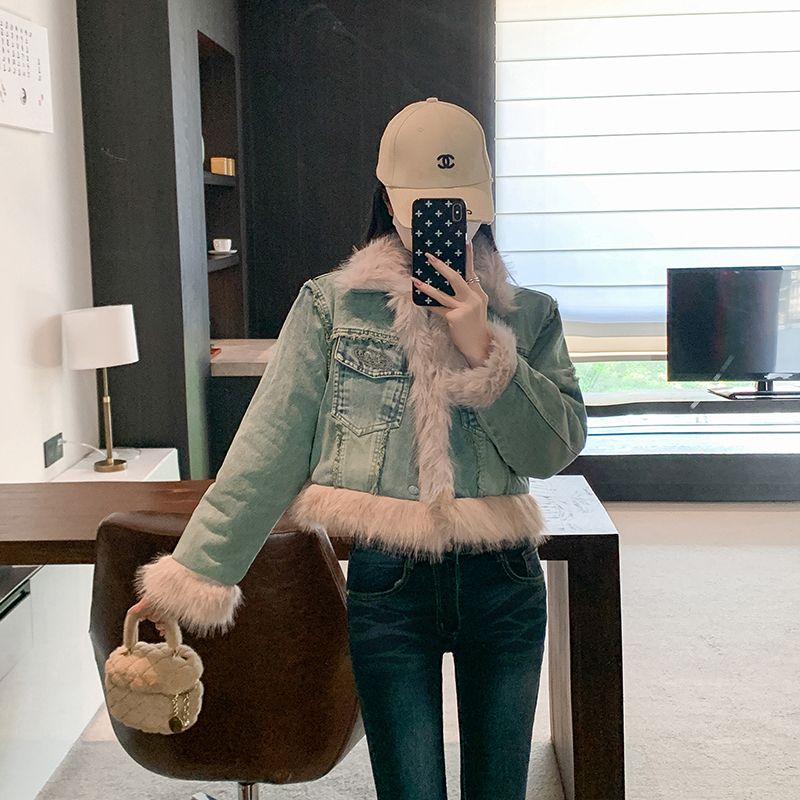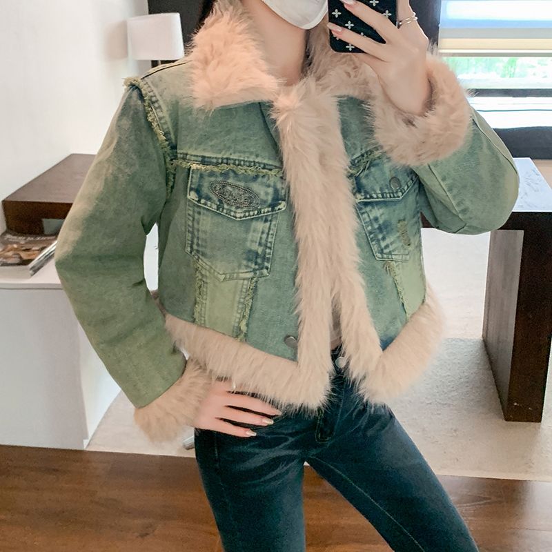 实拍实价~复古羊羔毛牛仔外套女冬季新款短款皮毛一体毛毛绒大衣
