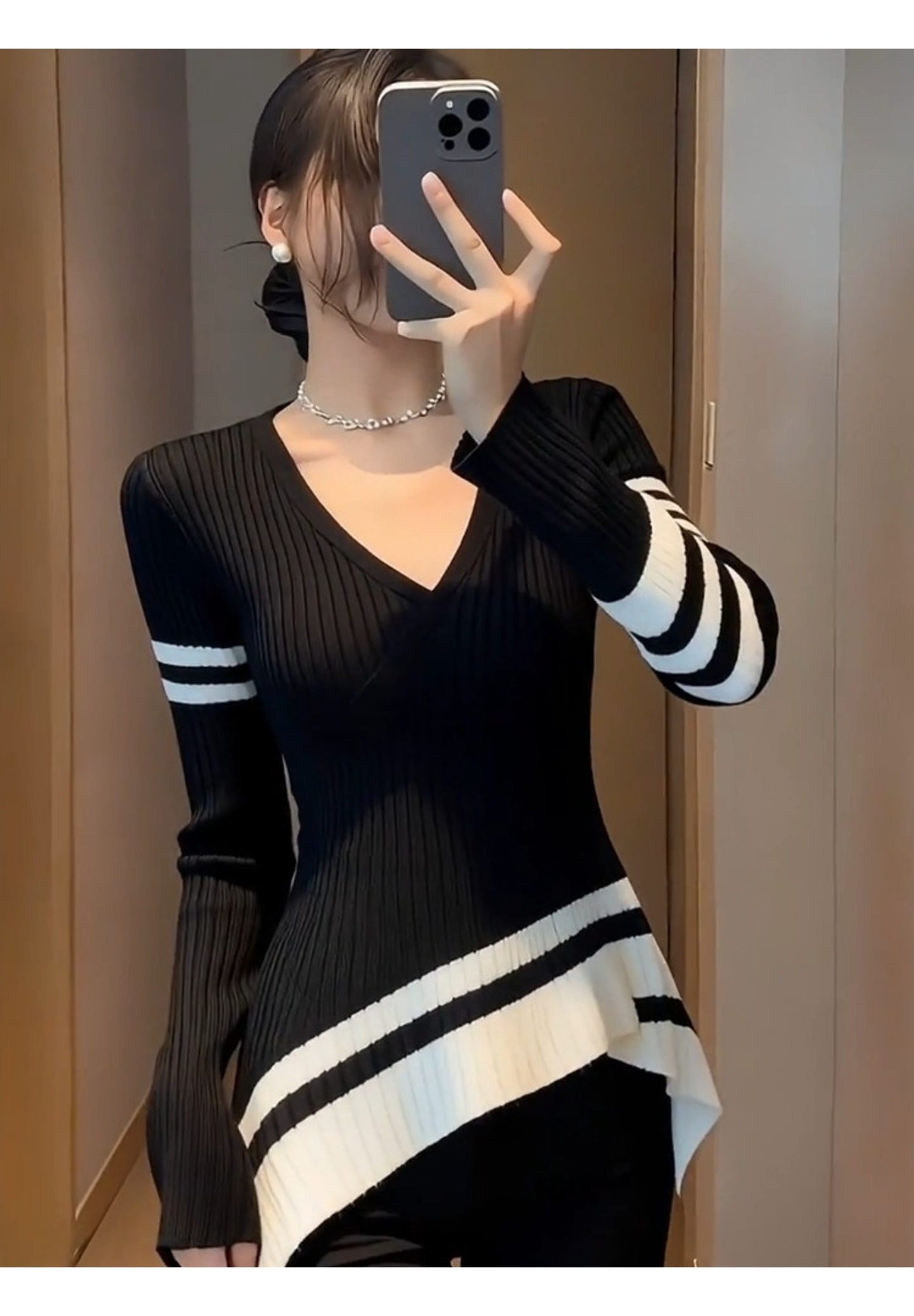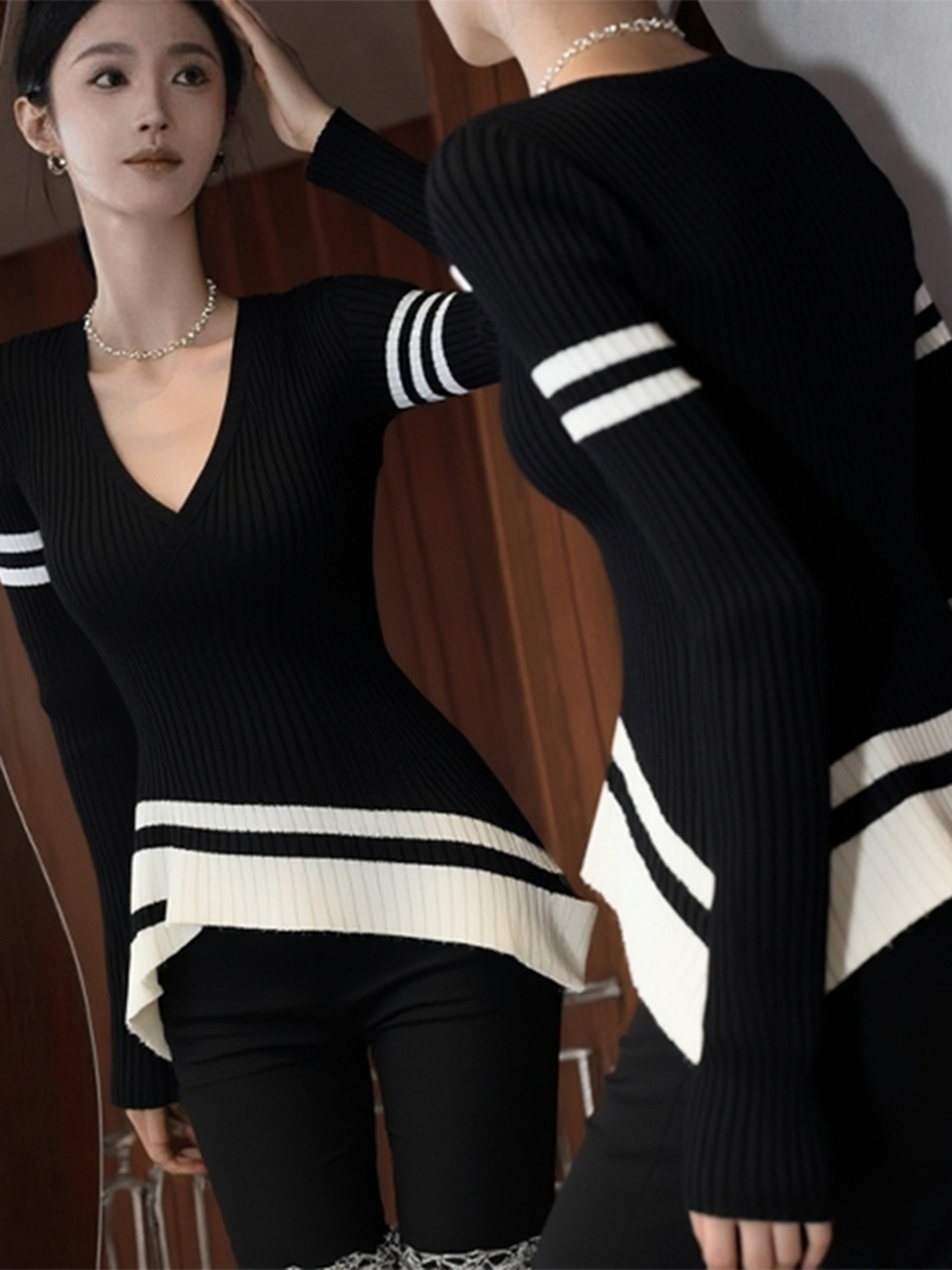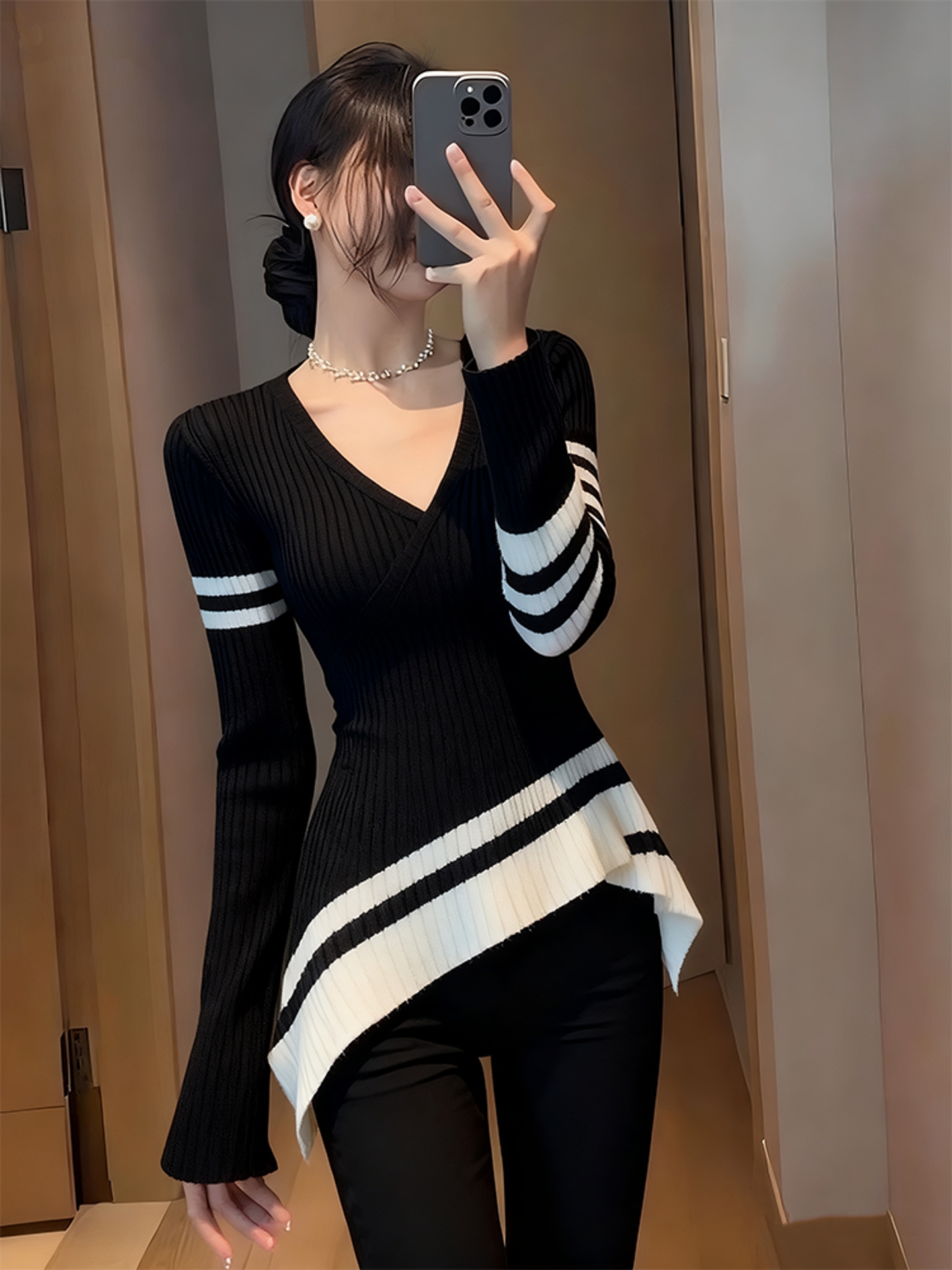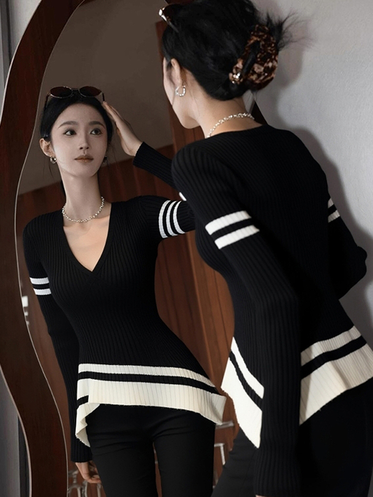 早秋巨好看轻熟上衣设计感小众独特漂亮气质高端不规则黑色针织衫