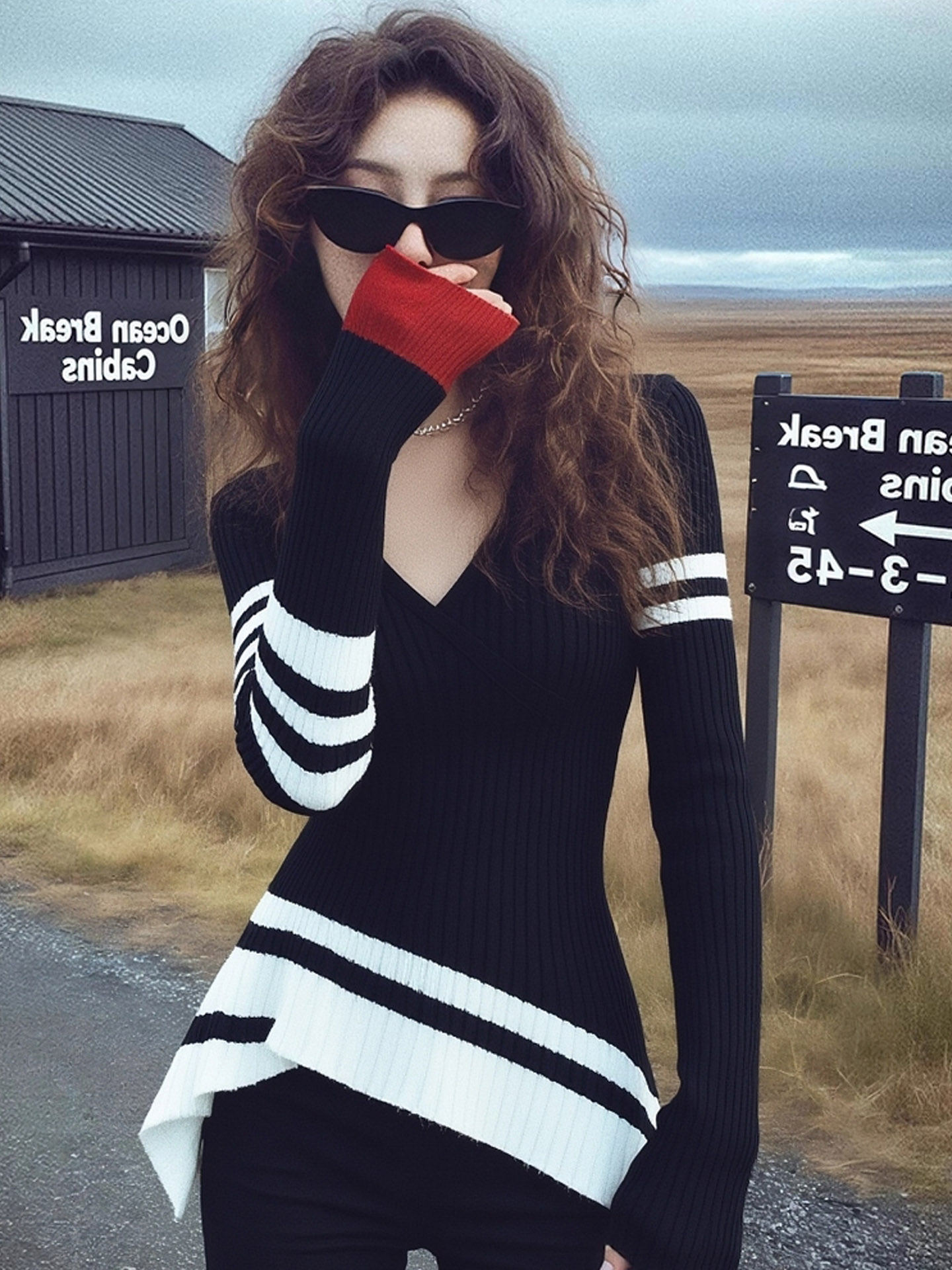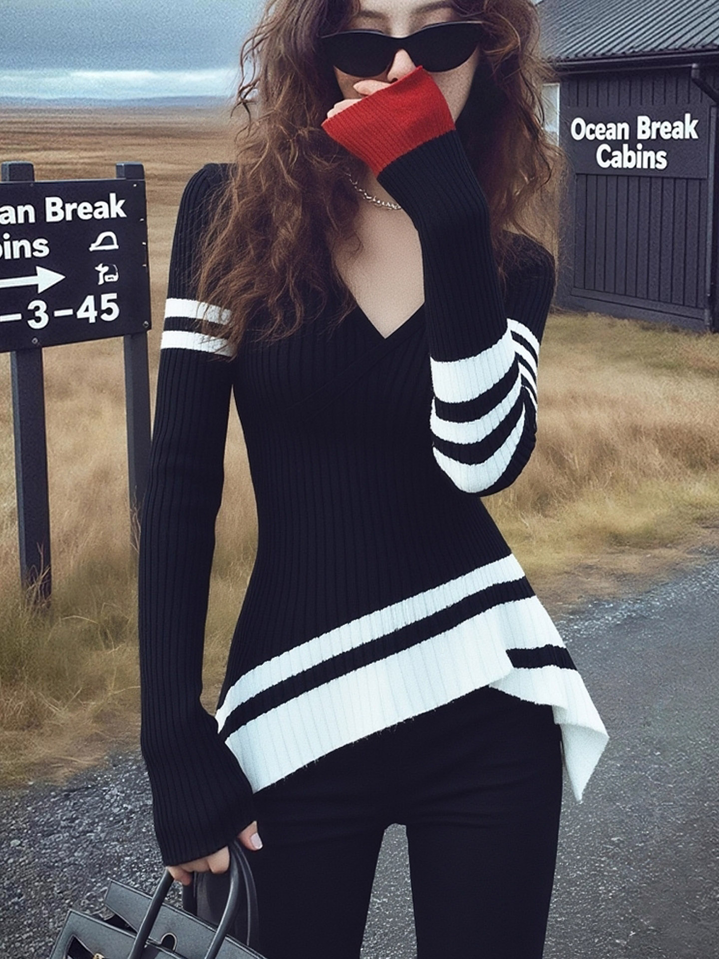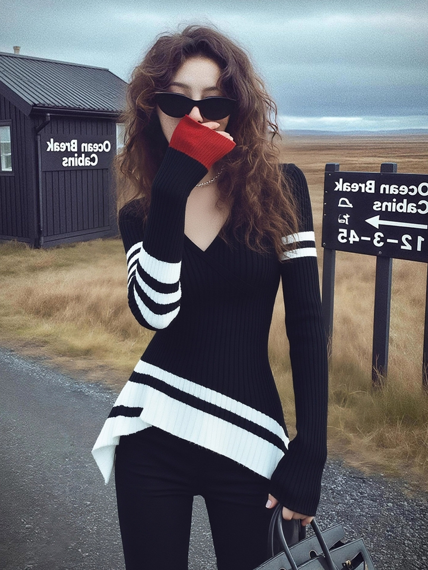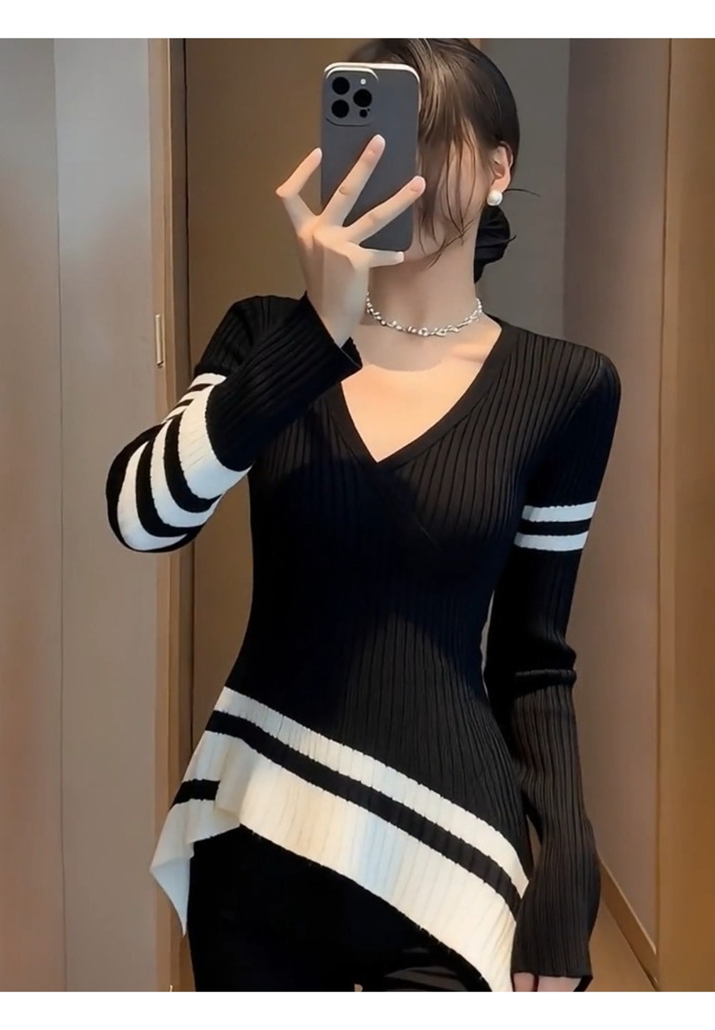 早秋巨好看轻熟上衣设计感小众独特漂亮气质高端不规则黑色针织衫