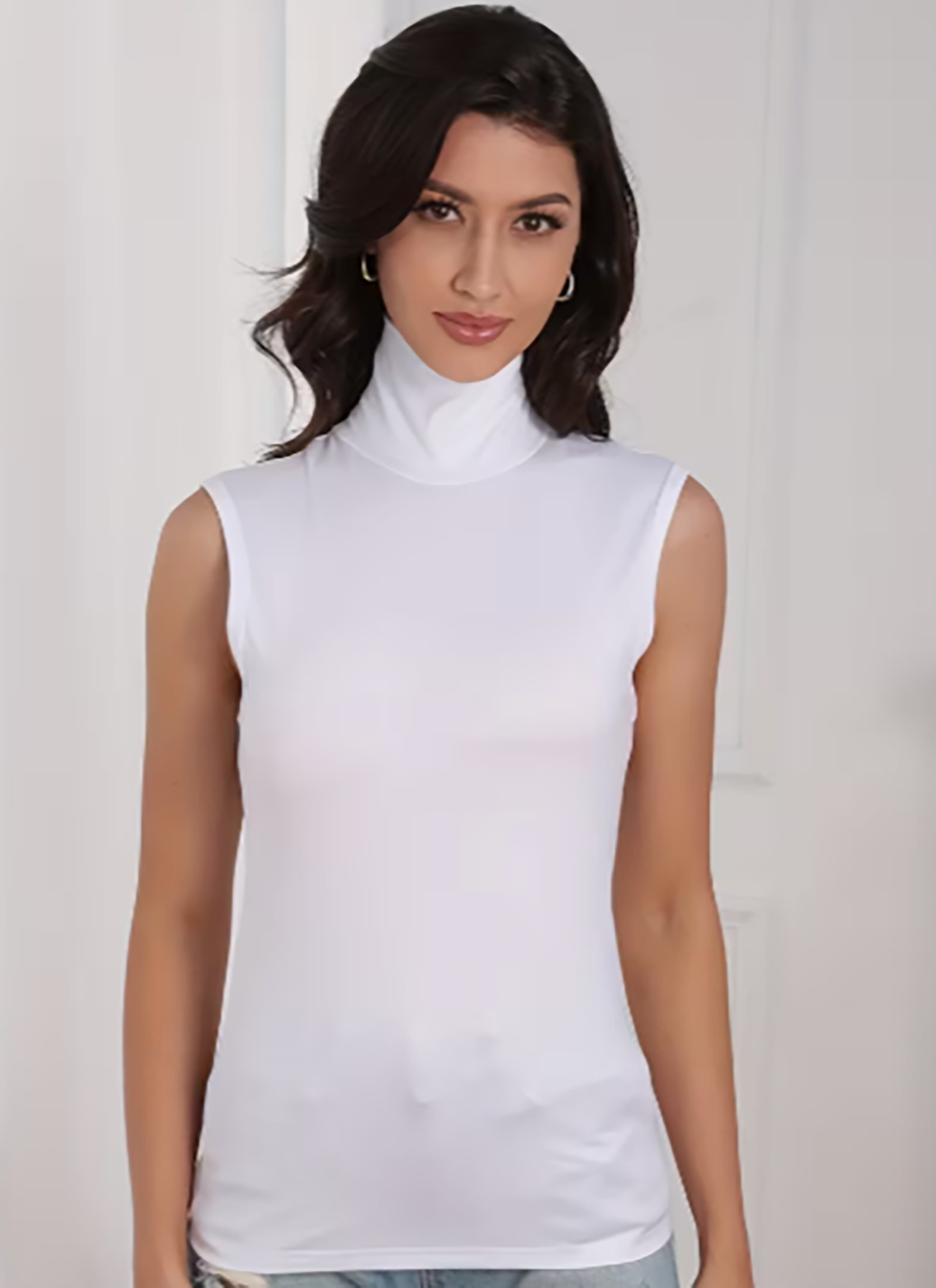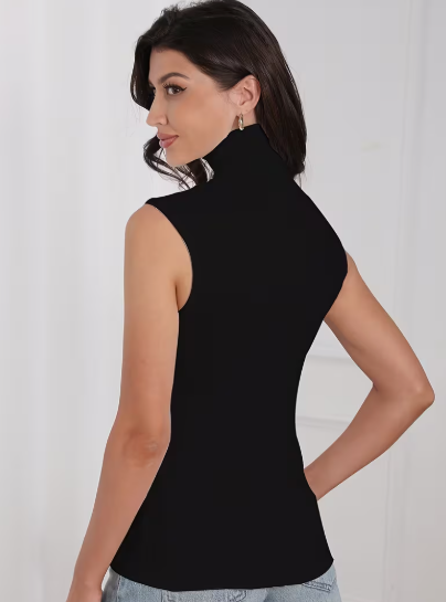 牛奶丝夏季休闲纯色无袖高领背心街头无袖设计一件代发联系店长