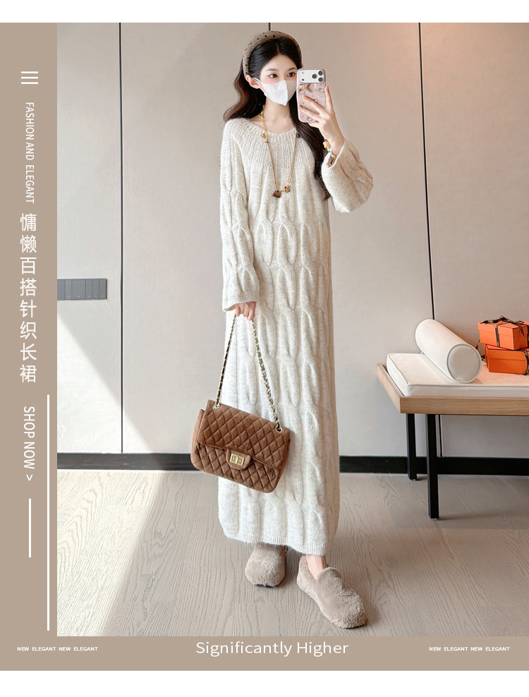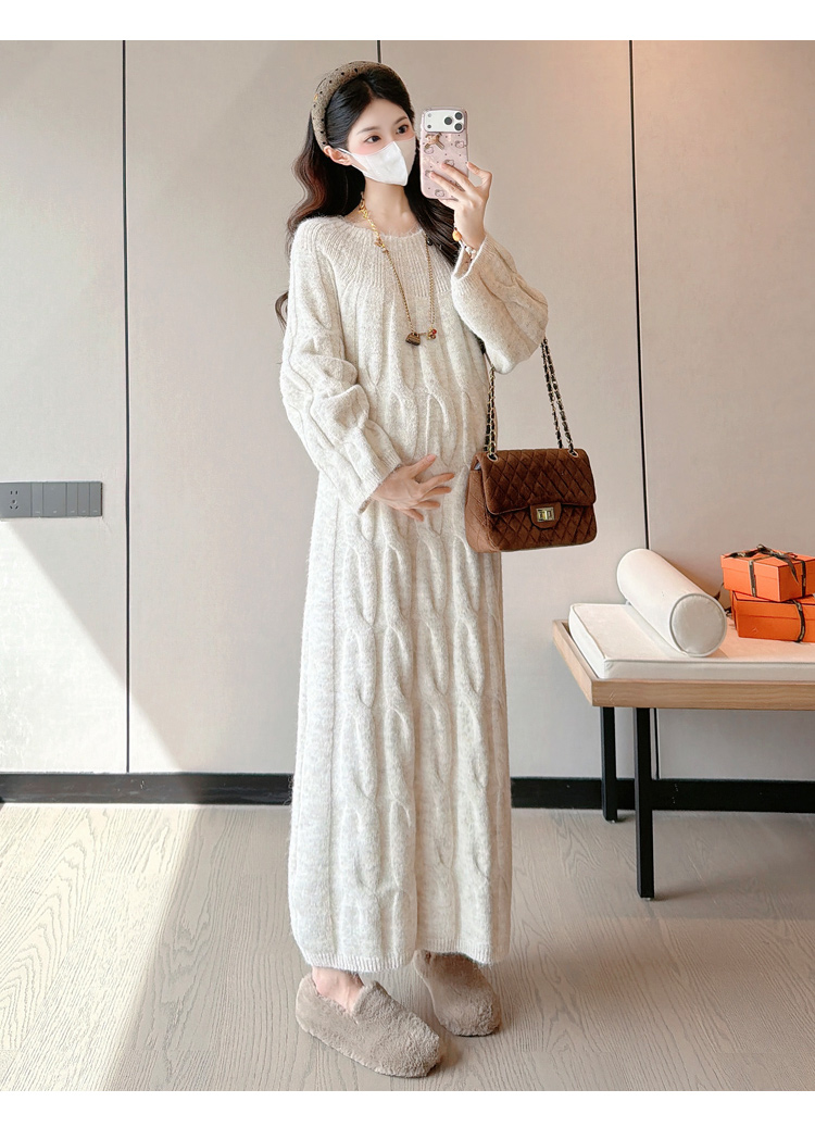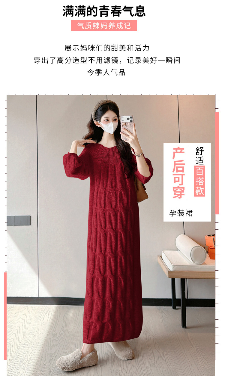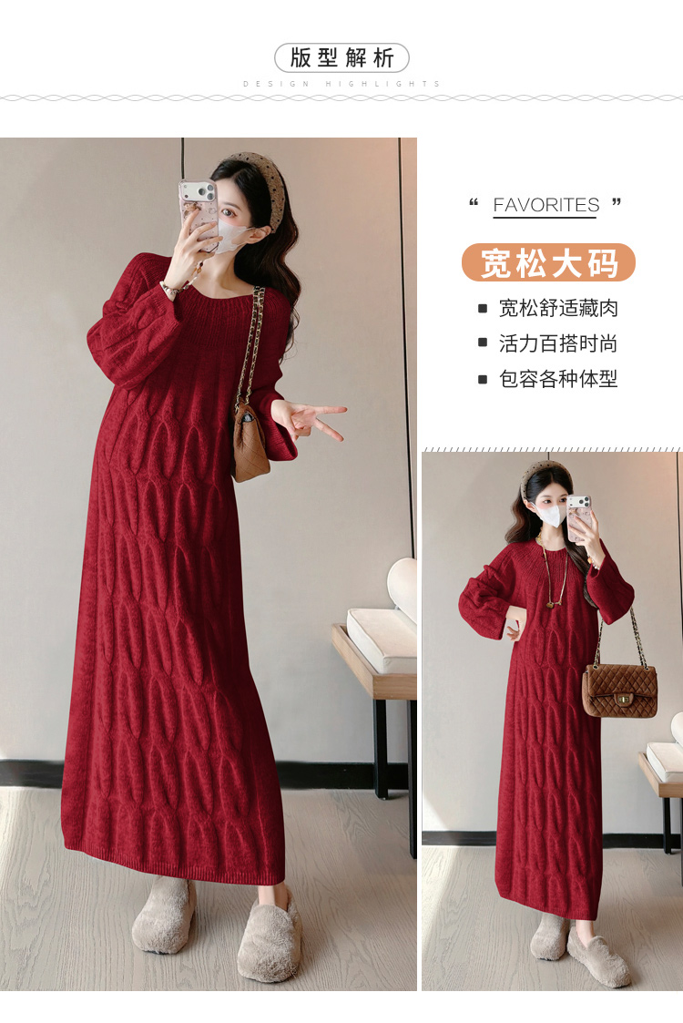 实拍孕妇冬装加厚毛衣连衣裙大码长裙2025新款套装孕妈高级感穿搭
