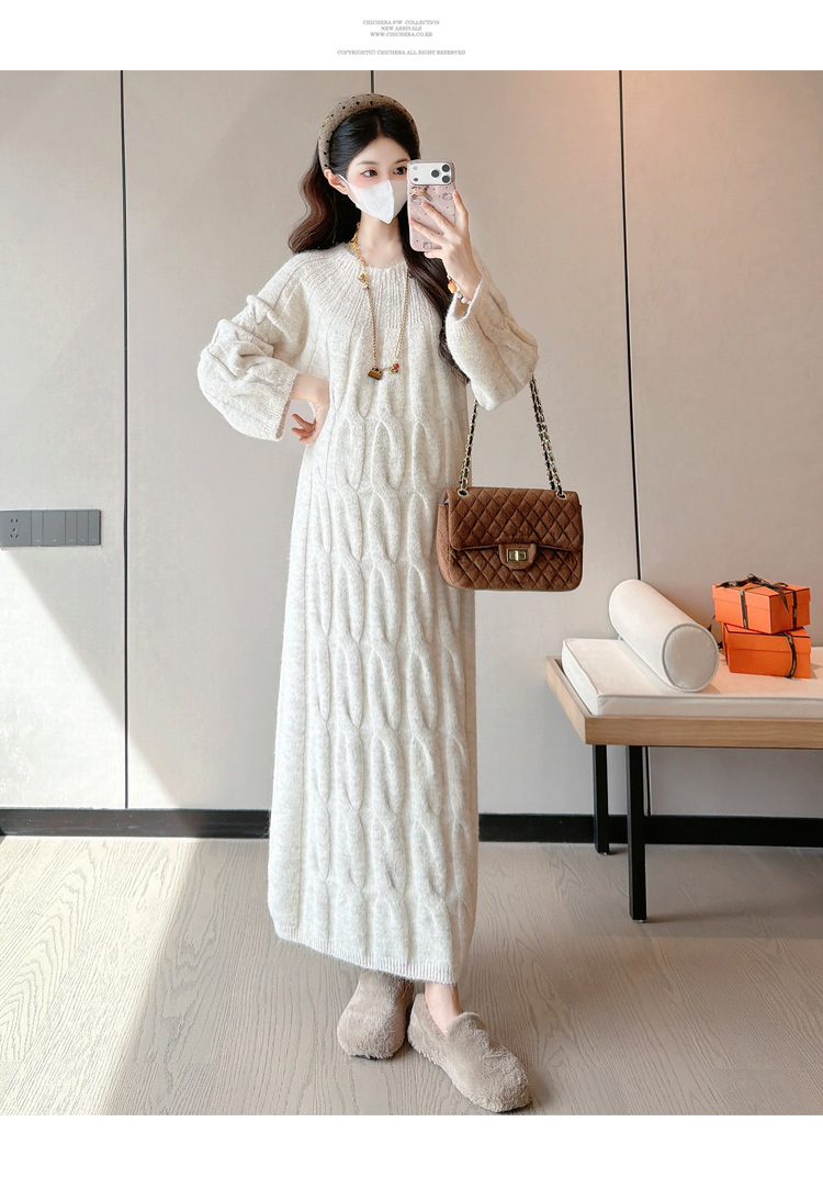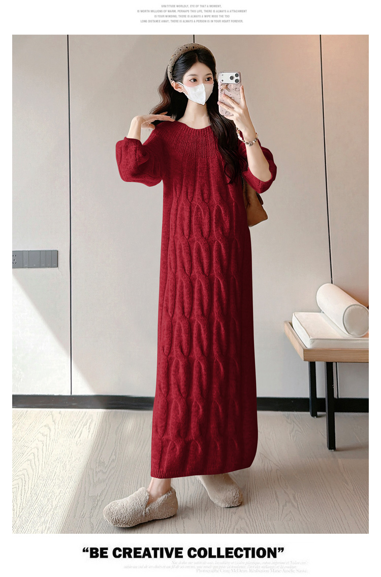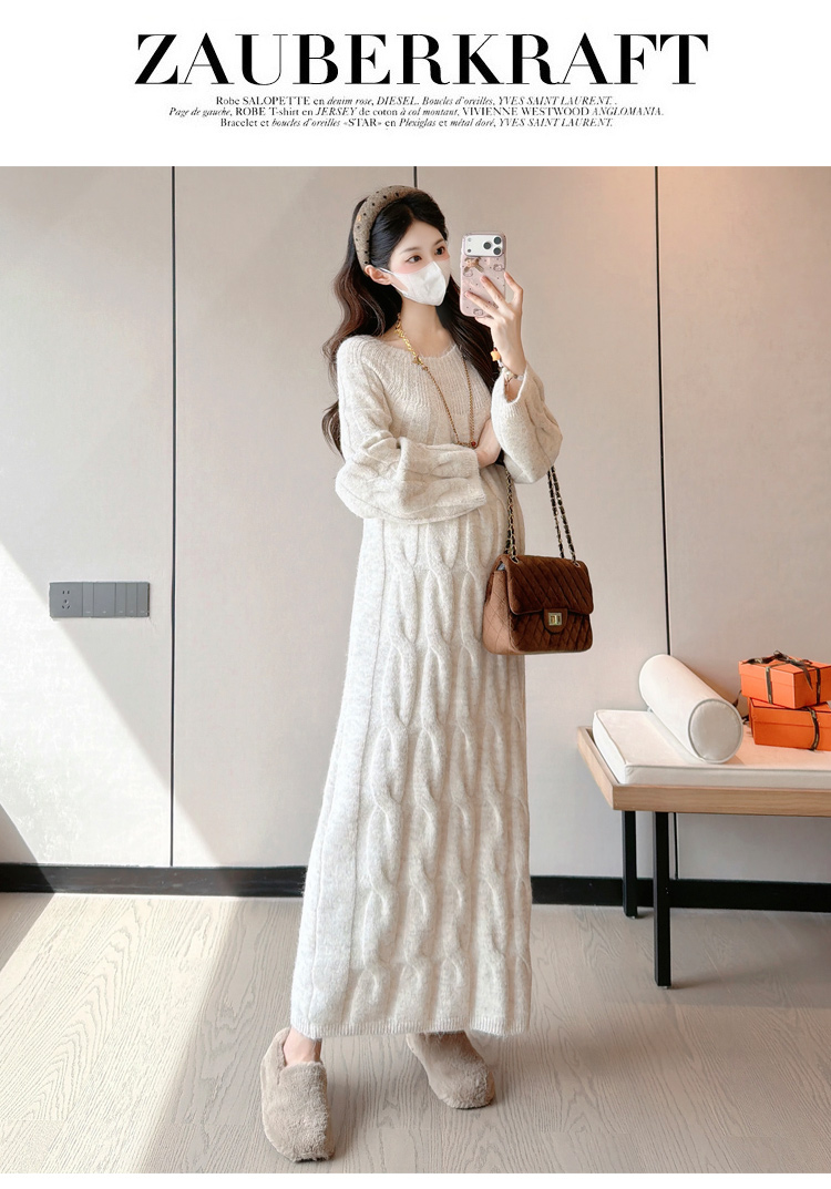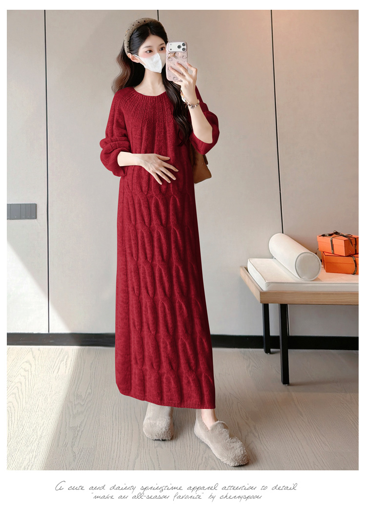 实拍孕妇冬装加厚毛衣连衣裙大码长裙2025新款套装孕妈高级感穿搭