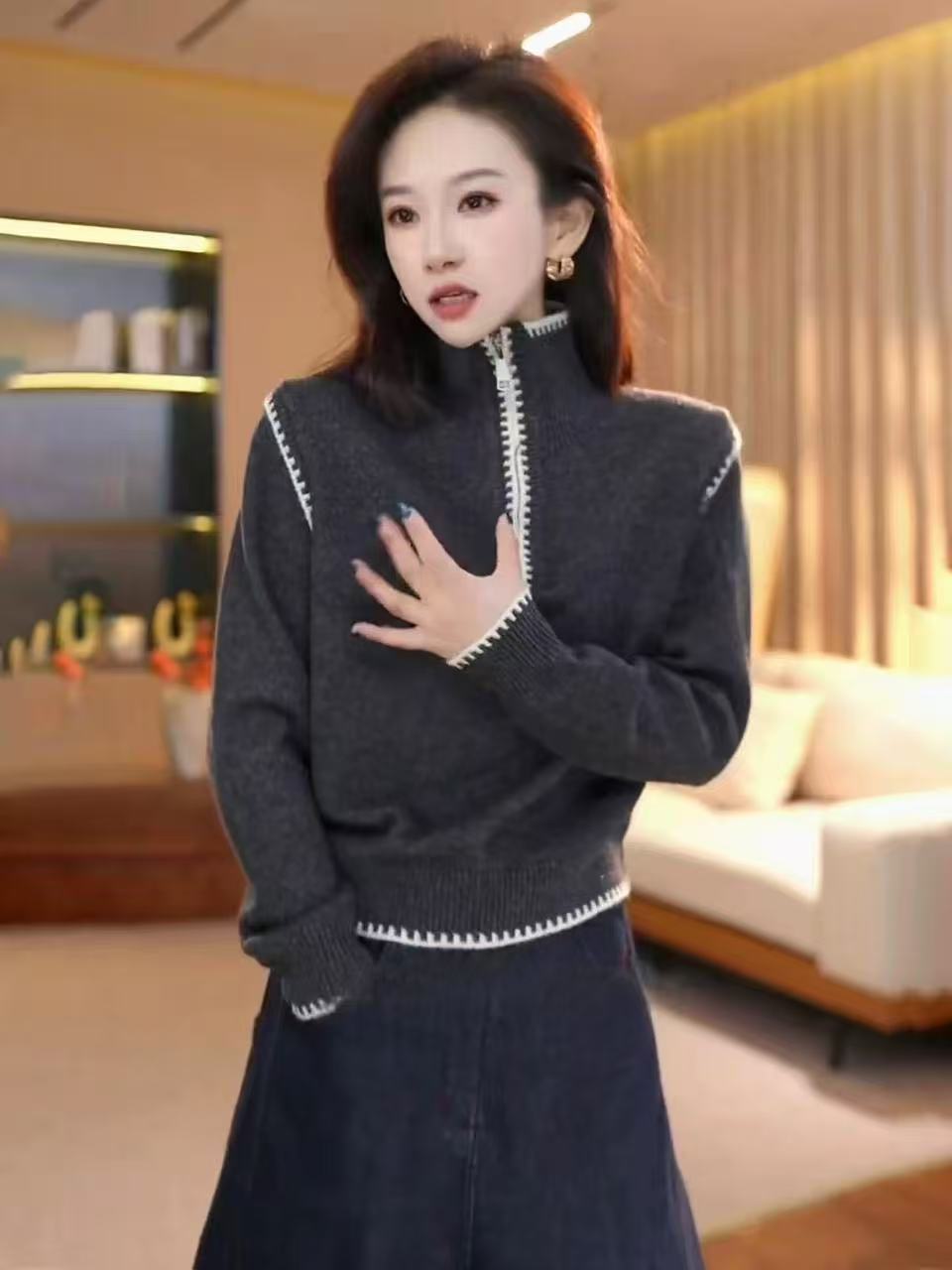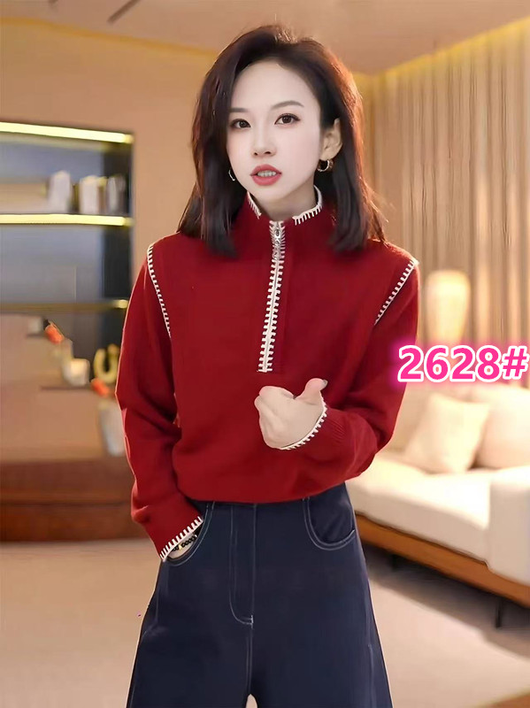 秋冬红色半拉链针织衫宽松慵懒显瘦圣诞红穿搭套头毛衣