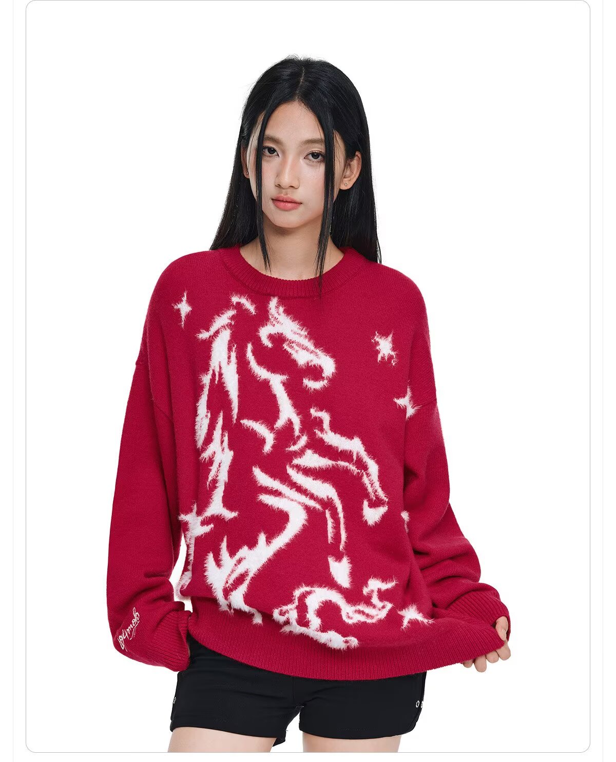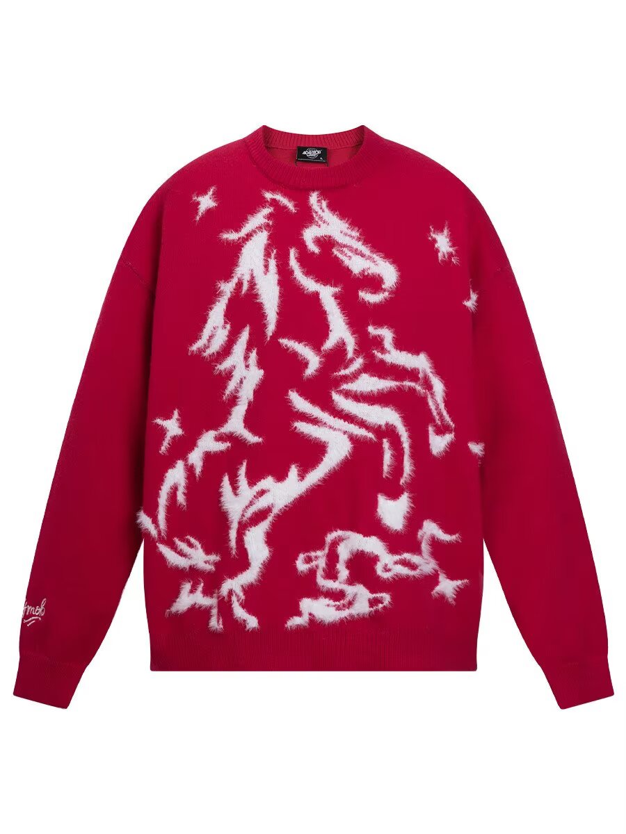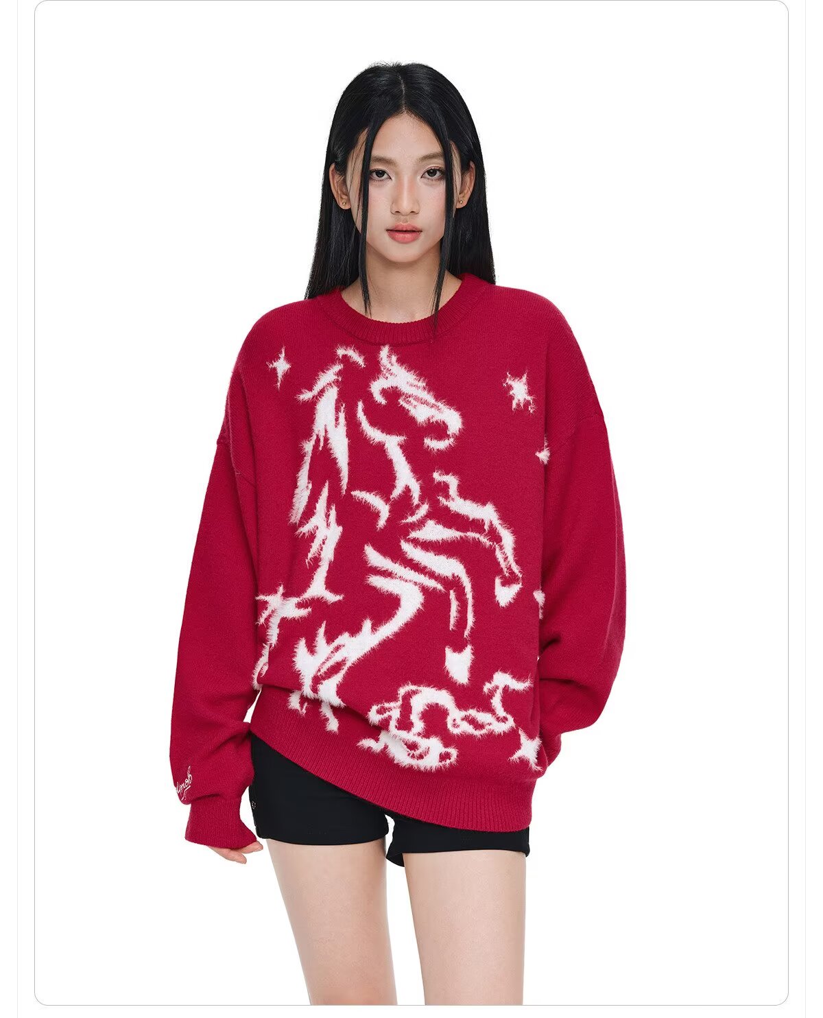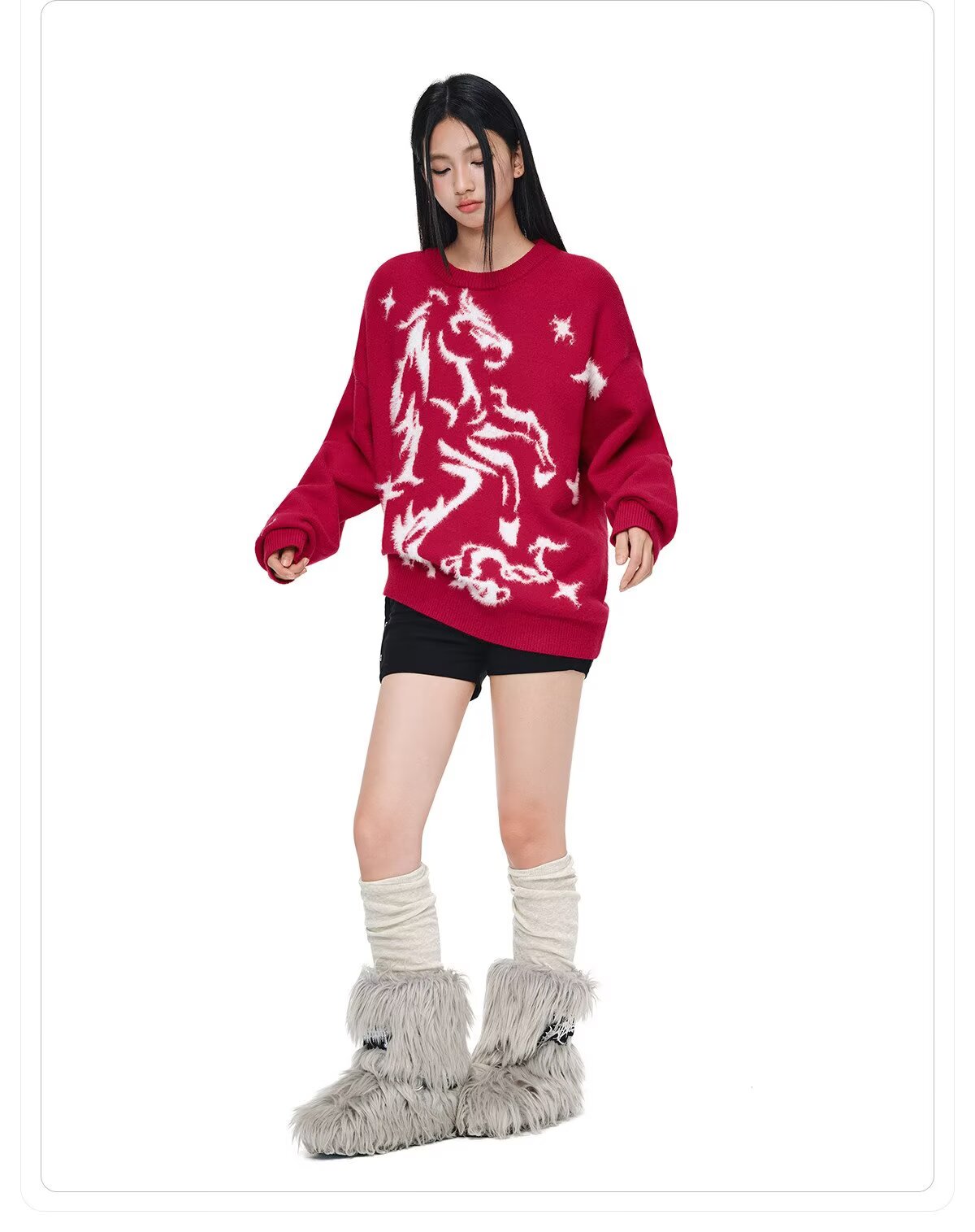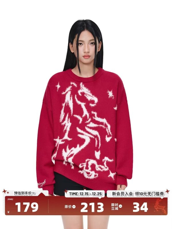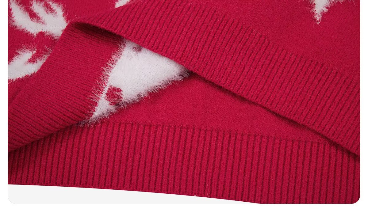 马年新年款仿貂毛毛衣魔方男女款冬季潮牌宽松慵懒风情侣针织衫